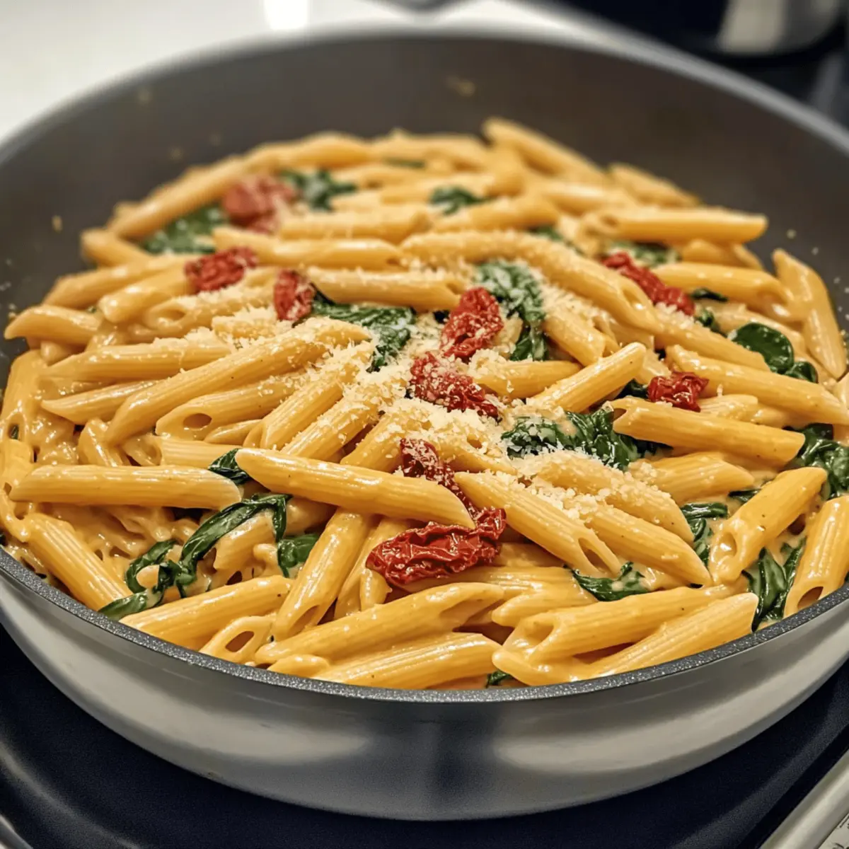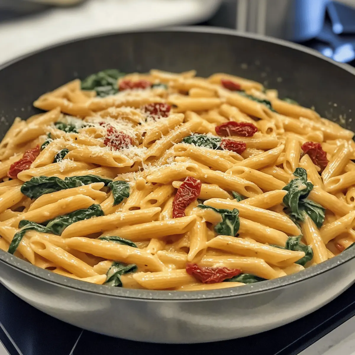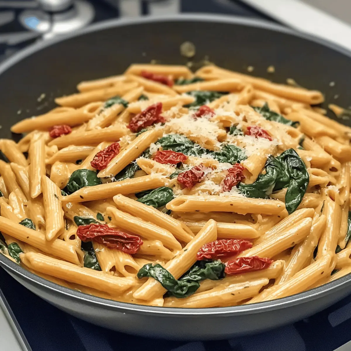 The aroma of garlic sizzling in olive oil wafted through my kitchen, reminding me of cherished family dinners filled with laughter and warmth. This One-Pot Spinach Tomato Pasta is my go-to solution for those hectic weeknights when time is tight but homemade comfort is a must. With its creamy garlic sauce enveloping al dente penne and vibrant greens, this vegetarian-friendly dish is not only quick to prepare but also an adaptable canvas for your favorite ingredients. Whether you’re trying to sneak in more veggies or simply craving a nourishing meal without the fuss of endless dishes, this recipe checks all the boxes. What would you toss into your pot for a personal twist on this delicious classic? Why is this recipe a weeknight favorite? Simplicity at Its Best: With just one pot and a few fresh ingredients, meal prep is a breeze, saving you from the hassle of multiple dishes. Creamy, Rich Flavor: The luxurious blend of garlic and cream creates a deliciously rich sauce that perfectly complements the fresh spinach and tomatoes. Versatile Options: Feel free to customize by adding seasonal vegetables or proteins like grilled chicken or shrimp for an extra heartiness. Perfect for Meal Prep: This dish stores beautifully in the fridge, getting even tastier over time, making it an ideal choice for meal prep or leftovers. Crowd-Pleaser: It’s a family-friendly meal that everyone will savor, perfect for gatherings or cozy nights in. Pair it with some garlic bread for an unforgettable dinner experience! One-Pot Spinach Tomato Pasta Ingredients For the Pasta • Penne Pasta – The heart of this dish, providing structure; feel free to swap with rigatoni or fusilli for a fun twist. For the Sauce • Olive Oil – Adds richness; any neutral oil can work if olive oil is not on hand. • Onion – Brings sweetness and depth; shallots make a milder alternative. • Garlic – This aromatic ingredient elevates flavors; always opt for fresh garlic for the best taste. • Sun-Dried Tomatoes (oil) – These deliver a punch of flavor; canned diced tomatoes can lighten the taste if desired. • Tomato Paste – Thickens and enhances the overall tomato flavor of the sauce. • Chicken Stock – Creates a savory base; swap with vegetable broth for a vegetarian-friendly option. • Heavy Whipping Cream – Adds creaminess; consider half-and-half or coconut cream for a lighter or dairy-free substitute. For the Veggies • Fresh Spinach – Nutritional powerhouse adding color; kale is a great substitute if you want something heartier. • Basil – Fresh is best for flavor enhancement; use dried basil cautiously if fresh isn’t available. Cheese & Seasoning • Parmesan Cheese – Key for finishing touches; nutritional yeast can be an excellent vegan alternative. • Black Pepper, Kosher Salt, Red Chili Flakes – Adjust these seasonings based on taste to personalize your One-Pot Spinach Tomato Pasta. This delightful dish is perfect for busy schedules, allowing you to enjoy homemade goodness without the fuss! Step‑by‑Step Instructions for One-Pot Spinach Tomato Pasta Step 1: Heat the Oil Begin by heating the sun-dried tomato oil in a large pot over medium-high heat. Allow it to warm for about 2 minutes until shimmering, then add in the chopped onion. Cook the onion for about 4-5 minutes, stirring often, until it turns slightly golden and fragrant, a lovely base for your One-Pot Spinach Tomato Pasta. Step 2: Sauté Aromatics Once your onions are just starting to brown, mix in minced garlic and chopped sun-dried tomatoes, cooking for another 2-3 minutes. Stir continually to make sure the garlic doesn’t burn, releasing its aromatic flavor into the air! You’ll know it’s ready when the garlic is fragrant and the tomatoes soften. Step 3: Add Tomato Paste Next, introduce the tomato paste into the pot, stirring well to combine it with the aromatic mixture. Let it cook down for an additional 2 minutes, allowing the paste to caramelize slightly. This step intensifies the flavor and creates a rich backdrop for your One-Pot Spinach Tomato Pasta. Step 4: Pour in Chicken Stock Gradually pour in the chicken stock while using a wooden spoon to deglaze the pot, scraping up any delicious bits stuck to the bottom. Bring the mixture to a gentle simmer for about 3-4 minutes. This will ensure that all the flavors meld beautifully together, creating a luscious base for your pasta. Step 5: Mix in Cream and Seasoning Reduce the heat to medium-low and stir in the heavy cream, along with black pepper, kosher salt, and red chili flakes to taste. Allow it to simmer for another 2-3 minutes, until everything is well combined. The sauce will start to thicken slightly, enveloping the One-Pot Spinach Tomato Pasta with a creamy touch. Step 6: Add the Pasta Add the penne pasta into the pot, making sure it’s well coated with the creamy sauce. Stir to combine, then reduce the heat to low-medium and cook uncovered for about 10 minutes. This allows the pasta to absorb all the flavors while becoming al dente; keep an eye on it to avoid overcooking. Step 7: Incorporate Spinach and Basil When the pasta is about 75% cooked, fold in the fresh spinach and basil. Cook for an additional 2-3 minutes until the spinach prominently wilts down into the pot. If the sauce is too thick for your liking, feel free to add a splash more chicken stock to reach your desired consistency. Step 8: Stir in Parmesan Cheese Finally, add in the grated parmesan cheese, mixing well until it melts and enhances the creamy texture of the dish. Allow it to cook for another minute, melting into the One-Pot Spinach Tomato Pasta. You’ll know it’s ready when everything is creamy and harmoniously combined. Step 9: Serve It Up Spoon the finished One-Pot Spinach Tomato Pasta into bowls and serve immediately. Optionally, top with extra parmesan and fresh basil for a delightful finishing touch. This meal is perfect for family gatherings or those cozy weeknights when comfort food