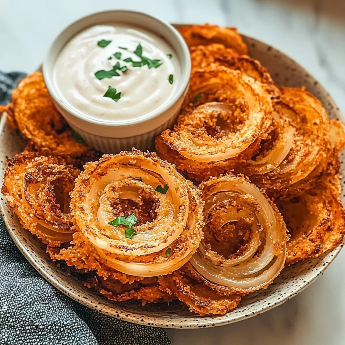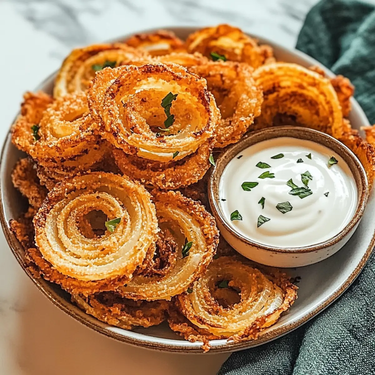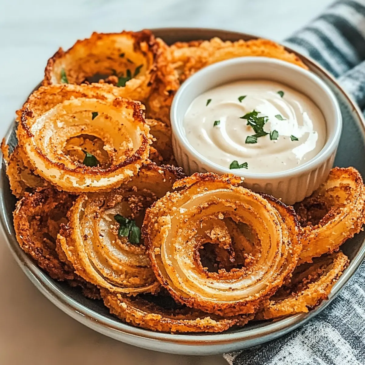 Facebook Twitter Pinterest LinkedInAs I was sifting through memories of summer cookouts and late-night snack escapades, it hit me—nothing stirs nostalgia quite like crispy, homemade Onion Ring Chips. These delightful bites are perfect for sharing or indulging solo, and they deliver a satisfying crunch that turns any mundane evening into a savory delight. What’s even better? This recipe is not only quick to whip up in just 25 minutes, but it’s versatile enough to transform into a healthier baked version if you’re aiming for a lighter treat. Whether you’re dipping them into your favorite sauce or enjoying them plain, these onion ring chips are bound to become a regular in your snack rotation. Curious about how to make your kitchen smell irresistible while serving up this crispy goodness? Let’s dive in! Why You’ll Love These Onion Ring Chips Crispy Texture: These chips deliver an unbeatable crunch with every bite, satisfying your snack cravings. Quick Preparation: Ready in just 25 minutes, they’re the perfect option for spontaneous gatherings or late-night munchies. Versatile Options: Fry for traditional crispiness or bake for a healthier alternative without sacrificing flavor. Crowd-Pleaser: Whether it’s game day or a movie night, they will steal the spotlight and have everyone reaching for more. Consider serving them alongside delicious dips for an elevated snack experience, much like the Pepper Steak Onion. Customizable Flavor: Spice them up with cayenne or switch up your onions for different sweetness levels—endless variations await! Onion Ring Chips Ingredients For the Chips • Onions – Sweet varieties like Vidalia work best for a milder flavor. • All-Purpose Flour – Provides structure; opt for gluten-free flour for a gluten-free version. • Garlic Powder – Adds a savory depth that enhances overall flavor. • Paprika – Brings a subtle smokiness to your onion ring chips. • Salt – Essential for flavor; adjust according to your taste. • Black Pepper – A hint of heat to balance the flavors. • Buttermilk – Tenderizes and ensures the coating sticks well; substitute with milk + vinegar or yogurt if needed. • Panko Breadcrumbs – Creates an irresistible crunchy texture; can be swapped with crushed cornflakes for a different crunch. • Vegetable Oil – The key to achieving that crispy finish when frying; can also use canola or peanut oil. For Baking Variation • Olive Oil Spray – Instead of frying, spray lightly on the coated onion rings for a crispy baked alternative. Feel the joy of creating these Onion Ring Chips that are sure to become the hit snack of your household! Step‑by‑Step Instructions for Onion Ring Chips Step 1: Heat the Oil Begin by heating vegetable oil in a deep fryer or a large pot over medium heat until it reaches 350°F (175°C). Use a thermometer to ensure the oil is hot enough for frying, which is crucial for achieving that perfect crispy texture in your Onion Ring Chips. Ensure you have enough oil to fully submerge the onion rings while frying. Step 2: Prepare the Dry Coating In a medium bowl, whisk together all-purpose flour, garlic powder, paprika, salt, and black pepper to create a flavorful dry coating mix. This blend will give your Onion Ring Chips a crispy, savory exterior. Once combined, set the bowl aside, and prepare another bowl for the buttermilk dip. Step 3: Set Up the Buttermilk Dip Pour buttermilk into a separate bowl. This will act as the first dip for your onion rings, adding moisture and helping the coating adhere during frying. Stir the buttermilk briefly to ensure it’s well mixed, making the onion rings tender and flavorful while they fry. Step 4: Coat the Onion Rings Take each onion ring and dip it into the buttermilk, ensuring it’s fully coated. Gently shake off any excess buttermilk before dredging it in the dry flour mixture. This two-step coating process is essential for achieving that crispy exterior on your Onion Ring Chips, so make sure each ring is well covered. Step 5: Double-Dip for Extra Crispiness After coating the onion rings in the flour mixture, return them to the buttermilk for a quick second dip. This extra step helps create a thicker, crunchier coating. Once they’re back in the buttermilk, dredge them again in panko breadcrumbs, pressing gently to ensure they adhere well. Step 6: Fry the Onion Rings Carefully place the coated onion rings into the hot oil in small batches, ensuring not to overcrowd the pot. Fry the onion rings for about 2-3 minutes or until they turn golden brown and crispy. Keep an eye on them, as the bubbling action will indicate they’re getting nicely crispy. Step 7: Drain and Serve Once the onion rings are golden brown, use a slotted spoon to remove them from the hot oil. Place them on a paper towel-lined plate to drain excess oil. Serve your delicious Onion Ring Chips warm, accompanied by your favorite dipping sauces for an irresistible snack experience. Tips for the Best Onion Ring Chips Right Oil Temp: Use a thermometer to monitor the oil temperature, ensuring it stays at 350°F (175°C) for perfectly crispy Onion Ring Chips. Batch Frying: Fry in small batches to avoid overcrowding the pot; this keeps the oil temperature consistent for even frying. Double Coating: Don’t skip the double-dip! A second layer of buttermilk and breadcrumbs makes for an extra crunchy texture that’s simply irresistible. Baking Option: For a healthier twist, bake at 425°F (220°C) for 20-25 minutes, flipping halfway through for even crispiness without frying. Onion Choice: Stick with sweet onions like Vidalia; red onions can be too strong for this recipe, affecting the flavor balance. How to Store and Freeze Onion Ring Chips Room Temperature: Store leftover Onion Ring Chips in an airtight container at room temperature for up to 2 hours. For best texture, consume them fresh. Fridge: Keep any uneaten chips in the fridge for up to 3 days in a sealed container. Reheat in 