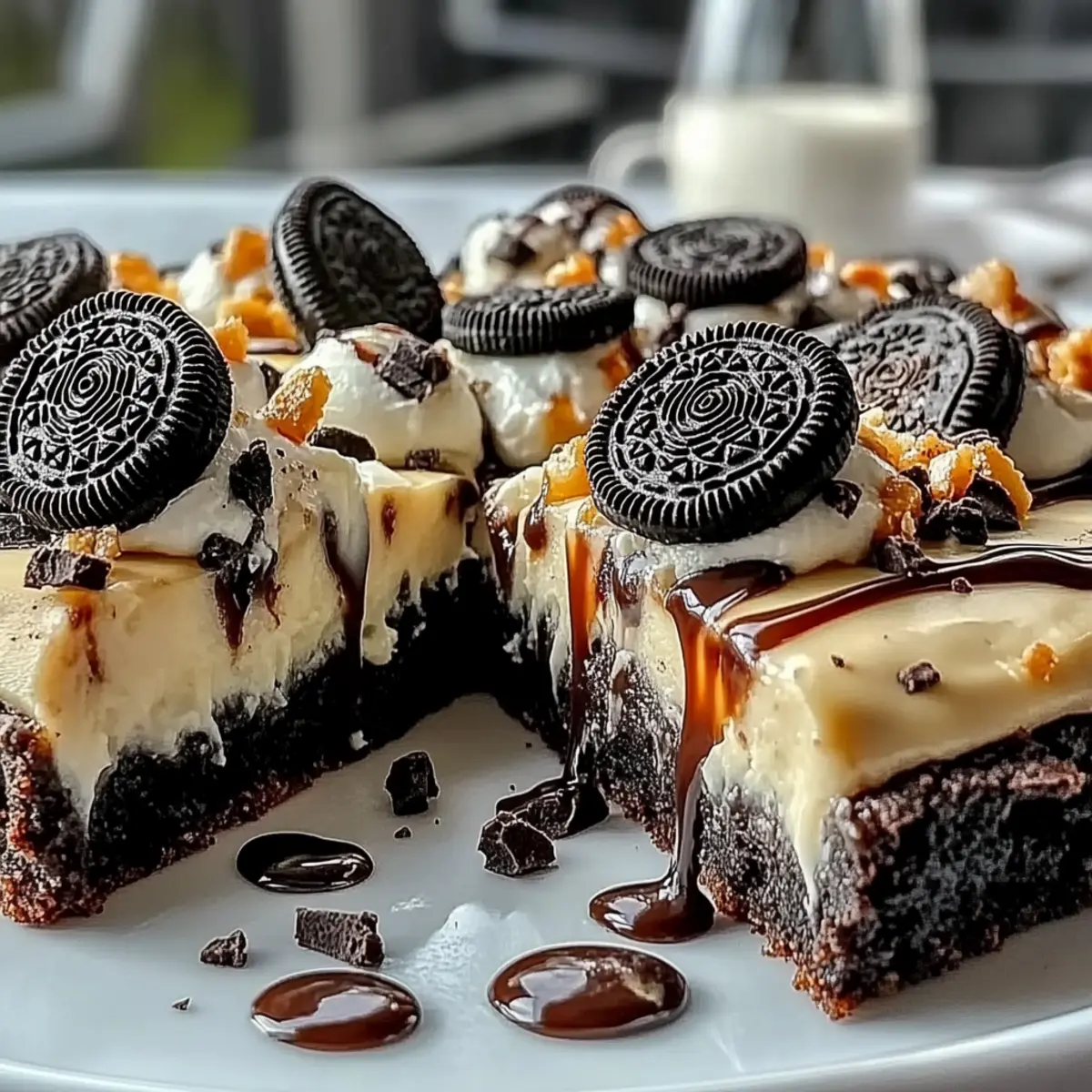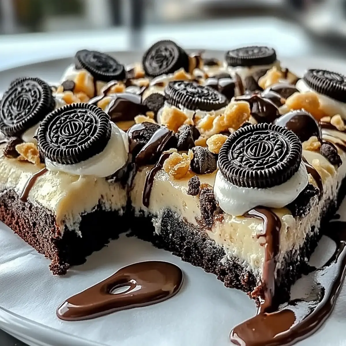 There’s something magical about desserts that combine the best of both worlds, and that’s precisely what this Oreo Fudge Brownie Pizza offers! With its fudgy brownie base, luscious cream cheese topping, and a generous sprinkle of crushed Oreo cookies, it’s an easy dessert that feels nothing short of a bakery masterpiece. Not only is it a crowd-pleaser that’ll earn you a round of applause at your next gathering, but the customization options are endless—think of it as a blank canvas for your sweet cravings. Whether you’re leaning towards a classic Oreo indulgence or a creative twist with your favorite cookies, this recipe invites you to play in the kitchen. Are you ready to transform your dessert game? Let’s dive into the deliciousness! Why is this dessert so irresistible? Customizable Delight: This Oreo Fudge Brownie Pizza is a blank canvas for your creativity, allowing endless variations to suit any sweet tooth. Crowd-Pleaser: Serve it at gatherings and watch as smiles light up the room—it’s an instant favorite for both kids and adults alike! Effortless Elegance: With minimal effort, you can present a dessert that looks like it came straight from a bakery; perfect for impressing guests. Rich and Creamy: The combination of fudgy brownies and smooth cream cheese offers a sensational burst of flavor and texture in every bite. Time-Saving Treat: Quick to make, this dessert can be prepped in under an hour, plus it’s easy to transport for parties or potlucks! For more dessert inspiration, don’t miss our Patriotic Fudge Festive and consider pairing it with a scoop of vanilla ice cream for the perfect sweet accomplice! Oreo Fudge Brownie Pizza Ingredients For the Brownie Base 1 box brownie mix (fudgy style) – Use this for a rich, chewy base, or try a homemade brownie recipe with melted chocolate for deeper flavor. 1/2 cup unsalted butter (melted) – This adds moisture and richness; you can use vegetable oil as a lighter alternative. For the Cheesecake Layer 8 oz cream cheese (softened) – This forms the creamy cheesecake layer; Neufchâtel cheese is a lower-fat substitute. 3/4 cup powdered sugar – Sweetens and stabilizes the mixture; consider using less sugar or an alternative for a low-sugar version. 1 tsp vanilla extract – Enhances flavor; try almond extract for a unique twist. For the Toppings 12 Oreo cookies (crushed) – Adds that classic Oreo crunch; swap them out for chocolate chip cookies for a fun twist. 1/4 cup chocolate sauce or ganache – Drizzle over the top for decadence; caramel sauce can be a tasty alternative. 1/2 cup whipped cream or frosting (optional) – Adds creaminess and a decorative finish; use non-dairy whipped topping for a dairy-free option. 2 tbsp cookie crumble or crushed graham crackers (optional) – For garnish and added crunch; consider using chopped nuts for extra texture. This Oreo Fudge Brownie Pizza is designed to satisfy your sweet tooth and impress your guests! Step‑by‑Step Instructions for Oreo Fudge Brownie Pizza Step 1: Preheat the Oven Begin by preheating your oven to the temperature specified on the brownie mix package, usually around 350°F (175°C). This crucial step ensures that the brownies bake evenly, resulting in a deliciously fudgy texture. Prepare your 12-inch pizza pan by greasing it lightly with butter or non-stick spray to prevent sticking. Step 2: Prepare the Brownie Base In a mixing bowl, prepare the brownie mix according to package instructions, incorporating melted unsalted butter for added richness. Pour the thick brownie batter into the greased pizza pan, spreading it evenly with a spatula. Bake the brownie base in the preheated oven for 20–25 minutes, or until the edges are set but the center remains slightly fudgy. Once baked, allow it to cool completely. Step 3: Make the Cream Cheese Layer While the brownie base cools, in a medium bowl, combine the softened cream cheese, powdered sugar, and vanilla extract. Using an electric mixer, beat the mixture on medium speed until it’s smooth and creamy, approximately 2–3 minutes. This luscious cream cheese layer adds the perfect contrast to the fudgy brownie base of your Oreo Fudge Brownie Pizza. Step 4: Assemble the Dessert Once the brownie base has cooled completely, take your cream cheese mixture and evenly spread it on top using a spatula. Ensure the layer is smooth and reaches all corners of the brownie base. The creaminess of the topping beautifully complements the brownies and creates a delightful canvas for the Oreo topping. Step 5: Add the Oreo Toppings Generously sprinkle the crushed Oreos over the cream cheese layer, allowing some to fall on the edges for visual appeal. For an extra touch, gently press a few whole Oreos into the cream cheese layer. This will create a beautiful layer of richness and texture, making your Oreo Fudge Brownie Pizza both delicious and visually appetizing. Step 6: Drizzle with Chocolate Sauce Now it’s time to make your dessert even more decadent! Drizzle chocolate sauce or ganache over the entire top of your brownie pizza, creating beautiful patterns. You can also add dollops of whipped cream or frosting for that final touch of creaminess. This not only enhances the flavor but also adds a delightful visual contrast to your creation. Step 7: Chill to Set Refrigerate your Oreo Fudge Brownie Pizza for at least 1 hour. This chilling time allows the layers to set properly, making it easier to slice and serve. The coolness will also enhance the flavors, creating a beautifully harmonious blend of textures that will have everyone asking for seconds. Step 8: Serve and Enjoy When ready to serve, take your Oreo Fudge Brownie Pizza out of the refrigerator and slice it into wedges just like a pizza. You can enjoy it chilled or let it come to room temperature. Either way, this crowd-pleasing dessert will satisfy cravings and impress your family and friends with every delicious bite! Expert Tips for Oreo Fudge Brownie Pizza 
