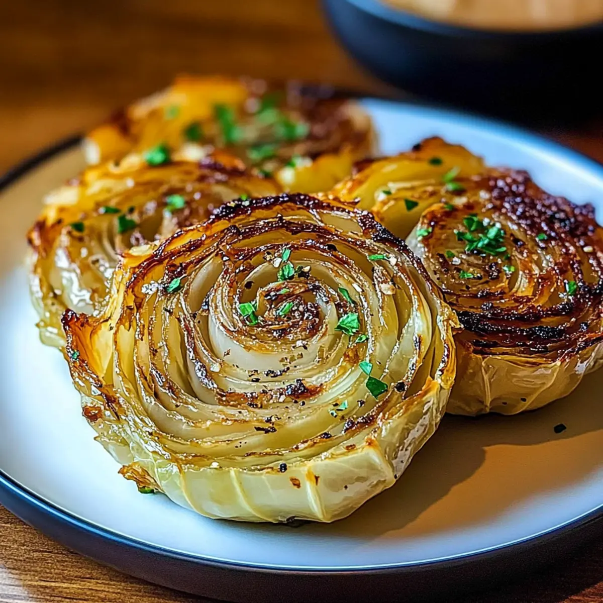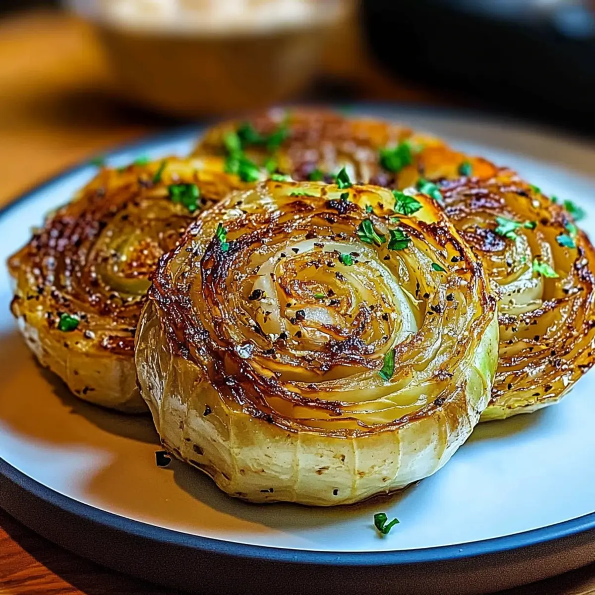 Facebook Twitter Pinterest LinkedInThe aroma of roasting garlic brings memories of cozy dinners, where the simplest ingredients turned into unforgettable flavors. Today, I’m excited to share my recipe for Oven Roasted Garlic Cabbage Steaks—an effortlessly delicious dish that contrasts crispy edges with a tender heart. These garlic-infused beauties are not only vegan and gluten-free but also prove that healthy meals can be packed with personality. Whether you’re seeking a vibrant side for your weeknight dinners or a light yet satisfying main course, these cabbage steaks offer an unbeatable solution. They’re incredibly quick to prepare and versatile enough to pair with any protein or stand alone on your plate. Curious how to make these delectable gems in both the oven and air fryer? Let’s get started! Why Are Cabbage Steaks So Popular? Simplicity: With just a handful of ingredients, these Oven Roasted Garlic Cabbage Steaks are quick to prepare, making them an ideal choice for busy weeknights. Flavor Burst: The aroma of garlic, combined with herbs, creates a mouthwatering experience that tantalizes your taste buds. Versatile: Enjoy them as a hearty side dish alongside Cheesy Garlic Bread or as a light main with plant-based proteins, offering endless pairing opportunities. Healthy Satisfaction: Packed with nutrients and low in calories, these cabbage steaks prove that healthy eating can be deliciously satisfying. Crowd-Pleaser: Serve them at gatherings, and watch as they disappear—everyone loves these crispy delights! Oven Roasted Garlic Cabbage Steaks Ingredients For the Cabbage Steaks • Cabbage – Look for a fresh, firm head to ensure clean slicing and optimal roasting. • Olive Oil – Adds moisture and aids in crisping; avocado oil can be used as a substitution. For the Seasoning • Garlic Powder – Provides that essential savory flavor we all crave. • Smoked Paprika – Adds depth and a delicious hint of smokiness. • Onion Powder – Enhances overall flavor, making each bite irresistible. • Thyme – Offers a fragrant herb note; fresh thyme can be used instead of dried. • Salt – Essential for taste, don’t skimp on this! • Black Pepper – Adds heat and flavor, giving the steaks that extra kick. Optional Toppings • Parmesan Cheese – A delightful sprinkle for added richness (can be skipped for a vegan option). • Red Pepper Flakes – For those who like a little heat. • Chopped Parsley – A fresh garnish to brighten up your dish. These Oven Roasted Garlic Cabbage Steaks are not only simple to whip up, but they also highlight the beauty of plant-based eating with robust flavors and crispy textures that will have you reaching for seconds! Step‑by‑Step Instructions for Oven Roasted Garlic Cabbage Steaks Step 1: Preheat the Oven Begin your adventure by preheating your oven to 400°F (200°C). While the oven warms up, line a baking sheet with parchment paper or lightly grease it to prevent sticking. This setup is crucial for achieving those perfectly crispy edges that make these Oven Roasted Garlic Cabbage Steaks so delightful. Step 2: Prepare the Cabbage Next, remove any damaged outer leaves from your fresh cabbage. Carefully slice it into ¾-inch thick rounds, keeping the core intact to maintain the steak shape. As you work, admire the vibrant green color and beautiful layers of each cabbage slice, which will transform into a delicious treat in no time. Step 3: Mix the Seasoning In a medium bowl, combine olive oil, garlic powder, smoked paprika, onion powder, thyme, salt, and black pepper. Mix well until you have a fragrant seasoning blend that will coat your cabbage steaks. The combination of spices will bring rich flavors, enhancing the natural sweetness of the cabbage as it roasts. Step 4: Coat the Cabbage Steaks Take each cabbage steak and generously brush both sides with your savory seasoning mixture. Ensure the coats are even and thorough, as this will help to crisp up the steaks and provide a burst of flavor with every bite. Place the coated steaks on the prepared baking sheet, leaving space between each for optimal roasting. Step 5: Roast the Cabbage Steaks Slide the baking sheet into the preheated oven and roast the cabbage steaks for 25–30 minutes. At the halfway point, gently flip each steak to ensure even cooking. You’ll know they are ready when the edges are golden brown and crispy, filling your kitchen with an irresistible aroma. Step 6: Add Optional Toppings If you desire extra flavor, sprinkle your favorite toppings like Parmesan cheese, red pepper flakes, or chopped parsley over the cabbage steaks just before serving. This is a great opportunity to customize your Oven Roasted Garlic Cabbage Steaks and make them even more appealing to your taste buds. Oven Roasted Garlic Cabbage Steaks Variations Feel free to get creative with these Oven Roasted Garlic Cabbage Steaks and make them your own! Dairy-Free: Omit Parmesan cheese or use nutritional yeast for a cheesy flavor without the dairy. This swap maintains the delicious essence while catering to vegan diets. Spicy Kick: Add a sprinkle of cayenne pepper or red pepper flakes for extra heat. A little spice can elevate the flavor and bring out the savory richness of the garlic. Herb Explosion: Experiment with fresh herbs like rosemary or oregano in place of thyme. Those fragrant notes will give the cabbage steaks a delightful twist that your taste buds will love. Sweet Twist: Drizzle a bit of honey or maple syrup over the steaks before roasting. The sweetness beautifully contrasts the savory seasonings, creating a harmonious balance on your plate. Crispy Topping: For an added crunch, toss some breadcrumbs or crushed nuts with olive oil and sprinkle on top before roasting. This adds delightful texture that pairs perfectly with the tender cabbage. Mediterranean Flair: Swap the seasoning for a blend of lemon zest, garlic, and Italian herbs. This bright approach turns your cabbage steaks