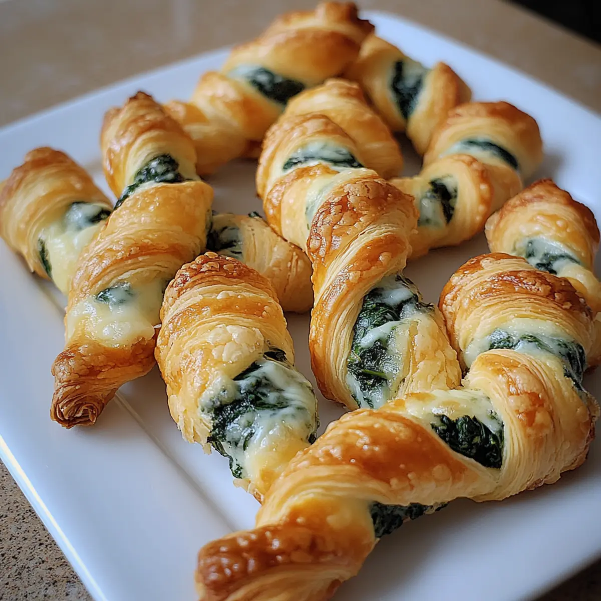 Facebook Twitter Pinterest LinkedInAs I pulled the golden-brown twists from the oven, the enticing aroma of melted cheese and fresh spinach wafted through my kitchen, sparking an instant craving. These Parmesan and Spinach Cheese Twists are a delightful and quick appetizer, perfect for any gathering or a cozy night in. Easy to prepare and budget-friendly, they offer a wonderful balance of flaky puff pastry and gooey, savory filling that your family and friends will devour. Not only can they be made ahead of time, but they also serve as a comforting snack that’s perfect for any occasion. Curious to discover how to whip up these irresistible treats in no time? Let’s dive in! Why are these twists irresistible? Cheesy Goodness: The melting mozzarella combined with tangy Parmesan creates a flavor explosion in every bite. Quick & Easy: With minimal prep time, these twists are perfect for last-minute gatherings or cozy nights in. Versatile Delight: Customize with your favorite cheeses or herbs to create a unique twist that suits your taste. Make-Ahead Magic: Prepare in advance and pop them in the oven when your guests arrive for warm, fresh snacks. Crowd-Pleasing Appeal: These delicious bites vanish quickly—a sure hit at parties or casual family dinners. Try serving them alongside Sausage Egg Cheese Breakfast Roll-Ups for an even more delightful spread! Parmesan and Spinach Cheese Twists Ingredients For the Pastry • Puff Pastry – This flaky, buttery base is essential; consider crescent roll dough or phyllo as alternatives if needed. For the Cheese Filling • Parmesan Cheese – Adds a rich, salty flavor that enhances the overall dish; swap for Pecorino Romano or Asiago for a unique twist. • Mozzarella Cheese – Offers that necessary melting, creamy goodness; cheddar or provolone can provide a delightful variation. For the Greens • Fresh Spinach – Gives a burst of color and freshness; kale or arugula are great substitutes if you need a change. For the Seasoning • Garlic Powder – This ingredient elevates the flavor profile; fresh minced garlic will give a stronger kick if preferred. These Parmesan and Spinach Cheese Twists are not only quick to whip up but also deliver a warmth and comfort that’s perfect for any gathering! Step‑by‑Step Instructions for Parmesan and Spinach Cheese Twists Step 1: Preheat the Oven Begin by preheating your oven to 400°F (200°C). This temperature is perfect for achieving those golden, flaky layers in the Parmesan and Spinach Cheese Twists. While the oven heats, gather your baking sheet and line it with parchment paper to ensure easy cleanup and prevent sticking. Step 2: Prepare the Puff Pastry On a lightly floured surface, roll out the thawed puff pastry to smooth out any creases. Using a sharp knife or pizza cutter, slice the pastry into strips, approximately 1 inch wide. Lay the strips flat to prepare for the tasty filling; this will allow for easy twisting later on. Step 3: Mix the Cheese Filling In a medium-sized bowl, combine the grated Parmesan cheese, shredded mozzarella, and finely chopped fresh spinach. Add a sprinkle of garlic powder for flavor enhancement. Mix the ingredients well until the cheese and spinach are evenly distributed, creating a delightful filling for your Parmesan and Spinach Cheese Twists. Step 4: Fill and Twist the Pastry Take a pastry strip and place a spoonful of the cheese mixture at one end. Carefully fold it over and twist the pastry to encase the filling. Ensure the ends are sealed well to avoid any leakage while baking. Repeat this process until all your pastry strips are filled and twisted for serving. Step 5: Arrange the Twists for Baking Place your freshly twisted cheese-filled pastries onto the lined baking sheet, leaving space between each twist to allow for puffing. For a beautiful golden finish, consider brushing the tops lightly with an egg wash made from a beaten egg and a splash of water; this will enhance their color as they bake. Step 6: Bake the Cheese Twists Pop the baking sheet into the preheated oven and bake for 18-20 minutes, or until the twists are puffed up and a lovely golden brown. Keep an eye on them, as the aroma will surely fill your kitchen, signaling their delicious doneness. Step 7: Serve and Enjoy Once baked, remove the Parmesan and Spinach Cheese Twists from the oven and let them cool for a few minutes. These twists are best enjoyed warm and can be served with an array of dipping sauces like marinara or garlic butter to enhance your snacking experience. Expert Tips for Parmesan and Spinach Cheese Twists Thaw the Pastry: Make sure your puff pastry is fully thawed before using. This prevents tearing and makes it easier to work with. Mind the Filling: Avoid overstuffing your twists. Too much filling can lead to leakage and a mess in the oven! Use Egg Wash: Brush the pastry with an egg wash for a beautiful, golden finish. It adds an appealing shine and crunch to the Parmesan and Spinach Cheese Twists. Baking Time: Keep a close eye as they bake; ovens can vary! Remove them when golden brown and puffed for the best texture. Serve Immediately: Enjoy these twists fresh from the oven for optimal taste, as they lose their flakiness when cooled for too long. What to Serve with Parmesan and Spinach Cheese Twists A perfect appetizer deserves some delightful companions to enhance your dining experience and elevate your gathering. Creamy Tomato Soup: The tangy flavor of tomato soup pairs beautifully with the cheesy bites, creating a comforting and familiar combination that warms the soul. Garlic Butter Dipping Sauce: A luscious garlic butter sauce elevates the cheese twists with extra richness and flavor, making each bite a savory delight. Fresh Garden Salad: A light salad with crisp greens and a zesty vinaigrette brings a refreshing contrast to the cheesy twists, offering a balanced meal. Roasted Vegetables: Colorful roasted veggies add earthy tones and textures, complementing the flaky 