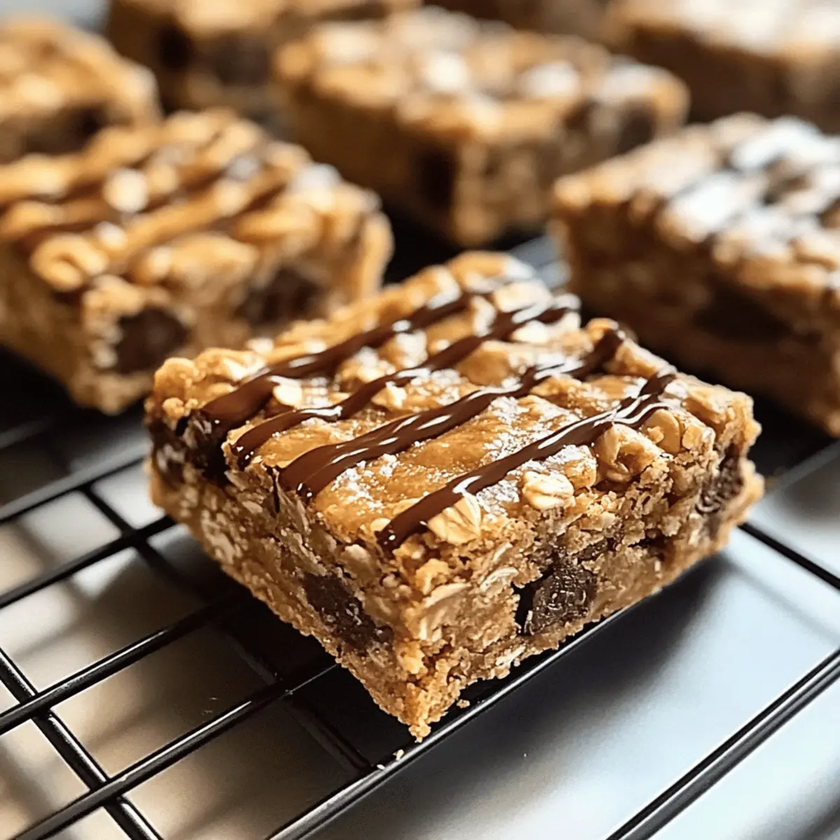 Crisp autumn leaves crunch beneath my feet as I stroll through the park, a warm mug of peanut butter in hand—a sweet reminder of what’s to come. There’s something heartwarming about making Healthy Peanut Butter Chunk Oatmeal Bars that brings a sense of comfort and nostalgia. Not only are they a nourishing snack packed with protein, but they’re also incredibly versatile! You can easily swap in your favorite chocolate chunks or nuts to create a personalized treat that delights everyone, from kids to adults. These bars require minimal prep, making them perfect for busy mornings or quick, guilt-free snacks. Best of all, you can make a batch ahead of time, ensuring you always have something wholesome on hand. Ready to whip up a batch that will keep you energized throughout the day? Let’s get started! Why are Peanut Butter Chunk Oatmeal Bars Perfect? Healthy and Nutritious: These bars are packed with protein and fiber, making them a smart snack choice that keeps you fuller for longer. Customizable: With endless variations to mix in chocolate chunks, nuts, or even dried fruits, you can tailor these snacks to suit your taste. Quick and Easy: Minimal prep time means you can whip them up even on the busiest mornings! Make-Ahead Convenience: Prepare a batch to keep on hand for a quick breakfast or a post-workout fuel that satisfies cravings. Crowd-Pleaser: Loved by kids and adults alike, these bars are the perfect addition to lunchboxes, picnics, or snack time gatherings. Make sure to pair these delicious treats with some Greek yogurt or homemade honey butter for an extra delicious snack! Peanut Butter Chunk Oatmeal Bars Ingredients Get ready to make these delicious Peanut Butter Chunk Oatmeal Bars with the ingredients below! For the Base • Rolled Oats – Provide structure and chewiness; substitute with gluten-free oats for a gluten-free option. • Natural Peanut Butter – Adds creaminess and rich peanut flavor; use almond or sunflower butter for nut-free versions. • Honey or Maple Syrup – Acts as a natural sweetener; can be replaced with agave syrup for a vegan alternative. • Vanilla Extract – Enhances flavor; can be omitted if necessary. • Baking Soda – Aiding in leavening; ensures bars rise slightly, no substitutes required. • Salt – Balances sweetness and enhances flavor; adjustable to taste. Optional Add-Ins • Chocolate Chunks or Chips – Adds sweetness and richness; dark chocolate is a healthier choice or omit for less sugar. • Chopped Nuts – Provides texture and flavor; substitute with seeds for a nut-free option. These ingredients will create a perfect batch of Peanut Butter Chunk Oatmeal Bars that everyone will love! Step‑by‑Step Instructions for Peanut Butter Chunk Oatmeal Bars Step 1: Preheat the Oven Begin by preheating your oven to 350°F (175°C). While it warms up, prepare an 8×8 or 9×9-inch baking dish by lining it with parchment paper. This ensures easy removal of your delicious Peanut Butter Chunk Oatmeal Bars once they are baked, providing a nice, clean edge to each bar. Step 2: Mix the Wet Ingredients In a large mixing bowl, combine the natural peanut butter, honey (or maple syrup), and vanilla extract. Use a whisk or spatula to blend these ingredients until smooth and creamy, which should take about 2-3 minutes. This fragrant mixture will add a delightful richness to your bars, ensuring they’re packed with flavor. Step 3: Combine the Dry Ingredients In another bowl, combine the rolled oats, baking soda, and salt. If you’re adding optional chocolate chunks or chopped nuts, include them in this mix as well. Stir the dry ingredients together until they are evenly distributed, ensuring every bite of your Peanut Butter Chunk Oatmeal Bars is a perfect balance of goodness. Step 4: Blend Wet and Dry Mixtures Gradually add the dry mixture to your creamy wet ingredients. Stir the ingredients together using a sturdy spatula until a thick batter forms—this should take about 2-3 minutes. You want to thoroughly combine everything without overmixing, maintaining a light and airy texture for your bars. Step 5: Transfer to Baking Dish Once the batter is ready, transfer it to the lined baking dish. Using a spatula, press the mixture down firmly and evenly so that it covers the entire bottom of the dish. This step is vital, as it ensures your Peanut Butter Chunk Oatmeal Bars bake evenly and hold their shape. Step 6: Bake the Bars Place the baking dish in the preheated oven and bake for 20-25 minutes. Keep an eye on them, looking for golden brown edges as a cue for doneness. The center should feel firm to the touch but slightly soft, a sign that your bars will be chewy once cooled. Step 7: Cool and Slice the Bars After baking, remove your Peanut Butter Chunk Oatmeal Bars from the oven and allow them to cool in the pan for about 10 minutes. After cooling slightly, use the parchment paper to lift the bars out onto a cutting board. Let them cool completely before slicing into squares or rectangles for the perfect snack-sized pieces. Peanut Butter Chunk Oatmeal Bars Variations Feel free to explore these delightful twists that will elevate your Peanut Butter Chunk Oatmeal Bars to new heights of flavor and texture! Nut-Free Version: Swap natural peanut butter for sunflower butter, ensuring a deliciously creamy, nut-free treat anyone can enjoy. It’s a fantastic option for schools or gatherings where allergies might be a concern. Choco-Chunky Boost: Add an extra half cup of dark chocolate chunks for a richer, indulgent experience. The melty chocolate combined with the chewiness of the bars creates a truly irresistible combination. Fruity Twist: Incorporate dried cranberries or raisins for a chewy, fruity surprise in every bite. Not just adding flavor, these fruits also bring a splash of color and a hint of tartness that pairs beautifully with the sweet peanut butter. Spiced Delight: Try mixing in a teaspoon of cinnamon or a pinch of nutmeg for warming sp