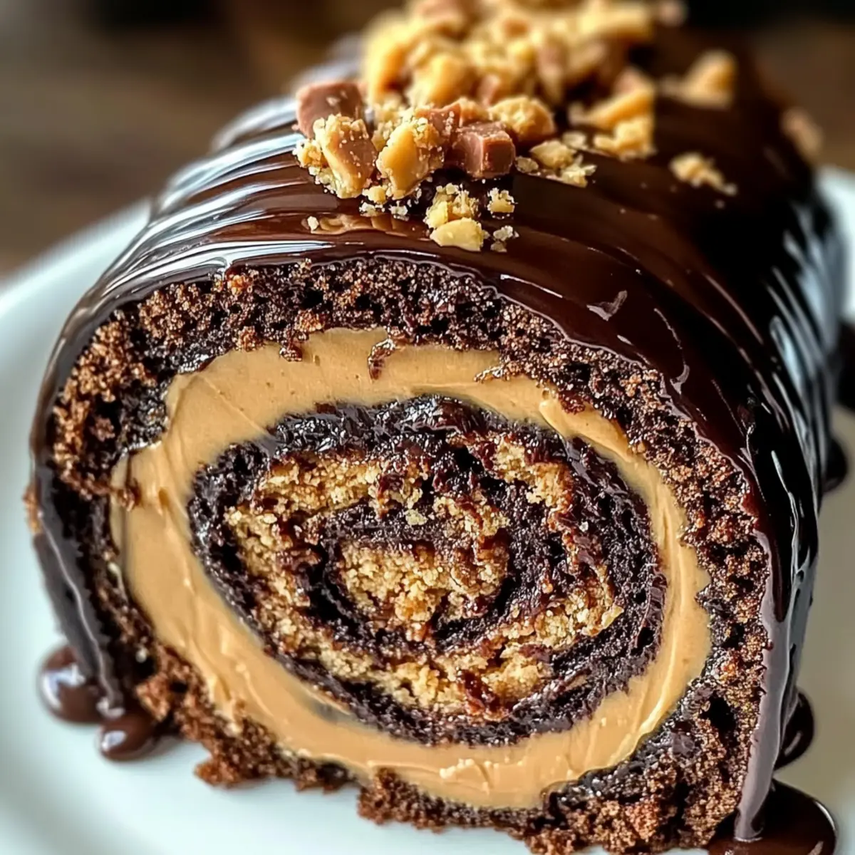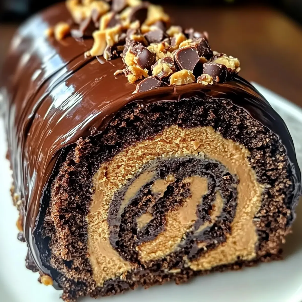 This Peanut Butter Cup Chocolate Roll combines rich chocolate and creamy peanut butter in a visually stunning dessert.