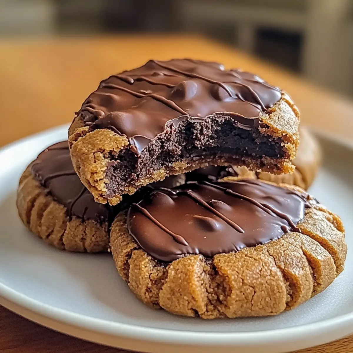 Facebook Twitter Pinterest LinkedInAs I sift through the pages of my favorite family recipes, I often stumble upon treasures that not only evoke nostalgia but spark joy in the kitchen. Today, I’m thrilled to share my latest creation: Healthy Peanut Butter Greek Yogurt Chocolate Fudge Cookies. These little delights are a game changer for anyone who’s craving something sweet yet wholesome. With their indulgent chocolate flavor and a fudgy texture that resembles brownies, they offer stellar nutrition benefits—you’ll get high-protein goodness and low-sugar satisfaction in every bite! Plus, they’re gluten-free and easy to whip up, making them perfect for a quick treat or an energy boost. Are you ready to impress your taste buds while nourishing your body? Let’s dive into this delicious recipe together! Why are these cookies a must-try? Decadent indulgence without the guilt: These Peanut Butter Greek Yogurt Chocolate Fudge Cookies satisfy your sweet tooth while providing nutritional benefits. Super easy to make: With straightforward instructions, you can whip up a batch in no time, perfect for busy cooks! Gluten-free and low-sugar: Cater to your dietary needs while enjoying delicious treats. Versatile variations: Experiment with different nut butters or add-ins like dark chocolate chips or chopped nuts to keep things exciting! Crowd-pleaser appeal: These cookies are sure to impress family and friends, making them perfect for gatherings. Elevate your dessert game today! Peanut Butter Greek Yogurt Chocolate Fudge Cookies Ingredients • Get ready to whip up a guilt-free delight with these healthy ingredients! For the Cookies Natural Peanut Butter – A creamy base that binds and adds deep flavor; use well-stirred for the best texture. Full-fat Greek Yogurt – Delivers creaminess and moisture for a fudgy consistency; you can also use 2% yogurt. Honey or Maple Syrup – A natural sweetener for added moisture; feel free to adjust the amount to suit your taste. Vanilla Extract – Enhances the overall flavor; opt for high-quality extract to make a noticeable difference. Oat Flour – A gluten-free, nutty base that contributes to a tender texture; it can be made by processing rolled oats. Unsweetened Cocoa Powder – Critical for that rich chocolate flavor; avoid sweetened varieties to keep sugar low. Baking Powder – Helps lift the cookies without making them heavy. Salt – Balances sweetness and enriches the chocolate flavor. Dark Chocolate Chips – Bursts of chocolate in every bite; mini chips are great for even distribution, but regular size works too. Optional Add-ins Chopped Nuts (Walnuts or Almonds) – Adds a delightful crunch and extra texture; roast for enhanced flavor. Freeze-Dried Fruits – Incorporate for a fruity twist, bringing both flavor and nutrition. Extra Cocoa Powder – For intense chocolate lovers; increases the chocolatey goodness without added sugar. Indulge in these Peanut Butter Greek Yogurt Chocolate Fudge Cookies and transform your dessert experience with wholesome ingredients! Step‑by‑Step Instructions for Peanut Butter Greek Yogurt Chocolate Fudge Cookies Step 1: Preheat the Oven Begin by preheating your oven to 350°F (175°C). As the oven warms, line a baking sheet with parchment paper to create a non-stick surface for your cookies. This will ensure easy cleanup and prevent the cookies from sticking as they bake to perfection. Step 2: Mix the Wet Ingredients In a large mixing bowl, combine natural peanut butter, full-fat Greek yogurt, honey or maple syrup, and vanilla extract. Whisk these ingredients together until the mixture is smooth and glossy, taking about 2-3 minutes. This creamy base will give your Peanut Butter Greek Yogurt Chocolate Fudge Cookies their fudgy texture. Step 3: Prepare the Dry Ingredients In a separate bowl, whisk together oat flour, unsweetened cocoa powder, baking powder, and salt. Sifting these dry ingredients helps avoid lumps and ensures even distribution of flavor. Once they are well combined, gently fold the dry mix into the wet ingredients until just incorporated; be careful not to overmix. Step 4: Add Chocolate Chips Now it’s time to fold in the dark chocolate chips. Use a spatula to gently mix the chips into the dough, ensuring even distribution without breaking them. This step enhances the chocolatey goodness in each bite of your cookies, making them a delightful treat. Step 5: Scoop the Dough Using a cookie scoop or a spoon, drop dough onto the prepared baking sheet, spacing them about 2 inches apart. Slightly flatten each scoop of dough with the back of a spoon to create even shapes. This helps the Peanut Butter Greek Yogurt Chocolate Fudge Cookies bake evenly and develop a delightful texture. Step 6: Bake the Cookies Place the baking sheet in the preheated oven and bake for 10-12 minutes. Keep an eye on them; the cookies should have set edges while the centers may still look slightly underdone. This will ensure they remain fudgy and delicious, just like brownies! Step 7: Cool and Serve Once baked, remove the cookies from the oven and let them cool on the pan for 5 minutes. This resting time allows them to firm up slightly before transferring them to a wire rack to cool completely. Enjoy the wonderful aroma as they cool down, and get ready to indulge in these Peanut Butter Greek Yogurt Chocolate Fudge Cookies! What to Serve with Healthy Peanut Butter Greek Yogurt Chocolate Fudge Cookies Create a delightful spread to complement the rich, fudgy delight of these cookies! Creamy Vanilla Ice Cream: The smooth texture juxtaposes the cookie’s chewiness, making for a blissful dessert experience. A scoop of vanilla will elevate your indulgence. Fresh Berries: Blueberries or raspberries add a burst of freshness, balancing the cookies’ sweetness with a tangy note. Pairing them brings a vibrant color to your dessert table. Chilled Almond Milk: A light, nutty drink that pairs beautifully with the cookies, enhancing the