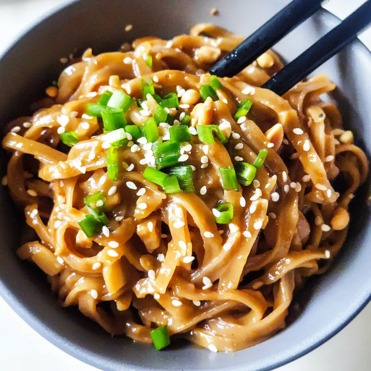 While rummaging through my pantry, I stumbled upon a jar of creamy peanut butter, and it sparked an adventurous idea: Sweet and Spicy Peanut Sauce Rice Noodles! In just under 10 minutes, this vegan and gluten-free dish embodies the beauty of quick, homemade meals that delight the senses. I love how versatile it is; you can easily swap rice noodles for spaghetti or any pasta you have on hand, making it a lifesaver on busy weeknights. But it’s not just quick—it’s also a vibrant combination of flavors, where the rich peanut sauce and a hint of sriracha create a warm, comforting embrace for your taste buds. Are you ready to transform humble pantry staples into a sensational dish that’ll impress everyone at your table? Let’s dive in! Why are Peanut Sauce Rice Noodles irresistible? Quick and Easy: You’ll whip this dish up in under 10 minutes; perfect for those hectic weeknights! Flavor Explosion: The creamy peanut sauce mingles with a spicy touch of sriracha, making every bite a delight. Versatile Ingredients: Use rice noodles or whatever pasta is on hand; it’s all about convenience. For a protein boost, try adding tofu or grilled shrimp! Crowd-Pleaser: This dish appeals to everyone, from vegans to picky eaters, ensuring smiles all around the table. Healthy Option: Gluten-free and filled with wholesome ingredients, these noodles let you indulge without the guilt. Plus, the balance of flavors and textures is simply unmatched! Peanut Sauce Rice Noodles Ingredients For the Sauce • Peanut Butter — The star ingredient that provides creaminess and flavor; you can use creamy or crunchy based on preference. • Soy Sauce — Adds saltiness and depth; light soy sauce is recommended for a balanced taste. • Honey — Contributes the perfect touch of sweetness; for a vegan option, swap with maple syrup. • Garlic — Fresh flavor enhancer; use 2 small cloves minced or blended for that aromatic punch. • Lemon Juice — Adds acidity and balance; just ½ tablespoon will brighten the dish. • Water — Adjusts sauce consistency for coating the noodles; start with about 5 tablespoons, adding more as needed. For the Noodles • Rice Noodles — The ideal base for this recipe; follow package instructions for cooking perfection. • Optional Proteins — Incorporate grilled shrimp or tofu for added heartiness; they complement the flavors beautifully. For Garnishing • Crushed Peanuts — A crunchy topping that elevates the dish; sprinkle generously for that extra texture. • Sesame Seeds — These add a toasty flavor and beautiful presentation; use either white or black sesame seeds. • Spring Onions — Fresh and vibrant, they bring a lovely garnish that enhances the overall look and taste. This Peanut Sauce Rice Noodles recipe captures the essence of quick, delicious meals made with pantry staples! Step‑by‑Step Instructions for Peanut Sauce Rice Noodles Step 1: Prepare Ingredients Start by gathering all your ingredients for the Peanut Sauce Rice Noodles. Measure out your peanut butter, soy sauce, honey, minced garlic, lemon juice, and water. Having everything ready will streamline the cooking process and ensure you have a smooth workflow, so place them close to your cooking area. Step 2: Cook Noodles Fill a large pot with water and bring it to a rolling boil over medium-high heat. Once boiling, add in your rice noodles and cook according to the package instructions, typically around 4-6 minutes. Stir occasionally until the noodles are tender yet firm, then drain them in a colander, rinsing briefly with cold water to stop the cooking process. Step 3: Make Sauce In a blender or mixing bowl, combine the peanut butter, soy sauce, honey, garlic, lemon juice, and about 5 tablespoons of water. Blend for about 7-8 seconds or whisk vigorously until you achieve a smooth and creamy consistency. If the sauce seems too thick, you can add more water, a tablespoon at a time, until it reaches your desired thickness. Step 4: Combine & Heat In the same pot you used for the noodles, return them to medium heat. Pour the creamy peanut sauce over the hot noodles, mixing well to ensure each strand is evenly coated. Cook for an additional 1-2 minutes, stirring constantly. Add a splash of water if necessary to help the sauce coat the noodles seamlessly, creating a fragrant aroma. Step 5: Serve Remove your Peanut Sauce Rice Noodles from the heat once heated through. Season with salt and pepper to taste, and then transfer to serving bowls. For a delightful finish, garnish with crushed peanuts, sesame seeds, and finely sliced spring onions. This vibrant presentation adds a lovely touch to your dish just before enjoying! Peanut Sauce Rice Noodles Variations Customize your peanut sauce rice noodles to satisfy every craving and dietary need with these exciting twists! Pasta Swap: Substitute rice noodles for spaghetti or any type of pasta you have at home. Both options will soak up that irresistible sauce beautifully! Protein Boost: Add grilled shrimp, chicken, or crispy tofu for an extra protein punch. It transforms this dish into a heartier meal that your whole family will love. Veggie Delight: Toss in sautéed bell peppers, snap peas, or broccoli for added nutrition and crunch. The fresh vegetables add fantastic texture and vibrant colors to your plate. Noodle-Free: Trying to cut carbs? Use spiralized zucchini or cooked cauliflower rice as a delightful, low-carb alternative. You’ll barely miss the noodles! Spicy Kick: If you dare, amp up the heat by adding extra sriracha or some red pepper flakes. Those who love spice will appreciate the fiery flavor! Sweetener Swap: For a different take on sweetness, substitute honey with agave syrup or brown sugar. It changes the flavor profile just a bit, making it uniquely yours. Nutty Variations: If peanuts aren’t your thing, try using almond or cashew butter to create a different but equally delicious sauce. Each nut brings its unique richness to the dish! Herb Infu