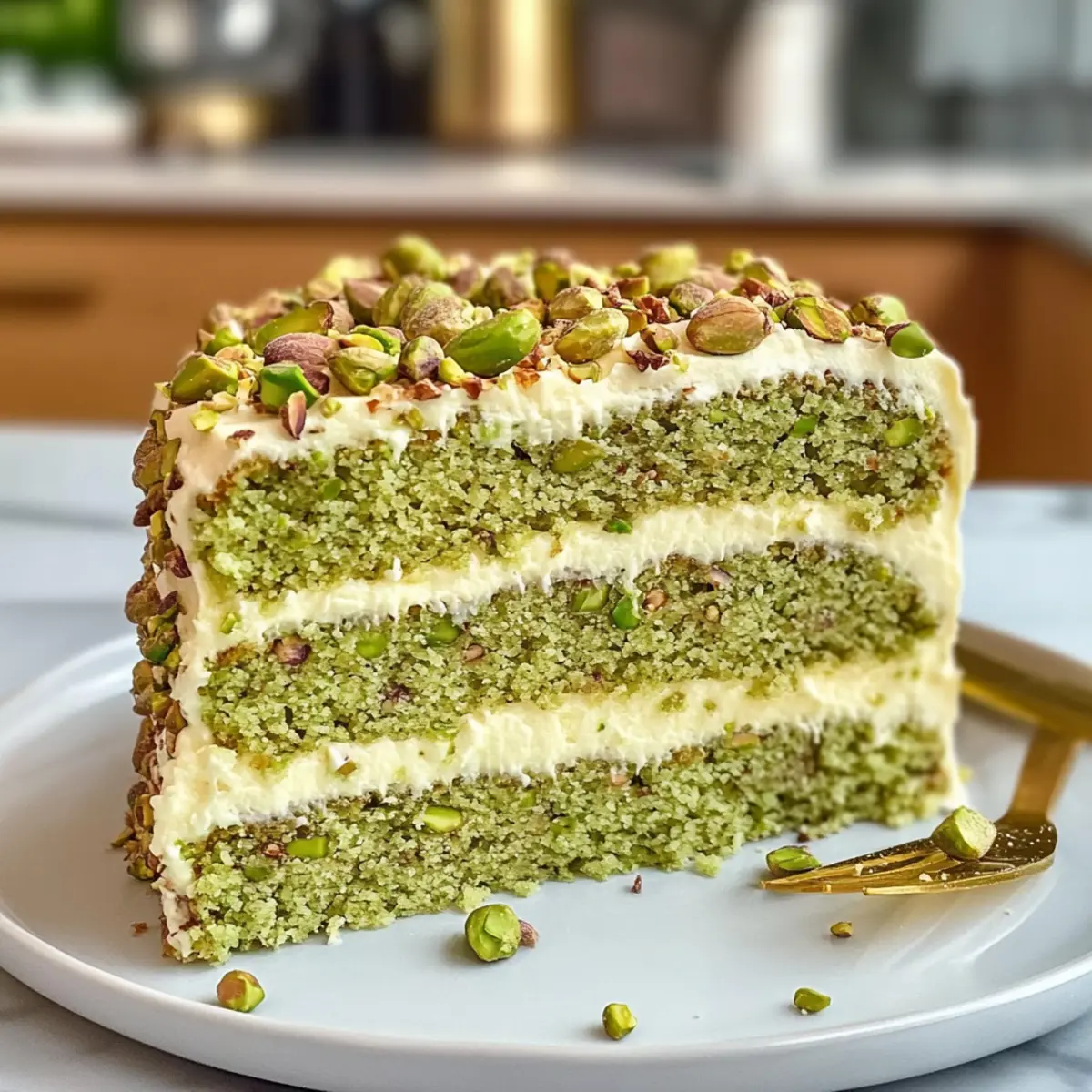 Facebook Twitter Pinterest LinkedInAs I placed the first slice of my Pistachio Mascarpone Layer Cake on the dessert table, I could almost hear the collective gasp as its luscious layers were revealed. This indulgent cake, with its moist pistachio sponge and velvety mascarpone cream, is not just a feast for the eyes; it’s also a celebration of unique flavors that can elevate any occasion. Each bite offers a delightful balance of nutty richness and airy sweetness, perfect for both special gatherings and cozy evenings. The beauty of this cake lies in its versatility—it’s vegetarian, a crowd-pleaser, and surprisingly simple to prepare. What special treat could possibly be better to impress your loved ones? Dive into my recipe and let’s uncover the secret to creating this unforgettable dessert that promises to be a standout, no matter the occasion! Why is This Cake So Irresistible? Indulgent flavors abound in this Pistachio Mascarpone Layer Cake, delivering a rich experience that is both luxurious and satisfying. Stunning presentation makes this cake a showstopper that will leave your guests in awe. Versatile ingredients allow for easy substitutions, making it approachable for any dietary preference—consider a vegan twist or fresh fruit layers for a delightful variation! Quick preparation means you can whip it up for any occasion, even last-minute gatherings. And with its crowd-pleasing promise, this dessert is sure to become a family favorite that brings joy to every celebration. For another delightful option, don’t miss my No-Bake Summer Berry Icebox Cake for a refreshing treat. Pistachio Mascarpone Layer Cake Ingredients For the Cake • Shelled Pistachios – Adds nutty flavor and a delicate texture, use finely ground to create the cake’s structure. • All-Purpose Flour – Provides necessary structure and stability; no substitutions specified for best results. • Baking Powder – Essential leavening agent to help the cake rise; ensure it’s fresh for optimal rise. • Salt – Enhances overall flavor; opt for fine salt for better incorporation into the batter. • Unsalted Butter – Creates a rich, tender crumb; can substitute with plant-based butter for a dairy-free option. • Granulated Sugar – Sweetens the cake and contributes to its texture; consider a sugar alternative for a lighter treat. • Eggs – Provide moisture and binding; for an egg-free version, try a flaxseed meal mixture. • Whole Milk – Adds moisture and richness; swap with almond milk for a dairy-free twist. • Vegetable Oil – Contributes to moisture and tenderness; other neutral oils can work well too. • Vanilla Extract – Adds depth to the flavor; use pure vanilla for the best taste or substitute with almond extract. For the Mascarpone Cream • Heavy Cream – Crucial for creating a fluffy mascarpone cream; ensure it’s cold before whipping for best results. • Mascarpone Cheese – Delivers a creamy texture perfect for frosting; substitute with a mixture of cream cheese and heavy cream if necessary. • Powdered Sugar – Sweetens the mascarpone cream to balance flavors; alternatives like coconut sugar can be used if desired. For the Topping • Chopped Pistachios – Adds a delightful crunch and visual appeal; aim for fresh pistachios for the best flavor. This delightful Pistachio Mascarpone Layer Cake is not just an indulgence, it’s also a canvas for creativity in your kitchen! Enjoy crafting this unique dessert that is sure to impress. Step‑by‑Step Instructions for Pistachio Mascarpone Layer Cake Step 1: Preheat and Prepare Pans Begin by preheating your oven to 175°C (350°F). While the oven warms, take three 8-inch round cake pans and line the bottoms with parchment paper, lightly greasing the sides to prevent sticking. This preparation ensures a seamless release once your indulgent Pistachio Mascarpone Layer Cake is baked to perfection. Step 2: Grind Pistachios and Mix Dry Ingredients In a food processor, finely grind the shelled pistachios until they resemble flour. Combine this ground pistachio mixture with all-purpose flour, baking powder, and salt in a large bowl. Whisk these dry ingredients thoroughly, allowing the flavors to meld, and set aside the mixture as you move on to creating the cake batter. Step 3: Cream Butter and Sugar In a large mixing bowl, use an electric mixer to beat the unsalted butter and granulated sugar together on medium speed until the mixture becomes light and fluffy, around 3 minutes. This step is crucial for creating a tender crumb in your cake. Scrape down the sides of the bowl to ensure even mixing, which is essential for your Pistachio Mascarpone Layer Cake’s delicious texture. Step 4: Incorporate Eggs and Other Wet Ingredients Add the eggs one at a time to the creamed butter and sugar, ensuring each egg is fully incorporated before adding the next. Pour in the whole milk, vegetable oil, and vanilla extract, gently stirring these wet ingredients into the mixture until just combined. This careful blending will maintain the airy texture of your batter. Step 5: Combine Dry and Wet Ingredients Fold the dry ingredient mixture into the wet ingredients using a spatula, mixing until just combined to avoid overworking the batter. The goal is a smooth, slightly thick batter for your Pistachio Mascarpone Layer Cake. Proper folding will ensure a light, fluffy cake that rises beautifully in the oven. Step 6: Bake the Layers Divide the batter evenly among the prepared cake pans, smoothing the tops for an even bake. Place them in the preheated oven and bake for 22–25 minutes. Keep an eye on your cakes; they are ready when a toothpick inserted in the center comes out clean, signaling they are perfectly baked. Step 7: Cool and Prepare the Mascarpone Cream Once baked, allow the cakes to cool in the pans for about 10 minutes before transferring them to a wire rack to cool completely. While the cakes cool, whip the heavy cream with mascarpone cheese, p
