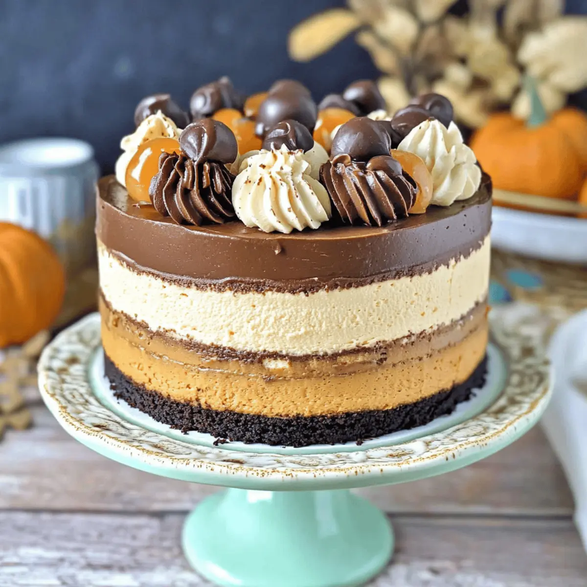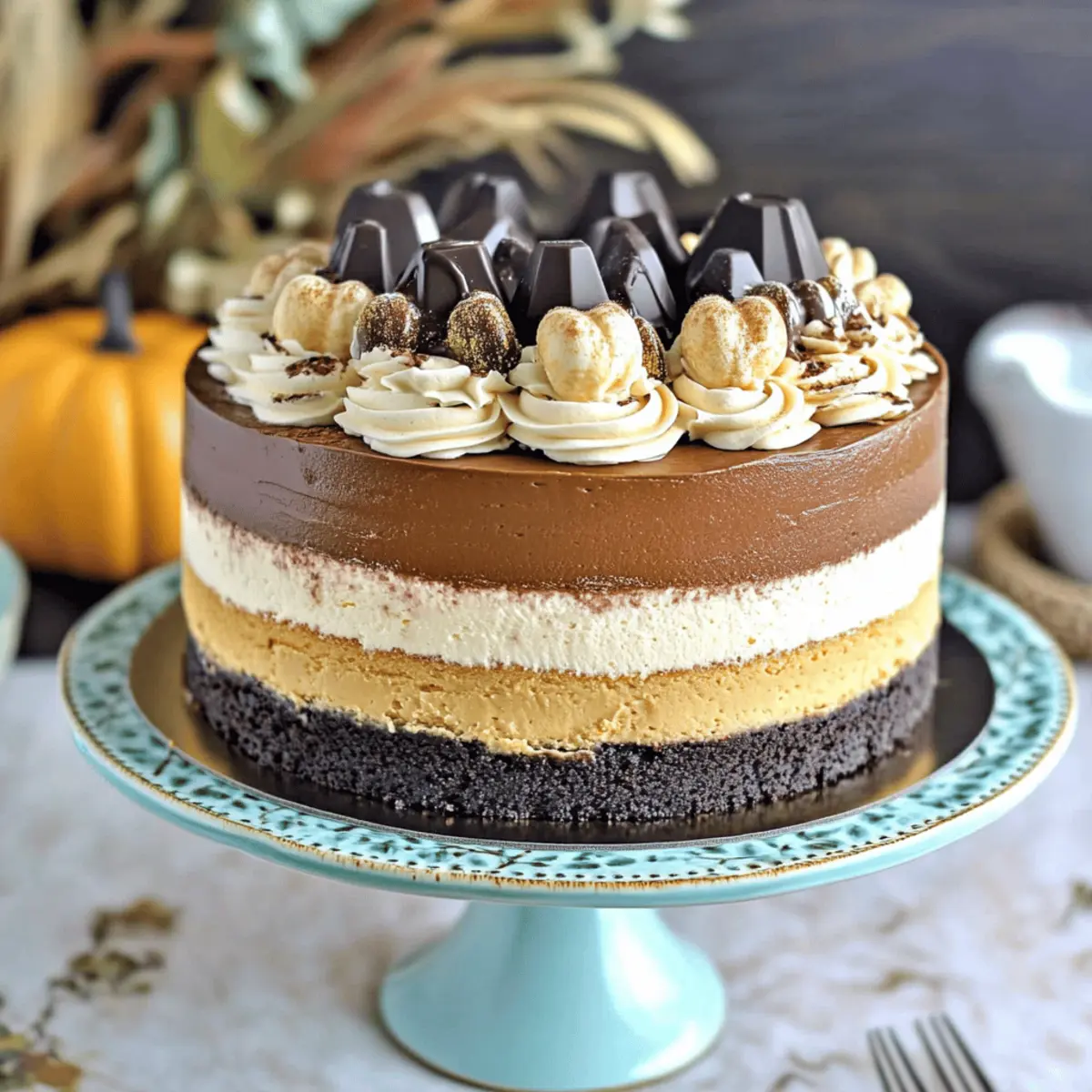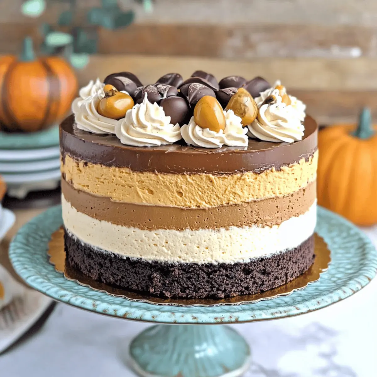 As the leaves begin to turn and the air grows crisp, there’s nothing quite like baking a sumptuous dessert that captures the essence of autumn. Enter the Pumpkin Chocolate Mousse Cake, a masterpiece that brings together the rich flavors of chocolate, pumpkin, and warm spices—perfect for cozy gatherings or a sweet indulgence at home. This delightful dessert boasts not one, but four luxurious layers that include cinnamon mousse, pumpkin-butterscotch mousse, and salted caramel mousse, elevating your baking game to new heights. Besides being visually stunning, this cake is surprisingly quick to prepare, making it an excellent choice for anyone looking to impress without spending hours in the kitchen. Curious to learn how to create this autumn-inspired treat that will leave everyone asking for seconds? Let’s dive into the recipe! Why is this cake a must-try? Autumn Vibes: This Pumpkin Chocolate Mousse Cake is a perfect ode to fall, with layers embodying the season’s best flavors. Versatile Flavors: With variations like cinnamon, butterscotch, and salted caramel, there’s a flavor for every palate, ensuring everyone loves it. Quick Preparation: Surprisingly simple and time-saving, you can wow your guests without spending all day in the kitchen. Crowd-Pleasing Appeal: The striking presentation and decadent taste make it ideal for gatherings, holidays, or cozy nights at home. Rich Textures: Every bite offers a delightful contrast of the moist chocolate cake against fluffy mousse layers, creating a true treat for the senses. Dive into the season with this cake, and make sure to also check out our Red White Cake for another stunning dessert option! Pumpkin Chocolate Mousse Cake Ingredients For the Chocolate Cake Unsalted Butter – Adds richness and moisture; use at room temperature for even mixing. Granulated Sugar – Provides sweetness and tenderness; substitute with coconut sugar for a deeper flavor. Brown Sugar – Contributes moisture and caramel notes; can replace with extra granulated sugar if necessary. Large Egg – Essential for structure and moisture; make sure it’s at room temperature for better emulsification. Vanilla Extract – Enhances flavor; homemade vanilla can elevate the taste. Buttermilk – Adds tenderness and a hint of tang; mix milk with 1 tablespoon lemon juice or 1 teaspoon vinegar as a substitute. All-Purpose Flour – Gives structure to the cake; choose a gluten-free blend for a gluten-free option. Unsweetened Cocoa Powder – The chocolate flavor base; use Dutch-processed cocoa for a smoother taste. Baking Soda – Acts as a leavening agent to help the cake rise. Salt – Balances sweetness and enhances flavor. For the Mousse Layers Cinnamon Chips – Key flavor in cinnamon mousse; substitute with white chocolate chips mixed with ground cinnamon. Heavy Cream – Provides richness for the mousse; switch with coconut cream for a dairy-free version. Canned Pumpkin Puree – Adds flavor and moisture; fresh pumpkin puree can work beautifully, too. Unflavored Powdered Gelatin – Sets the mousse; for a vegetarian option, replace with agar-agar. Ground Cinnamon – Adds warmth and spice; adjust the amount to your personal taste. Butterscotch Chips – Flavor base for the butterscotch mousse; white chocolate chips with butterscotch flavor can be used. Salted Caramel Chips or White Chocolate Chips – Needed for the salted caramel mousse; homemade caramel can be a delicious alternative. Thick Salted Caramel Sauce – Infuses a rich caramel flavor; homemade enhances the taste. Semi-Sweet Chocolate – For the ganache; opt for dark chocolate for a richer flavor. With these ingredients at hand, you’re well on your way to creating the irresistible Pumpkin Chocolate Mousse Cake! Don’t forget, the luscious layers will surely make this cake a showstopper at any gathering! Step‑by‑Step Instructions for Pumpkin Chocolate Mousse Cake Step 1: Prepare Chocolate Cake Preheat your oven to 350°F (175°C) and grease a 9-inch round cake pan. In a large mixing bowl, beat softened unsalted butter with granulated and brown sugars until the mixture is light and fluffy. Add the room-temperature egg and vanilla extract, mixing until well combined. Gradually incorporate the dry ingredients—flour, cocoa powder, baking soda, and salt—alternating with buttermilk. Pour the batter into the prepared pan and bake for 22-25 minutes, or until a toothpick inserted in the center comes out clean. Allow the cake to cool completely. Step 2: Prepare Cinnamon Mousse Layer While the cake is cooling, begin making the cinnamon mousse. Melt the cinnamon chips with heavy cream and a pinch of salt over low heat until smooth. Once melted, mix in the canned pumpkin puree and let it cool. Meanwhile, prepare the gelatin according to package instructions. Combine the cooled mixture with the gelatin once it’s dissolved, then gently fold in whipped cream until combined. Spread this luscious layer over the cooled chocolate cake. Step 3: Prepare Pumpkin-Butterscotch Mousse Layer Next, melt the butterscotch chips with part of the heavy cream in a saucepan over low heat, stirring until fully melted and smooth. Allow this mixture to cool before preparing the gelatin as per the package directions. When cooled, combine the butterscotch mixture with the gelatin, then gently fold in the remaining whipped cream. Layer this creamy goodness over the cinnamon mousse, carefully smoothing it out with a spatula. Step 4: Prepare Salted Caramel Mousse Layer To create the salted caramel mousse, heat salted caramel chips and heavy cream together in a saucepan over low heat until melted. Stir in a thick salted caramel sauce and allow this to cool slightly. Prepare the gelatin according to the package instructions. Once both the mixture and gelatin are ready, combine them, and fold in whipped cream to lighten the mousse. Pour the salted caramel mousse over the pumpkin-butterscotch layer, ensuring it spreads evenly. Step 5: 