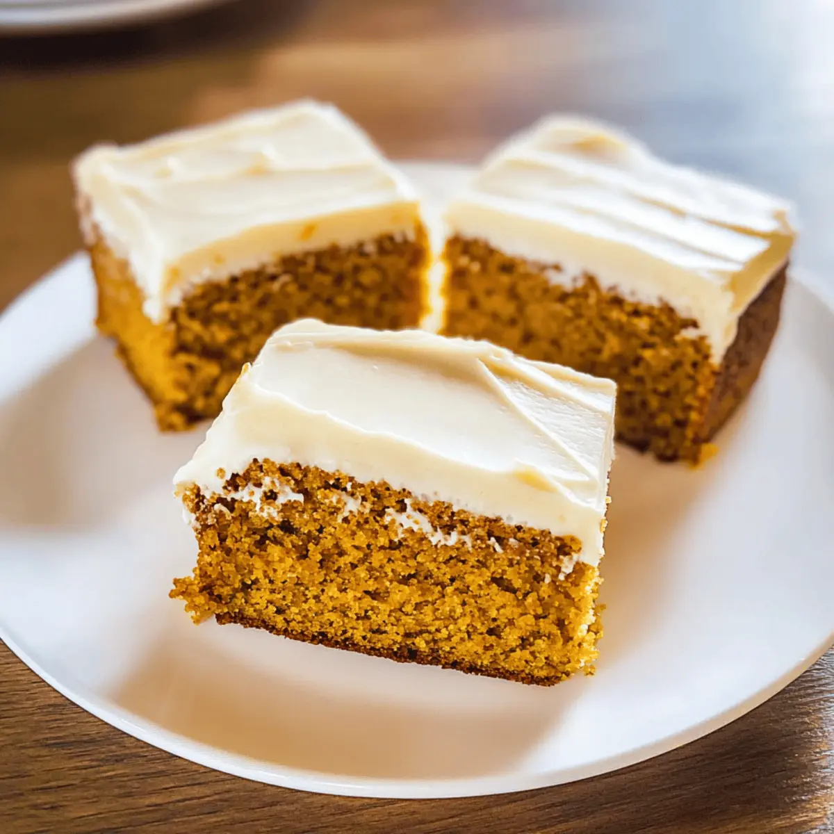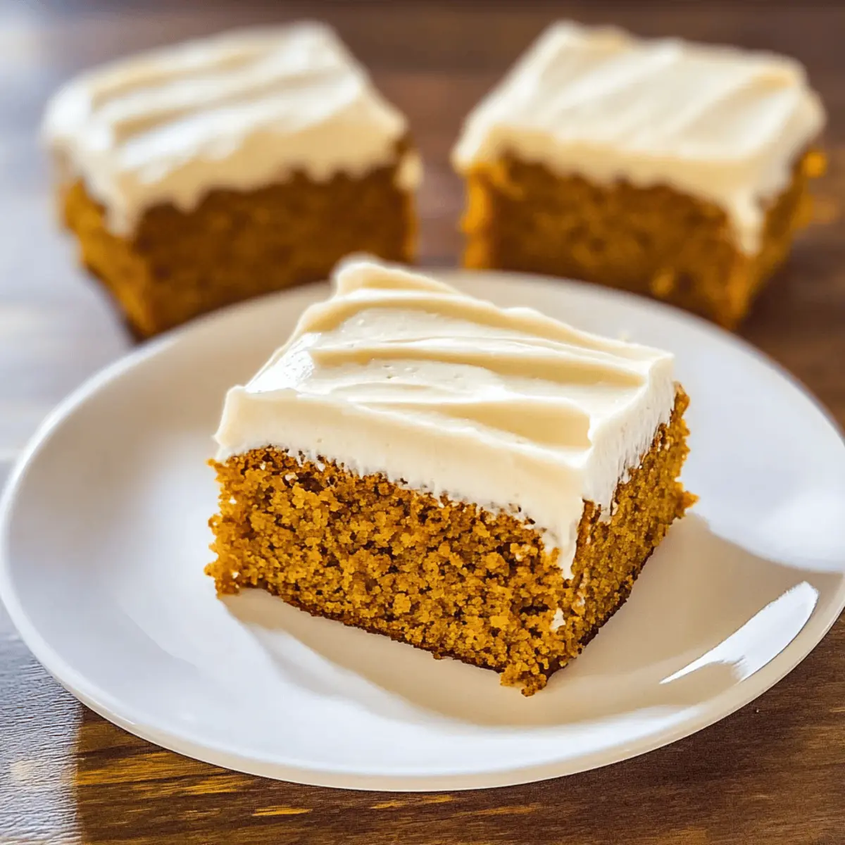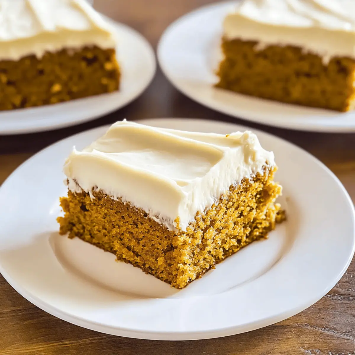 Enjoy a delightful Pumpkin Spice Cake with Cream Cheese Frosting, perfect for autumn gatherings or a comforting dessert.