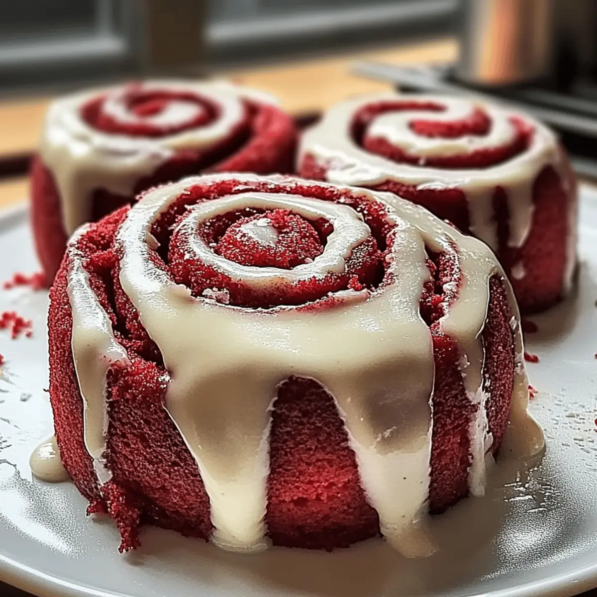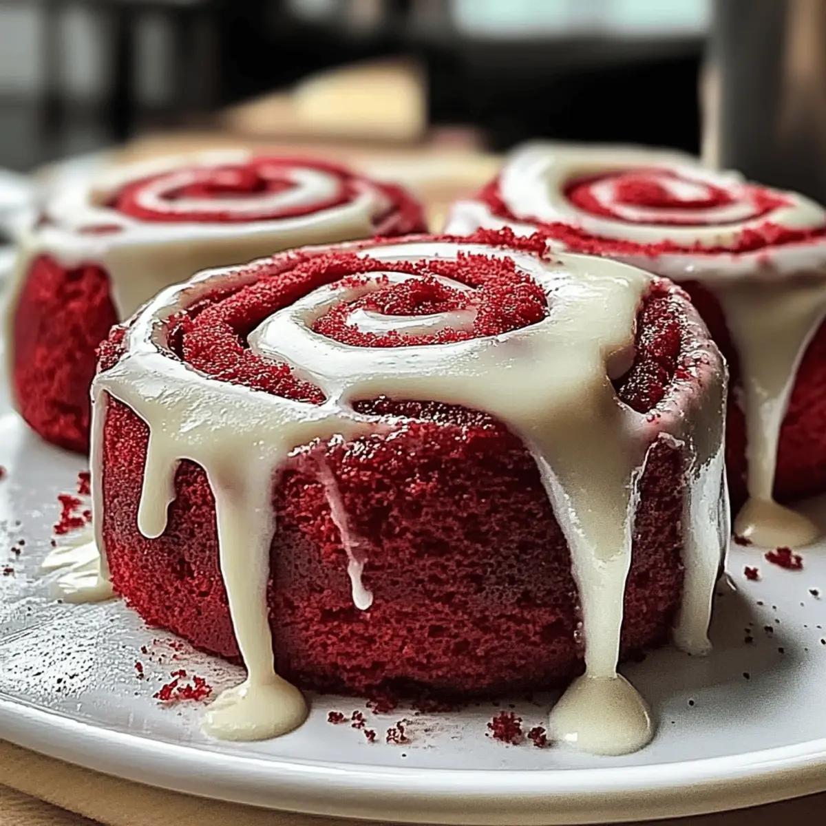 As the first whiff of freshly baked cinnamon rolls envelops my kitchen, I can’t help but feel an instant sense of joy. These Red Velvet Cinnamon Rolls are the perfect marriage of nostalgia and indulgence, combining the beloved soft, gooey texture of classic rolls with the vibrant charm of red velvet cake. Topped with a rich cream cheese frosting, this decadent dessert is not just a feast for the eyes but also a heartwarming treat for your taste buds. Whether you’re celebrating a special occasion or simply craving something sweet, these rolls are incredibly easy to prepare and sure to impress your guests. So, are you ready to roll up your sleeves and create your new favorite brunch delight? Why are Red Velvet Cinnamon Rolls Special? Decadent Flavor: Experience the rich taste that beautifully blends the sweet, buttery flavor of red velvet with the warm spices of cinnamon. Visual Appeal: Their vibrant red hue makes them eye-catching and festive, perfect for brunch gatherings or special occasions. Easy to Make: Despite being a showstopper, these rolls require simple ingredients and straightforward steps, making them accessible for home bakers of all levels. Perfect for Sharing: The batch is generous, ensuring you can enjoy them with family and friends, creating a memorable brunch experience. Irresistible Frosting: The tangy cream cheese frosting adds a delicious finish, elevating these rolls to another level of indulgence that will have everyone coming back for more. If you’re looking for more festive ideas, check out our Red Velvet Strawberry or the Red White Blue treats that are perfect for any celebration! Red Velvet Cinnamon Rolls Ingredients For the Dough • All-Purpose Flour – Provides structure; for a chewier texture, consider using bread flour. • Granulated Sugar – Adds sweetness; brown sugar can enhance moisture and depth. • Active Dry Yeast – Essential for leavening; be sure it’s fresh to avoid dough failures. • Salt – Enhances flavor and balances sweetness; don’t skip this step! • Whole Milk – Offers moisture and richness; feel free to substitute with almond milk for a dairy-free option. • Water – Helps hydrate the dough; warm liquids are crucial for activating yeast. • Unsalted Butter – Contributes flavor and tenderness; using salted butter will change the taste slightly. • Large Eggs – Adds richness and helps bind ingredients; using room temperature eggs integrates better. • Unsweetened Cocoa Powder – Provides chocolate flavor and color; adjust the quantity for a richer taste. • Red Food Coloring – Gives that striking hue; you can use beet juice for a natural alternative. • Vanilla Extract – Enhances flavor; opting for pure extract yields the best results. For the Cinnamon Filling • Brown Sugar – Acts as the sweet filler for the cinnamon mixture; white sugar can substitute if needed. • Ground Cinnamon – Delivers the signature flavor of the filling; no substitutes for that warm spice profile. For the Frosting • Cream Cheese – Forms the base of the frosting; mascarpone can be a delightful alternative. • Powdered Sugar – Provides sweetness and the right texture; choose brands low in cornstarch for smoother results. Embrace the joy of making these Red Velvet Cinnamon Rolls and let the warm, sweet scent fill your home! Step‑by‑Step Instructions for Decadent Red Velvet Cinnamon Rolls Step 1: Activate Yeast In a small bowl, combine ½ cup warm milk and ¼ cup warm water with 2 tablespoons granulated sugar. Stir to dissolve, then sprinkle 2 teaspoons active dry yeast on top. Allow the mixture to sit for 5-10 minutes until it becomes frothy. This step is crucial for ensuring your Red Velvet Cinnamon Rolls rise beautifully. Step 2: Prepare Dough In a large mixing bowl, whisk together 4 cups all-purpose flour, ½ cup sugar, 1 teaspoon salt, and ¼ cup unsweetened cocoa powder. Add the frothy yeast mixture, 2 large eggs, ¼ cup melted unsalted butter, 2 tablespoons red food coloring, and 1 teaspoon vanilla extract. Mix until combined, then knead the dough for about 5-7 minutes until smooth and elastic. Cover the bowl with a clean towel and let it rise in a warm place for about 1 hour or until doubled in size. Step 3: Make Filling While the dough is rising, prepare the filling for your Red Velvet Cinnamon Rolls. In a medium bowl, mix together ½ cup softened butter, ½ cup brown sugar, 1 tablespoon ground cinnamon, and a pinch of salt until smooth and well combined. Set this mixture aside; the aroma alone will make your mouth water! Step 4: Shape Rolls Once the dough has risen, punch it down to release air. On a floured surface, roll the dough into a 12×18 inch rectangle. Evenly spread the filling mixture over the surface, ensuring every inch is covered. Starting at one long edge, carefully roll the dough tightly into a log. Slice the log into 12 equal pieces and place them in a greased baking dish. Step 5: Second Rise Cover the sliced rolls with a clean towel or plastic wrap and allow them to rise for an additional 30 minutes in a warm place. This will help them puff up and plump, creating that delightful fluffy texture that everyone loves in Red Velvet Cinnamon Rolls. Step 6: Bake Preheat your oven to 350°F (175°C). Once the rolls have completed their second rise, bake them in the preheated oven for 20-25 minutes until they turn golden brown. Keep an eye on them during the last few minutes to avoid overbaking, as you want them soft and gooey inside. Step 7: Prepare Frosting While the rolls are baking, whip up the cream cheese frosting. In a medium bowl, beat together 8 ounces of softened cream cheese and ¼ cup of unsalted butter until smooth. Gradually add 2 cups of powdered sugar along with 1 teaspoon of vanilla extract and a pinch of salt. Mix until creamy and well blended. Step 8: Frost Rolls Once your Red Velvet Cinnamon Rolls are out of the oven, allow them to cool for about 5 minutes. Generously frost the wa