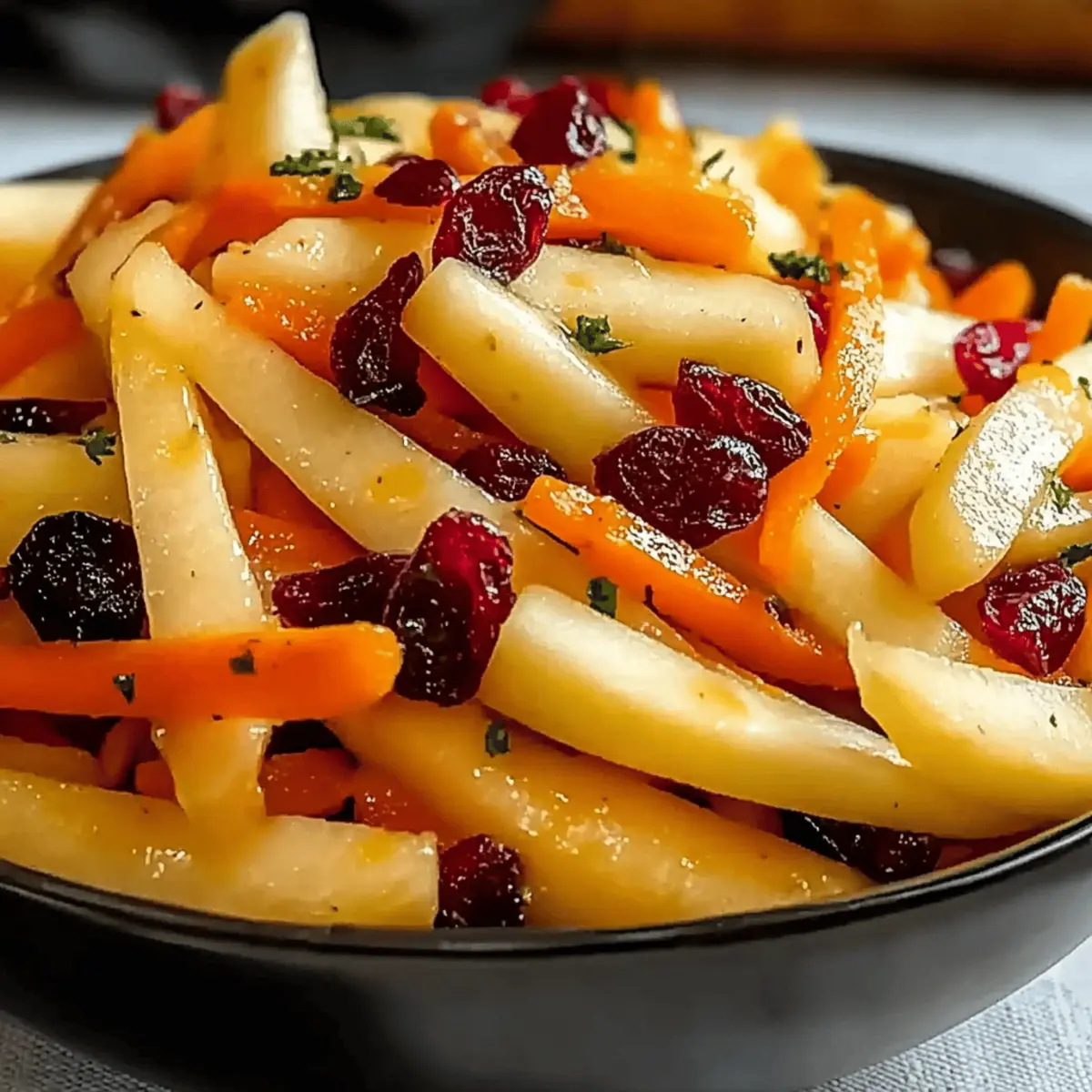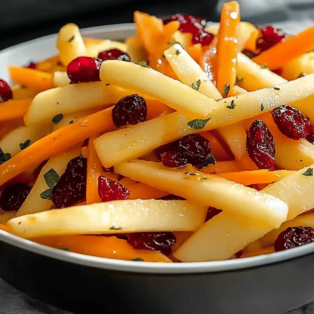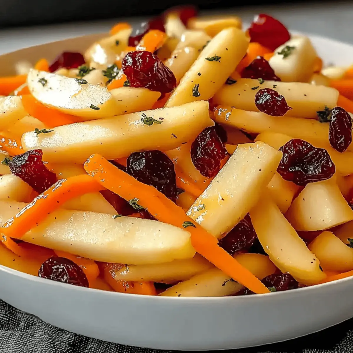 As I whisked together a bright, zesty dressing, a light bulb flickered. This was the moment my kitchen transformed into a vibrant oasis! The recipe for this Refreshing Apple Cranberry Carrot Salad combines crunchy apples, sweet cranberries, and freshly shredded carrots into an irresistible medley. Not only can it be whipped up in just 15 minutes, making it perfect for those busy weekdays, but it’s also a nutritious, vegan delight that you won’t feel guilty about enjoying anytime. Whether you’re looking for a fresh side dish at your next gathering or a light lunch to brighten your day, this salad is simply the way to go. Curious about which ingredients can be easily swapped for a unique twist? Let’s dive in! What makes this salad so versatile? Versatility at its finest: This Refreshing Apple Cranberry Carrot Salad easily adapts to your taste, allowing you to experiment with different fruits like pears or oranges. Quick preparation: Made in just 15 minutes, it’s perfect for those hectic days. Nutritious goodness: Packed with vitamins, it’s a guilt-free indulgence your body will thank you for. Crowd-pleasing: Great as a side dish or main meal, it appeals to everyone, from health enthusiasts to busy families. Easy storage: If you have leftovers, simply keep the dressing separate and enjoy it fresh for days! Looking to pair it with something? Consider serving this salad alongside a delicious Chicken Apple Sausage for a satisfying meal! Refreshing Apple Cranberry Carrot Salad Ingredients Unlock the flavors of a refreshing salad! For the Salad Apples – Use crisp, ripe apples for that sweet crunch and vibrant flavor. Carrots – Freshly shredded carrots add earthiness and an irresistible texture. Dried Cranberries – These chewy gems offer tartness; substitute with fresh cranberries for a bolder zing. Walnuts – They provide crunchy, healthy fats; feel free to swap with pecans or omit for nut-free alternatives. For the Dressing Fresh Lemon Juice – This adds bright acidity to balance the flavors; apple cider vinegar works well too. Salt and Pepper – Use sparingly to enhance the salad’s profile without overpowering it. Experience the delightful burst of flavors in this Refreshing Apple Cranberry Carrot Salad that’s not just nutritious, but also incredibly adaptable to your preferences! Step‑by‑Step Instructions for Refreshing Apple Cranberry Carrot Salad Step 1: Prepare the Ingredients Begin by washing and drying your apples thoroughly. Core them, then chop into bite-sized pieces, leaving the skin on for added texture and color. Next, peel your carrots and grate them until you have a generous amount of freshly shredded carrot. This will create the crunchy base of your Refreshing Apple Cranberry Carrot Salad. Step 2: Combine Dry Ingredients In a large mixing bowl, combine the shredded carrots, chopped apples, dried cranberries, and roughly chopped walnuts. Gently stir the mixture using a wooden spoon or spatula until all the ingredients are evenly distributed. This colorful medley creates the vibrant foundation for your salad, showcasing the bright hues of each component while enhancing the overall flavor profile. Step 3: Make the Dressing In a small bowl, whisk together the fresh lemon juice, salt, and pepper until well combined. If you’re opting for a touch of sweetness, feel free to add a drizzle of honey or maple syrup to the mix. This zesty dressing will bring all the elements of your Refreshing Apple Cranberry Carrot Salad together beautifully, balancing flavors perfectly. Step 4: Dress the Salad Pour the prepared dressing over the salad mixture in the larger bowl. Using your spatula or tongs, gently toss the salad until every piece is evenly coated with the dressing. The vibrant colors of the ingredients should glisten with the zesty flavor, enticing your senses and promising a delightful experience with each bite. Step 5: Chill Before Serving Cover the bowl with plastic wrap or transfer the salad to an airtight container, and refrigerate for about 10 to 15 minutes. This chilling period allows the flavors to meld together, enhancing the overall taste of your Refreshing Apple Cranberry Carrot Salad. It also helps the salad maintain a refreshing crispness when served. Step 6: Serve After chilling, remove the salad from the refrigerator and give it a gentle toss to ensure the dressing is well-mixed. Serve the salad in individual bowls or on a large platter, presenting this colorful dish as a refreshing side or a light meal. The combination of textures and flavors will surely make it a hit at any gathering or as a simple delight for yourself! Make Ahead Options These Refreshing Apple Cranberry Carrot Salads are perfect for meal prep enthusiasts! You can chop the apples and carrots, and mix the cranberries and walnuts up to 24 hours in advance, storing them separately in the refrigerator to maintain their crunch and flavor. For optimal results, keep the dressing in a sealed container until you’re ready to serve. When it’s time to enjoy the salad, simply combine everything in a bowl, toss well with the dressing, and voila! You’ll have a deliciously fresh meal on your table, saving you precious time on busy days. Enjoy this vibrant salad knowing it’s just as delightful even when prepared ahead! Expert Tips for Refreshing Apple Cranberry Carrot Salad Fresh Ingredients Matter: Use the freshest apples and carrots for the best texture and flavor. Avoid wilted produce to keep your salad lively. Perfect Proportions: Balance is key! Adjust the ratio of apples to carrots to suit your taste, but keep the sweetness and crunch as the star of this Refreshing Apple Cranberry Carrot Salad. Zesty Variation: Want a kick? Add a splash of apple cider vinegar to the dressing for an extra zing! It enhances the overall flavor and brightens your dish. Customize Your Crunch: Swap walnuts for sunflower seeds or omit nuts entirely to make a nut-free version. This way, everyone can enjo