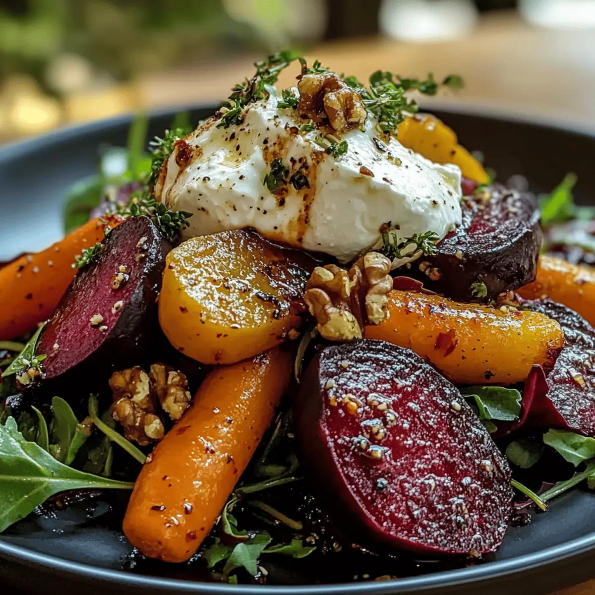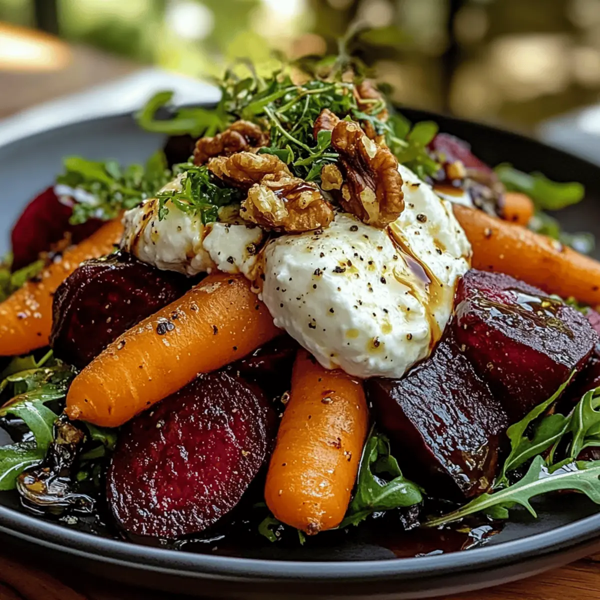 As I unwound from a long day, the aroma of roasting beets and carrots filled my kitchen, instantly transporting me to a cozy farmer’s market. This Roasted Beets and Carrots Salad with Burrata not only dazzles with its vibrant colors but also offers a nutritious boost that’s perfect for any occasion. It’s a versatile dish that can shine as a light main course or take a starring role as a side. The sweet, earthy flavors of the root veggies blend beautifully with the creamy burrata, creating a delightful contrast that will have everyone coming back for seconds. Plus, this salad is incredibly customizable—whether you’re vegetarian, vegan, or simply looking for a nutritious option, there’s a variation waiting just for you. Curious how to toss this culinary masterpiece together? Let’s dive into the recipe!