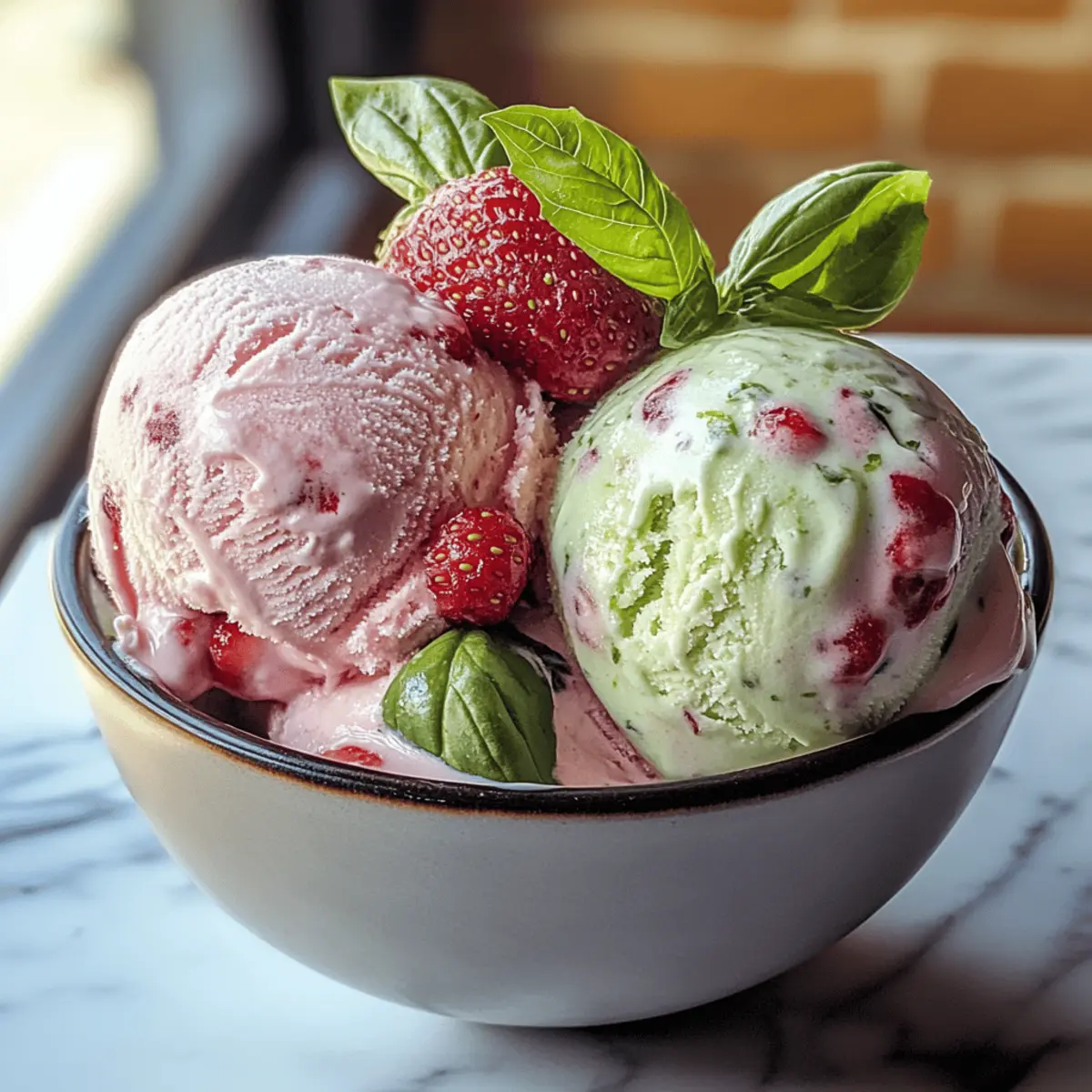 The warm aroma of roasted strawberries wafting through my kitchen transports me to summer picnics and sun-drenched days. Today, I’m excited to share my recipe for Roasted Strawberries & Lime Basil Ice Cream—a delightful dessert that merges the luscious sweetness of caramelized strawberries with the invigorating zest of fresh lime and aromatic basil. The best part? It’s a homemade ice cream that’s not just refreshing but also surprisingly easy to whip up, making it an instant crowd-pleaser for any gathering. Whether you’re treating yourself after a long day or impressing guests with a sophisticated twist, this ice cream captures the essence of indulgence without the fuss. Ready to elevate your dessert game? Let’s dive in and create a treat that will leave everyone asking for seconds! Why is this ice cream so special? Unique Flavor Combination: The delightful blend of roasted strawberries and lime basil creates an extraordinary taste experience that will surprise and satisfy your palate. Easy to Make: With simple steps, this recipe invites even novice chefs to create a gourmet dessert. It’s reminiscent of those homemade delights you’ll love! Sophisticated Appeal: Impress family and friends with a dessert that feels upscale but is surprisingly easy to prepare. Pair it with a slice of warm pie for a divine combo! Perfect for Any Occasion: Whether it’s a summer BBQ or a cozy night in, this ice cream fits seamlessly into any event, leaving everyone craving your culinary genius. To make your meal complete, consider serving alongside Garlic Roasted Chicken for an unforgettable dining experience! Crowd-Pleaser: The vibrant flavors and stunning presentation will have everyone asking for the recipe, making it a highlight of any gathering. Roasted Strawberries & Lime Basil Ice Cream Ingredients For the Strawberries • Strawberries – Use ripe, fresh strawberries for the best flavor and natural sweetness. • Granulated Sugar – Enhances sweetness and helps caramelize the strawberries; brown sugar can add depth. • Lime Zest – Brings zesty brightness to the strawberries, so opt for fresh lime for maximum flavor. For the Ice Cream Base • Heavy Cream – Provides a rich and creamy texture; substitute with coconut cream for a dairy-free option. • Milk – Balances creaminess; almond or oat milk can be used to keep it dairy-free. • Egg Yolks – Create a custard base, adding richness; consider a vegan egg replacer for alternatives. • Fresh Basil – Infuses a unique herbal flavor; try mint for a refreshing twist! • Lime Juice – Enhances flavor, perfectly complementing the sweetness of the strawberries; fresh-squeezed is best. • Vanilla Extract – Adds warmth and depth; opt for pure vanilla for the best taste. Step‑by‑Step Instructions for Roasted Strawberries & Lime Basil Ice Cream Step 1: Preheat Oven Set your oven to 375°F (190°C) to prepare for roasting the strawberries. Allow it to fully preheat while you move on to the next step. This temperature ensures that the strawberries will caramelize beautifully, enhancing their natural sweetness. Step 2: Prepare Strawberries Arrange the ripe strawberries on a parchment-lined baking sheet, ensuring they’re evenly spread out. Sprinkle granulated sugar and lime zest over them, giving each berry a generous coat for that added sweetness and zest. Roast them for about 20 minutes, stirring halfway through, until they’re soft and caramelized. Step 3: Make Puree Once the roasted strawberries have cooled, transfer them to a mixing bowl. Use a fork or a blender to puree or mash the strawberries to your desired consistency. This puree will be blended into the ice cream, providing bursts of sweet fruit flavor while enhancing the entire experience of the Roasted Strawberries & Lime Basil Ice Cream. Step 4: Warm Cream Mixture In a medium saucepan, combine heavy cream, milk, and half of the sugar over medium heat. Stir occasionally until the mixture is warm but not boiling, allowing the sugar to dissolve completely. This step creates a rich base for your ice cream that will integrate beautifully with the other flavors. Step 5: Temper Egg Yolks In a separate bowl, whisk the egg yolks with the remaining sugar until smooth and slightly pale in color. Gradually pour the warm cream mixture into the yolks, whisking constantly to prevent curdling. This tempering step is crucial for achieving a creamy base for your Roasted Strawberries & Lime Basil Ice Cream. Step 6: Cook Custard Return the yolk and cream mixture back to the saucepan over low heat. Stir continuously until the custard thickens enough to coat the back of a spoon, which should take around 5–7 minutes. Be careful not to let it boil, as this could cause the yolks to scramble instead of create a smooth custard. Step 7: Add Basil Once your custard is thickened, stir in the chopped fresh basil, letting it steep for about 15 minutes. This infusion will release the herbal notes, enhancing the flavor profile of your ice cream. After steeping, strain the mixture to remove the basil solids for a creamy, clean finish. Step 8: Combine In a large mixing bowl, mix together the cooled roasted strawberry puree, lime juice, lime zest, and vanilla extract with the strained custard. Stir well to ensure everything is combined. This blend captures the essence of the Roasted Strawberries & Lime Basil Ice Cream, adding layers of flavor that will tantalize your taste buds. Step 9: Chill Mixture Cover the bowl with plastic wrap, pressing it directly onto the surface of the mixture to prevent skin from forming. Chill the combined mixture in the refrigerator for at least 4 hours, or until it’s thoroughly chilled. This step is key to achieving a smooth and creamy texture when you churn the ice cream. Step 10: Churn Ice Cream Once the mixture is chilled, pour it into your ice cream maker and churn according to the manufacturer’s instructions. This usually takes about 20–30 minutes, until i