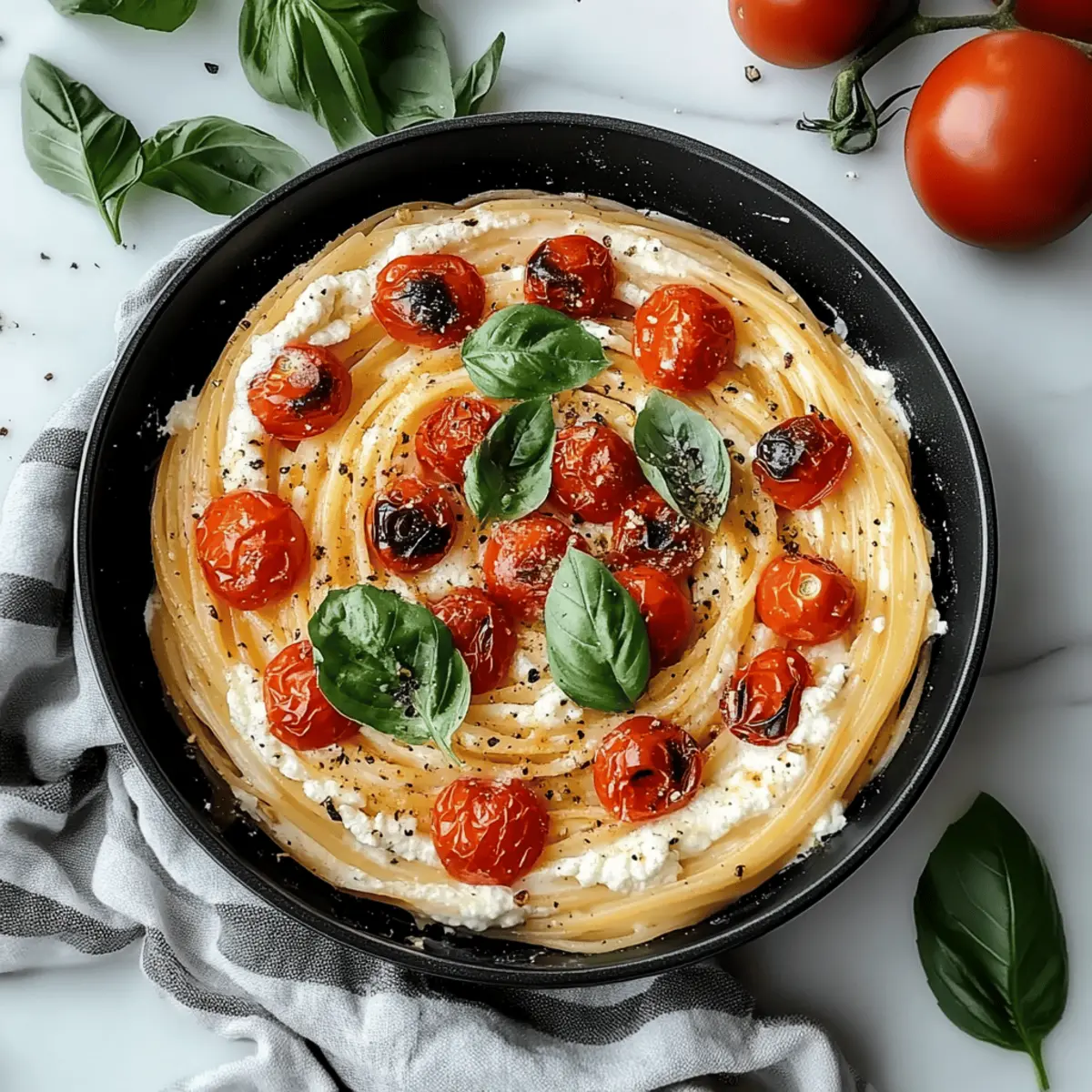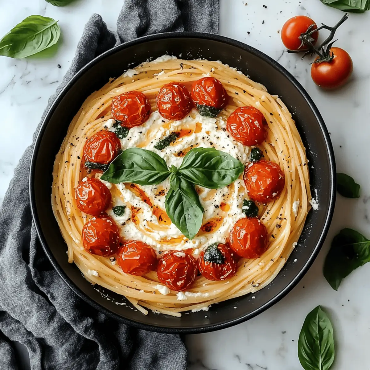 There’s something magical about the aroma of roasted garlic mingling with sweet, caramelized cherry tomatoes. It instantly transports me to sun-drenched Italian kitchens, where comfort food reigns supreme. This Roasted Tomato and Garlic Ricotta Pasta is everything you’ll want on a busy weeknight or a special gathering with friends. With an effortless preparation, it guarantees a satisfying, creamy experience; the ricotta envelops each twist of pasta, while the roasted tomatoes bring a burst of sweetness that ignites your taste buds. Plus, it’s vegetarian and incredibly versatile! Whether you’re looking to dazzle your dinner guests or simply escape the fast-food routine, this dish provides both comfort and an indulgent taste without the fuss. Ready to dive into this cozy bowl of goodness? Let’s get started! Why is this pasta a must-try? Simplicity: This Roasted Tomato and Garlic Ricotta Pasta is incredibly easy to whip up, making it perfect for busy weeknights. Rich Flavors: The caramelized tomatoes paired with creamy ricotta create a delightful burst of taste in every mouthful. Vegetarian Delight: This dish is meat-free but still satisfying, making it suitable for all diets. Versatility: Feel free to customize with different pastas or proteins, like grilled chicken or sautéed shrimp, for a heartier meal. Whether you’re a seasoned chef or a home cook seeking comfort, this recipe promises a cozy experience every time! Pair it with Cheesy Garlic Bread for an unforgettable dining experience. Roasted Tomato and Garlic Ricotta Pasta Ingredients For the Pasta Cherry Tomatoes – Adds natural sweetness and depth when roasted. Can substitute with other ripe tomatoes. Olive Oil – Enhances richness and facilitates roasting. Any neutral oil can work, but olive oil adds flavor. Garlic – Infuses the pasta with a mellow, sweet aroma upon roasting. If unavailable, use garlic powder; adjust quantity to taste. Dried Oregano – Provides an aromatic herbal note. Substitute with Italian seasoning or fresh oregano if desired. Salt – Enhances the overall flavor. Adjust according to personal preference or dietary needs. Black Pepper – Adds warmth and slight heat. Freshly ground offers a better flavor profile than pre-ground. Pasta – Serves as the base to hold the sauce. Spaghetti, penne, or fusilli work well; adjust cooking times as per package instructions. For the Sauce Ricotta Cheese – Creates a creamy, indulgent sauce. Alternatives include mascarpone, cream cheese, or a blend of cottage cheese and cream cheese. Grated Parmesan Cheese – Offers a savory, nutty finish. Can be substituted with nutritional yeast for a vegan option. Fresh Basil Leaves – Provides freshness and aroma. Use any available herbs like parsley or thyme as substitutions. Lemon Juice – Brightens flavors and balances richness. Vinegar (like red wine or apple cider) can be used in place of lemon juice. Step‑by‑Step Instructions for Roasted Tomato and Garlic Ricotta Pasta Step 1: Preheat the Oven Begin by preheating your oven to 400°F (200°C). This temperature will allow the tomatoes to roast beautifully, developing a rich, caramelized flavor. While the oven heats up, gather your ingredients and prepare your baking sheet for the cherry tomatoes. Step 2: Prepare the Tomatoes Halve the cherry tomatoes and arrange them cut-side up on the prepared baking sheet. This will maximize their surface area for roasting. Ensure they are evenly spaced to allow hot air circulation around them while roasting, leading to better caramelization. Step 3: Season the Tomatoes Drizzle the halved tomatoes generously with olive oil, then sprinkle minced garlic, dried oregano, salt, and black pepper over them. Use a spoon to gently mix everything together, ensuring each tomato is well-coated with oil and seasonings for maximum flavor infusion during roasting. Step 4: Roast the Tomatoes Place the seasoned tomatoes in the preheated oven and roast for 20-25 minutes. You’ll know they are done when they soften and start to blister, releasing their sweet juices. The garlic should also become fragrant and slightly golden, complementing the sweetness of the tomatoes. Step 5: Cook the Pasta Meanwhile, bring a large pot of salted water to a boil. Add your pasta of choice—spaghetti, penne, or fusilli are all excellent options. Cook according to package instructions, usually about 9-11 minutes, until al dente, ensuring it retains a slight bite that pairs well with the creamy sauce. Step 6: Prepare the Ricotta Sauce In a mixing bowl, combine the ricotta cheese, grated Parmesan, freshly chopped basil, and a splash of lemon juice. Stir well until the mixture is creamy and smooth. This delightful blend will create a rich, velvety sauce that perfectly complements the roasted tomato flavors in your Roasted Tomato and Garlic Ricotta Pasta. Step 7: Combine Pasta and Tomatoes Once the pasta is cooked, reserve ½ cup of the pasta water to adjust the sauce later, then drain the pasta and keep it warm in the pot. Now, gently smash the roasted tomatoes with a spoon to release their juices, and add them along with any collected juices from the baking sheet to the pot with the warm pasta. Step 8: Mix in the Ricotta Sauce Next, add the creamy ricotta mixture to the pasta and tomatoes, using tongs or a large spoon to toss everything together until the pasta is evenly coated. This mixture should envelop each twist of the pasta beautifully, creating a comforting and creamy dish. Step 9: Adjust Sauce Consistency Gradually incorporate the reserved pasta water into the mixture until you reach your desired sauce consistency. Toss well and taste, adjusting seasoning with extra salt or pepper if needed. This final touch will ensure your Roasted Tomato and Garlic Ricotta Pasta is bursting with flavor. Step 10: Serve and Garnish Plate your Roasted Tomato and Garlic Ricotta Pasta immediately while it’s warm, garnishing with additional fresh basil or Parmesan chees