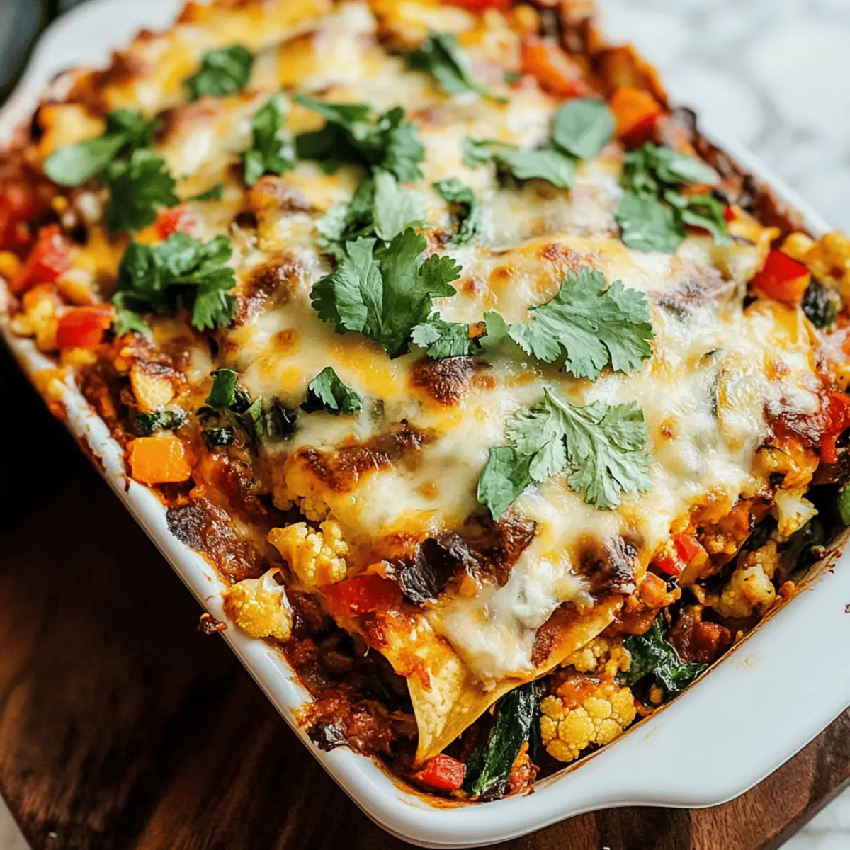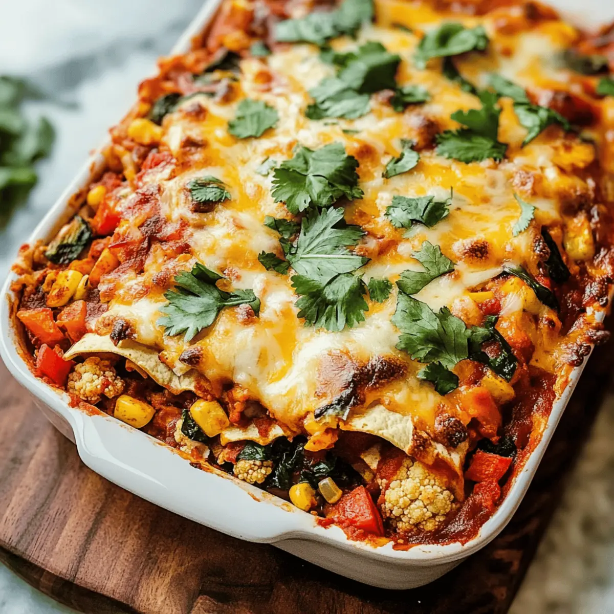 As I stood in front of my oven, a wonderful aroma wafted in the air, reminding me of my favorite cozy evenings filled with comfort food. Today, I’m excited to share my Roasted Veggie Enchilada Casserole—an easy casserole that embraces all the warmth and flavor of home cooking. This vibrant dish is not only a feast for the senses with its tender roasted vegetables and gooey melted cheese, but it also supports various dietary needs with its vegetarian, vegan, and gluten-free options. Whether you’re preparing a quick weeknight meal or looking for a crowd-pleaser to impress your friends, this casserole is both nutritious and customizable. Curiously, what toppings will you use to make it your own? What toppings will you choose? Customization is at the heart of this Roasted Veggie Enchilada Casserole. You can easily adapt it to suit various dietary preferences, whether it’s vegetarian, vegan, or gluten-free. Flavor-packed layers of roasted vegetables and cheese meld together beautifully, creating a comforting meal that’s perfect for any occasion. Effortless preparation allows you to whip this up quickly, making weeknight dinners a breeze. Seasonal flexibility means you can swap in fresh veggies, like zucchini or corn, based on what’s available. Finally, it’s a terrific crowd-pleaser, sure to impress family and friends alike, echoing the spirit of dishes like Southern Squash Casserole or Garlic Roasted Chicken, all while keeping the focus on your health and enjoyment. Roasted Veggie Enchilada Casserole Toppings Get ready to elevate your cozy meal with these delightful toppings! For a Fresh Finish Chopped Fresh Cilantro – Adds a burst of brightness to balance the richness of the casserole. Sour Cream – A creamy addition that complements the spices beautifully; consider a vegan alternative if preferred. Avocado Slices – Provides a creamy texture and richness that pairs perfectly with your Roasted Veggie Enchilada Casserole. For Extra Crunch Crushed Tortilla Chips – Sprinkle on top just before serving for a satisfying crunch that contrasts the soft layers. Pine Nuts or Toasted Pumpkin Seeds – Adds a nutty flavor and crunchy texture; a healthy option to incorporate added nutrients. For Spice Lovers Jalapeño Slices – Fresh or pickled, this will deliver a delightful kick for those who prefer a bit of heat. Hot Sauce – Drizzle your favorite hot sauce over the top for an extra layer of flavor to awaken the taste buds. For a Cheesy Indulgence Shredded Cheese – Sprinkle additional Monterey Jack or a sprinkle of sharp cheddar just before the casserole finishes baking for an irresistible cheesy crust. Vegan Cheese – A great option for those looking to keep it plant-based while still enjoying that gooey texture. Feel free to mix and match these toppings to create a personalized experience with your Roasted Veggie Enchilada Casserole! Step‑by‑Step Instructions for Roasted Veggie Enchilada Casserole Step 1: Roasting the Veggies Begin by preheating your oven to 400°F (200°C). Line two baking sheets with parchment paper for easy cleanup. In a large bowl, toss the cauliflower and sweet potatoes with olive oil, ground cumin, salt, and pepper on one sheet. On the second sheet, combine the red bell peppers and onions with the same seasoning. Spread vegetables into a single layer and roast for 30–35 minutes, or until tender and golden. Step 2: Prepare for Assembly Once the veggies are roasted, reduce the oven temperature to 350°F (175°C). Grab a 9-inch square baking dish and lightly grease it with olive oil to prevent sticking. In a separate bowl, mix freshly chopped cilantro into your red salsa. This will not only enhance the flavor but also provide a fresh pop to your Roasted Veggie Enchilada Casserole. Step 3: Layering Spread ½ cup of the prepared salsa evenly across the bottom of the greased baking dish. Start layering with corn tortillas, then add half of the black beans, a third of the roasted vegetables, half of the spinach, and a third of the cheese. Repeat this process, creating another layer of tortillas, the remaining beans, veggies, spinach, and cheese, ensuring each bite is packed with flavor. Step 4: Baking Cover your casserole dish loosely with aluminum foil to allow steam to escape while baking. Place it in the preheated oven and bake for 20 minutes. After that, remove the foil and bake uncovered for an additional 10 minutes. Look for the cheese on top to become bubbly and golden, and the edges should be slightly crisp and inviting. Step 5: Cooling After baking, take your Roasted Veggie Enchilada Casserole out of the oven and let it cool for about 10 minutes. This cooling period will help the layers set and make it easier to serve. As the casserole rests, the delightful aroma fills your kitchen, promising a cozy meal ahead. How to Store and Freeze Roasted Veggie Enchilada Casserole Fridge: Store leftovers in an airtight container for up to 3 days. Make sure to let the casserole cool completely before sealing to prevent moisture buildup. Freezer: If you want to enjoy the Roasted Veggie Enchilada Casserole later, freeze it for up to 3 months. Wrap tightly in plastic wrap followed by aluminum foil to avoid freezer burn. Reheating: To reheat, thaw overnight in the refrigerator. Warm it in the oven at 350°F (175°C) for about 20-25 minutes, or until heated through. Cover with foil to keep it moist. Make-Ahead: Prep the casserole in advance by roasting veggies and mixing the salsa. Store them separately in airtight containers in the fridge for up to 3 days before assembling and baking. Expert Tips for Roasted Veggie Enchilada Casserole Veggie Roasting: Ensure vegetables are spread in a single layer on the baking sheets; this promotes even roasting and enhances sweetness. Assembly Order: Layering ingredients properly is key; start with salsa to prevent tortillas from sticking and ensure a moist casserole. Cooling Time: Allow the casserole to cool for about 10 min