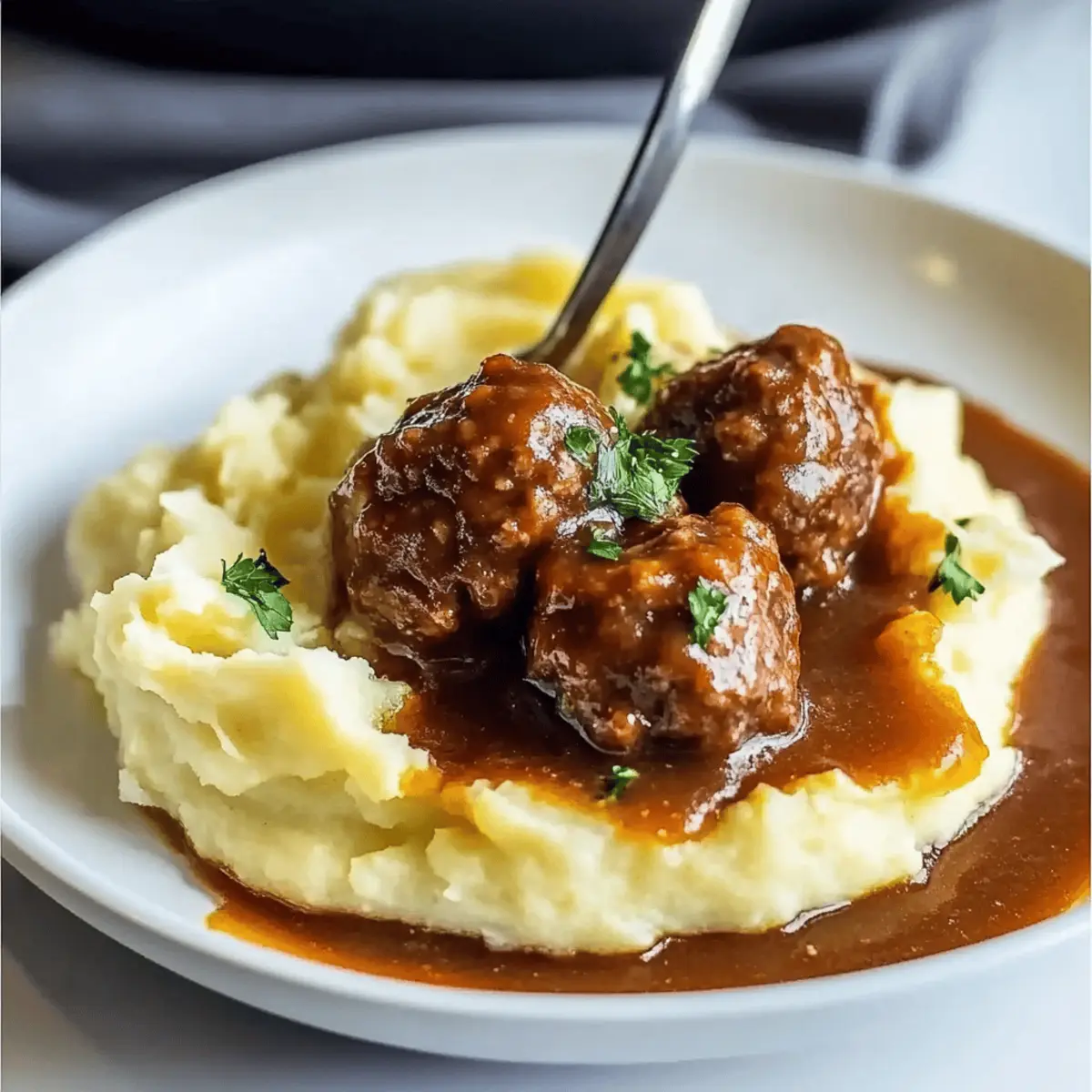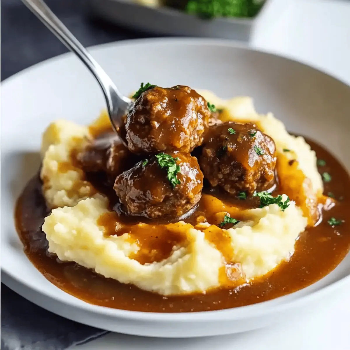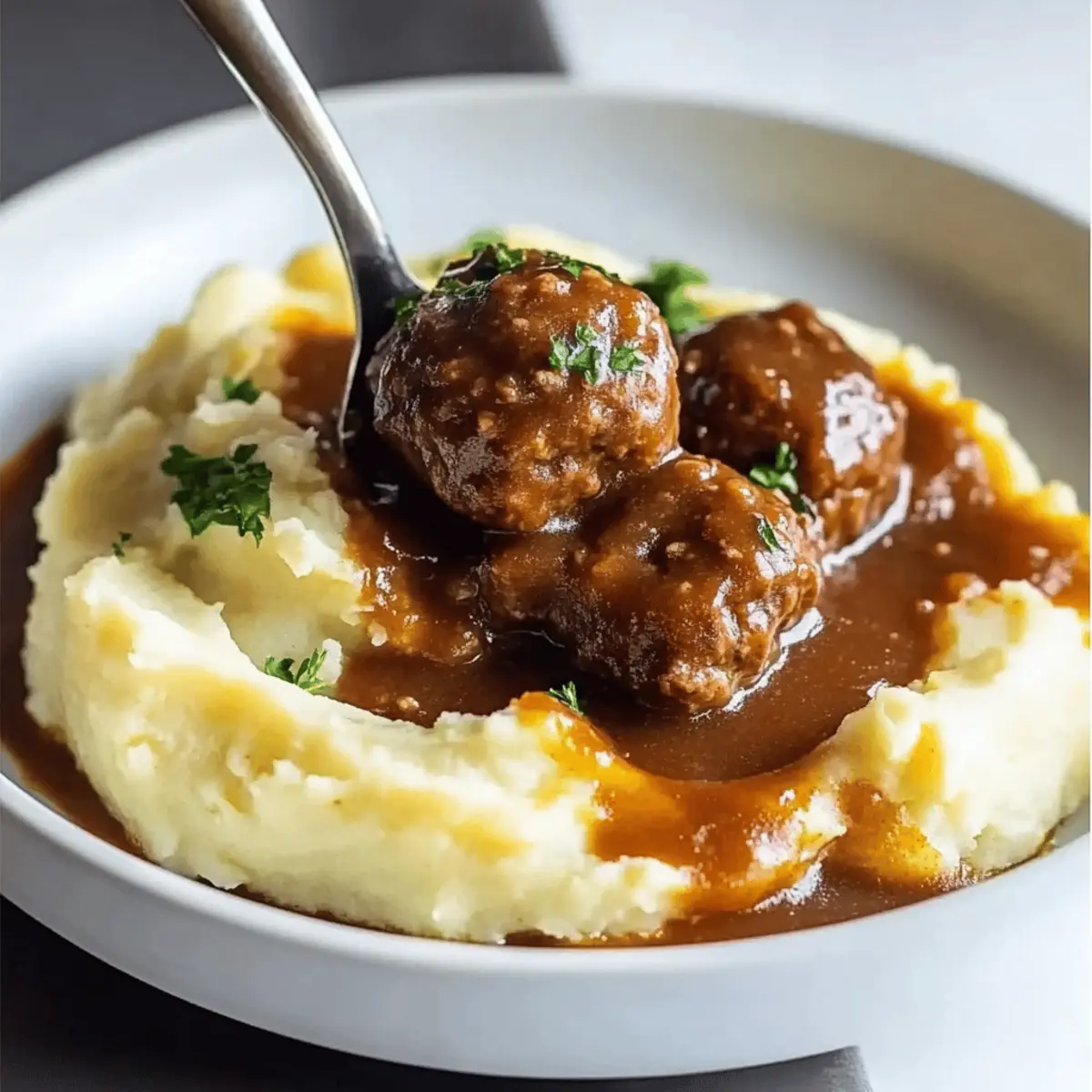 Enjoy delicious Salisbury Meatballs and Creamy Mashed Potatoes, the perfect cozy comfort food for family dinners.