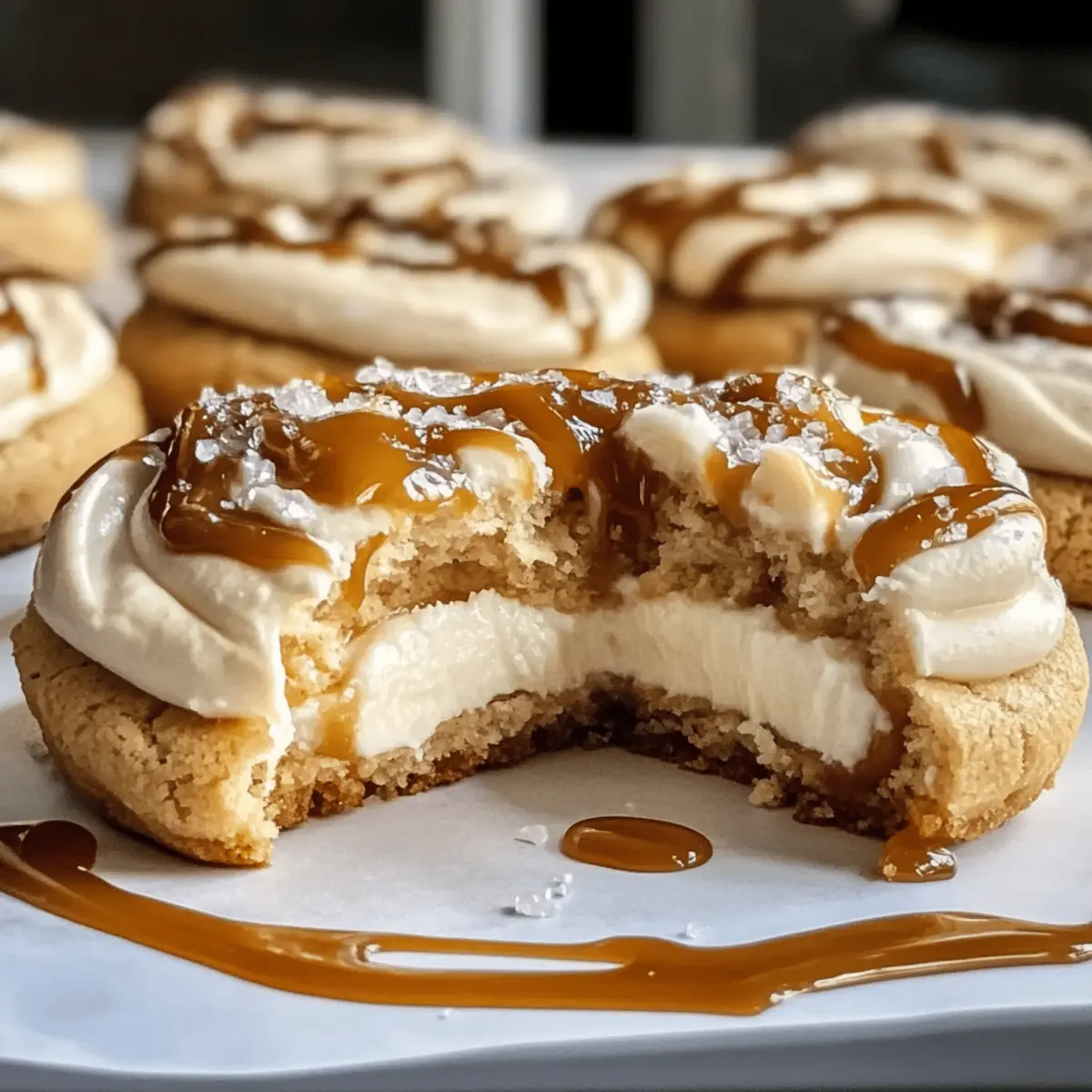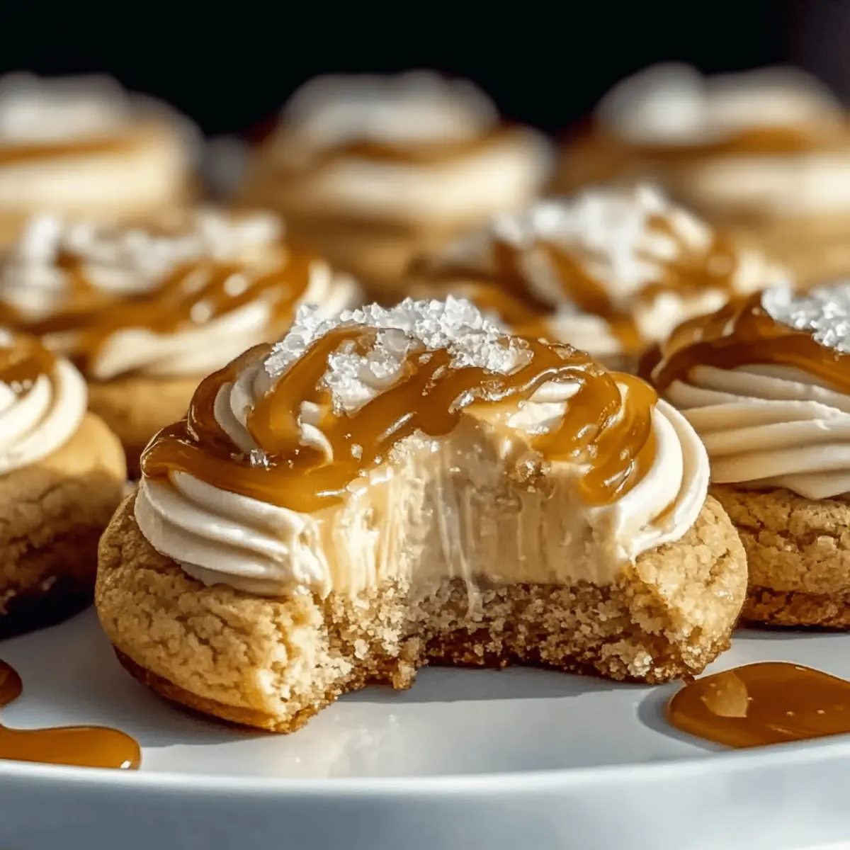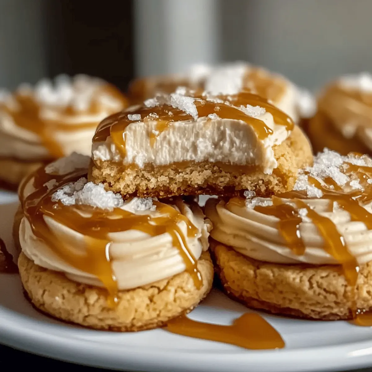“Just five minutes into baking, the warm scent of caramel and cream cheese fills the air, and my heart races with anticipation.” That’s the magic of making Salted Caramel Cheesecake Cookies—a recipe that effortlessly blends indulgence and nostalgia. These cookies are soft and chewy, with a luscious cheesecake center that surprises every bite. Topped with gooey salted caramel, they strike the perfect balance between sweet and savory, making them a standout at any gathering or an indulgent treat for yourself after a long day. Plus, they’re surprisingly easy to whip up, proving that luxurious desserts don’t have to be complicated. Whether you’re baking for a crowd or just wanting to satisfy a late-night craving, these cookies are sure to impress. Ready to dive into this delicious adventure? Let’s get started! Why Are These Cookies a Must-Try? Simplicity at its finest, Salted Caramel Cheesecake Cookies require only minimal prep and baking skills, making them perfect for bakers of all levels. Decadent layers of flavor combine creamy cheesecake and a sweet, salty drizzle that creates a dessert experience you won’t forget. Versatile options abound! You can easily swap out the caramel for a chocolate drizzle for a different twist or make them gluten-free with the right flour. Crowd-pleasing goodness, these cookies will be the stars of any gathering, and your guests will keep coming back for more. If you love more sweet delights, check out our delightful Bake Oreo Cheesecake or consider trying some Fried Strawberry Cheesecake as well! Salted Caramel Cheesecake Cookies Ingredients For the Cookie Base All-purpose flour – Provides structure for the cookies; substitute with gluten-free all-purpose flour for a gluten-free version. Baking powder – Helps the cookies rise, creating a chewy texture. Butter – Adds richness and flavor; use unsalted for more control over sweetness. Granulated sugar – Sweetens the cookie base, giving it a delightful sweetness. Brown sugar – Deepens flavor and moisture in cookies. Egg – Binds the ingredients together, contributing to the cookie’s texture. For the Cheesecake Filling Cream cheese – Provides the creamy, tangy cheesecake filling; ensure it’s at room temperature for easier mixing. Vanilla extract – Enhances the overall flavor profile. For the Topping Salt – Balances sweetness, enhancing flavor; reduce if using salted caramel. Caramel sauce – Adds gooey sweetness; use store-bought or homemade for best results. These Salted Caramel Cheesecake Cookies are not just a treat; they are a delightful adventure for your taste buds! Enjoy baking! Step‑by‑Step Instructions for Salted Caramel Cheesecake Cookies Step 1: Prepare the Dough In a large mixing bowl, cream together ½ cup of softened unsalted butter and ½ cup each of granulated and brown sugar until the mixture is light and fluffy, about 3 minutes. Add one large egg and 1 teaspoon of vanilla extract, mixing until everything is well combined. This will create a sweet and creamy base for your Salted Caramel Cheesecake Cookies. Step 2: Mix the Dry Ingredients In a separate bowl, whisk together 1½ cups of all-purpose flour, 1 teaspoon of baking powder, and a pinch of salt. Gradually fold the dry ingredients into the wet mixture, mixing until just combined and the dough starts to come together. This step is crucial as it helps ensure your cookies will rise beautifully in the oven. Step 3: Add Cream Cheese Take 4 ounces of softened cream cheese and gently fold it into the cookie dough until fully incorporated. The dough will become thick and rich, which is key to achieving that luscious cream cheese center in your Salted Caramel Cheesecake Cookies. Make sure not to overmix, as you want to keep the texture light. Step 4: Chill the Dough If your dough feels sticky, cover the bowl with plastic wrap and refrigerate for about 30 minutes. Chilling the dough firmens it up, making it easier to scoop and shape. A colder dough creates cookies with a lovely chewy texture that won’t flatten excessively while baking. Step 5: Scoop and Bake Preheat your oven to 350°F (175°C). Using a cookie scoop, portion the chilled dough onto a lined baking sheet, leaving enough space between each scoop for spreading. Bake for 12-14 minutes, or until the edges are golden brown and the centers appear slightly soft. Your kitchen will soon be filled with the warm, enticing aroma of baking cookies. Step 6: Cool Completely Once baked, remove the cookies from the oven and let them cool on the baking sheet for about 10 minutes. This initial cooling allows them to set up before transferring them to a wire rack. Allow the cookies to cool completely; this step is essential to achieving the perfect consistency for adding toppings. Step 7: Add the Caramel Finally, drizzle your cooled cookies with warmed caramel sauce, ensuring each cookie has a generous amount of gooey sweetness that complements the cheesecake filling. The warm caramel adds a delightful finish to your Salted Caramel Cheesecake Cookies, elevating them to a decadent dessert that everyone will adore. Expert Tips for Salted Caramel Cheesecake Cookies Room Temperature Ingredients: Ensure all ingredients, especially cream cheese and eggs, are at room temperature. This helps create a smooth dough and prevents lumps in the cheesecake filling. Chill Sticky Dough: If your dough feels sticky after mixing, chilling it for 30 minutes makes it easier to scoop and prevents flat cookies while baking. Baking Time Awareness: Keep an eye on the baking time. These cookies should have golden edges with a soft center—do not overbake to retain that chewy texture. Cool Before Topping: Allow cookies to cool completely before adding caramel sauce to prevent it from running off and creating a mess. Experiment with Flavor: For a fun twist, consider adding chocolate chunks or crushed pretzels on top of the caramel for added flavor and texture in your Salted Caramel Cheesec
