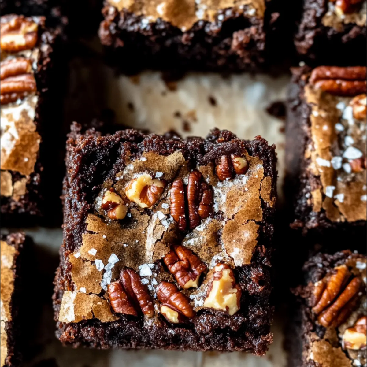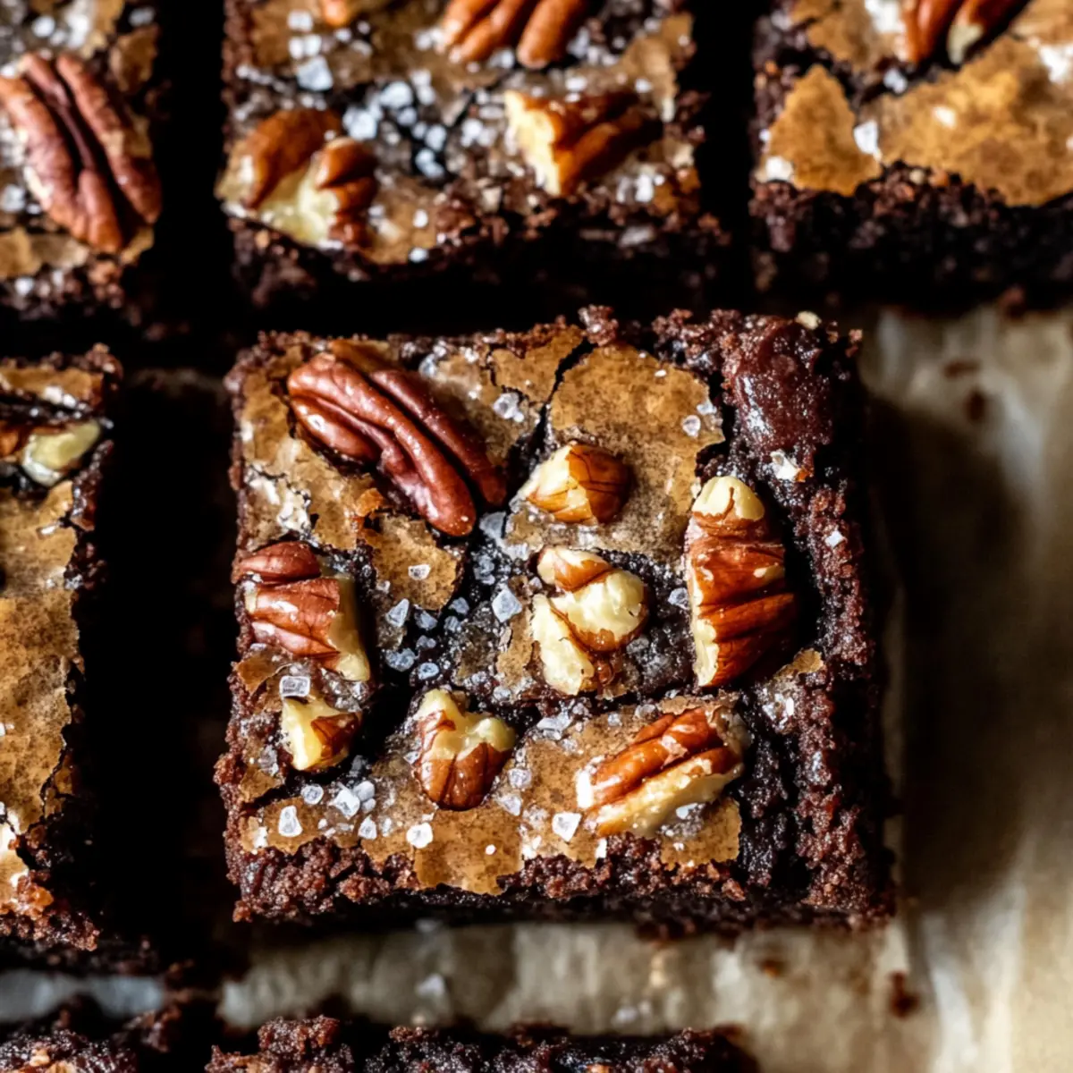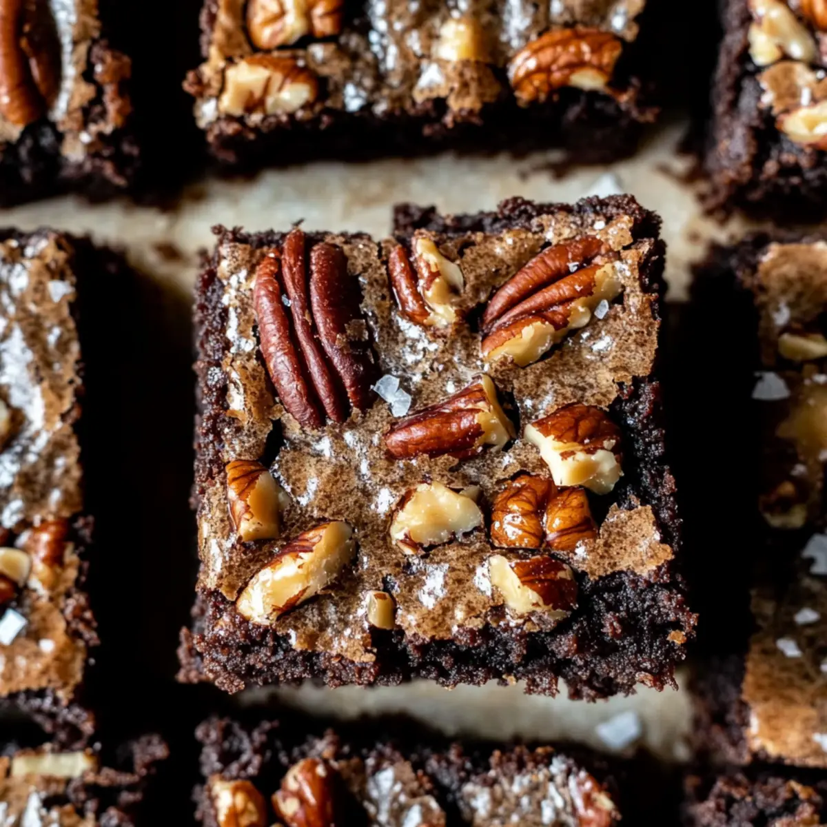 Facebook Twitter Pinterest LinkedInAs I stood in my kitchen last week, the rich aroma of chocolate wafted through the air, teasing my senses and sparking joy. That’s when I decided to whip up a batch of Salted Pecan Pie Brownies, a delightful fusion of two beloved desserts that never fails to impress! This easy dessert is a perfect companion for holiday gatherings, as it combines the rich decadence of chocolate fudge brownies with the sweet and nutty charm of a pecan pie topping. Trust me, each melt-in-your-mouth bite is a harmonious blend of flavors and textures that keeps everyone coming back for more. Whether it’s a chilly winter evening or a special celebration, these brownies add a touch of indulgence that feels just right. Are you ready to dive into this luscious creation? Let’s get baking! Why Are These Brownies So Special? Indulgent layers make these Salted Pecan Pie Brownies truly unforgettable, combining rich chocolate and nutty sweetness for a match made in dessert heaven. Effortless baking ensures you won’t spend hours in the kitchen—perfect for busy holidays or spontaneous gatherings. Crowd-pleasing and versatile, they’ll wow guests, whether served dimly lit by candlelight or brightened by festive holiday lights. For a truly delightful experience, serve them warm with a scoop of ice cream, or explore other variations like our delicious July Rice Krispie for even more fun.Great for sharing, they’re the ideal treat for anyone looking to switch things up from bland fast food options. Salted Pecan Pie Brownies Ingredients • Here’s everything you need for decadent Salted Pecan Pie Brownies! For the Brownie Base All-Purpose Flour – Provides structure; swap for gluten-free flour if needed. Salt – Enhances flavor and balances sweetness perfectly. Baking Powder – Helps create a lighter, airy brownie texture. Unsweetened Cocoa Powder – Adds a rich chocolate flavor; avoid sweetened cocoa. Espresso Powder – Intensifies the chocolate flavor; substitute with instant coffee if necessary. Unsalted Butter – Adds moisture and richness; use at room temperature for easy mixing. Vegetable Oil – Keeps the brownies moist and fudgy; melted coconut oil works too. Granulated Sugar – Sweetens the brownies just right. Large Eggs – Binds ingredients and adds moisture; room temperature eggs are best. Vanilla Extract – Essential for a depth of flavor in chocolate desserts. For the Pecan Pie Topping Light or Dark Brown Sugar – Provides moisture and a deep caramel flavor for the topping. Light Corn Syrup – Ensure a rich, gooey pecan pie topping; dark corn syrup can be substituted. Chopped Pecans – Adds crunch and nutty flavor; walnuts can be used instead, or make them nut-free. Sea Salt Flakes – A sprinkle on top enhances flavor; adjust to your taste. Now that you have all the key ingredients, you are one step closer to basking in the delightful flavors of these Salted Pecan Pie Brownies! Let the baking begin. Step‑by‑Step Instructions for Salted Pecan Pie Brownies Step 1: Prepare the Baking Pan Begin by preheating your oven to 350°F (175°C). While it heats, grab an 8-inch square baking pan and spray it generously with flour-based baking spray to prevent sticking. This step is crucial, as it ensures your Salted Pecan Pie Brownies come out perfectly intact and easy to slice. Step 2: Make Brownie Batter In a large mixing bowl, whisk together the flour, salt, baking powder, cocoa powder, and espresso powder until well combined. In a separate bowl, blend the room temperature unsalted butter, vegetable oil, sugar, eggs, and vanilla extract until smooth. Gradually incorporate the dry mixture into the wet ingredients, stirring just until combined to create a rich chocolatey batter for your brownies. Step 3: Bake Brownies Pour the brownie batter into the prepared baking pan, spreading it evenly. Place the pan in the preheated oven and bake for 25-30 minutes, checking for doneness at the 25-minute mark. A toothpick inserted into the center should come out with a few moist crumbs for a fudgy texture, which is key to the delightful consistency of these Salted Pecan Pie Brownies. Step 4: Prepare Topping While the brownies are baking, prepare the pecan pie topping. In a medium saucepan, combine light brown sugar, granulated sugar, flour, corn syrup, egg, melted butter, and vanilla extract. Stir over medium heat until the mixture is smooth and just begins to bubble, ensuring a rich and gooey consistency. Remove from heat, and gently fold in the chopped pecans for added crunch and flavor. Step 5: Add Topping & Bake Again Once the brownies are finished baking, carefully pour the pecan topping over the hot brownies, ensuring even coverage. Sprinkle sea salt flakes on top for that perfect sweet-and-salty balance. Return the pan to the oven and bake for an additional 15-20 minutes, allowing the topping to set. Look for a slight jiggle in the center as a sign of doneness. Step 6: Cool and Set After baking, remove the pan from the oven and allow the Salted Pecan Pie Brownies to cool completely in the pan on a wire rack. For even firmer brownies, you can refrigerate them for 30-60 minutes before cutting. This will help enhance the thick, rich texture that makes these brownies so delectable and satisfying. Expert Tips for Salted Pecan Pie Brownies Check Early: Keep an eye on your brownies as they bake; checking at 25 minutes will help prevent overbaking. Every oven can be different! Use Room Temperature Ingredients: For the best texture, ensure your butter and eggs are at room temperature before mixing; this creates a smoother batter. Enhance the Flavor: If you’re using a box mix for the brownie base, boost the flavor by adding a teaspoon of vanilla and a tablespoon of espresso powder for a richer chocolate experience. Don’t Rush Cooling: Allow the brownies to cool completely before cutting, as this helps achieve those clean, beautiful slices we all love—and a firmer textu