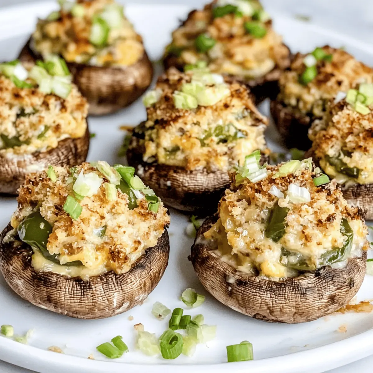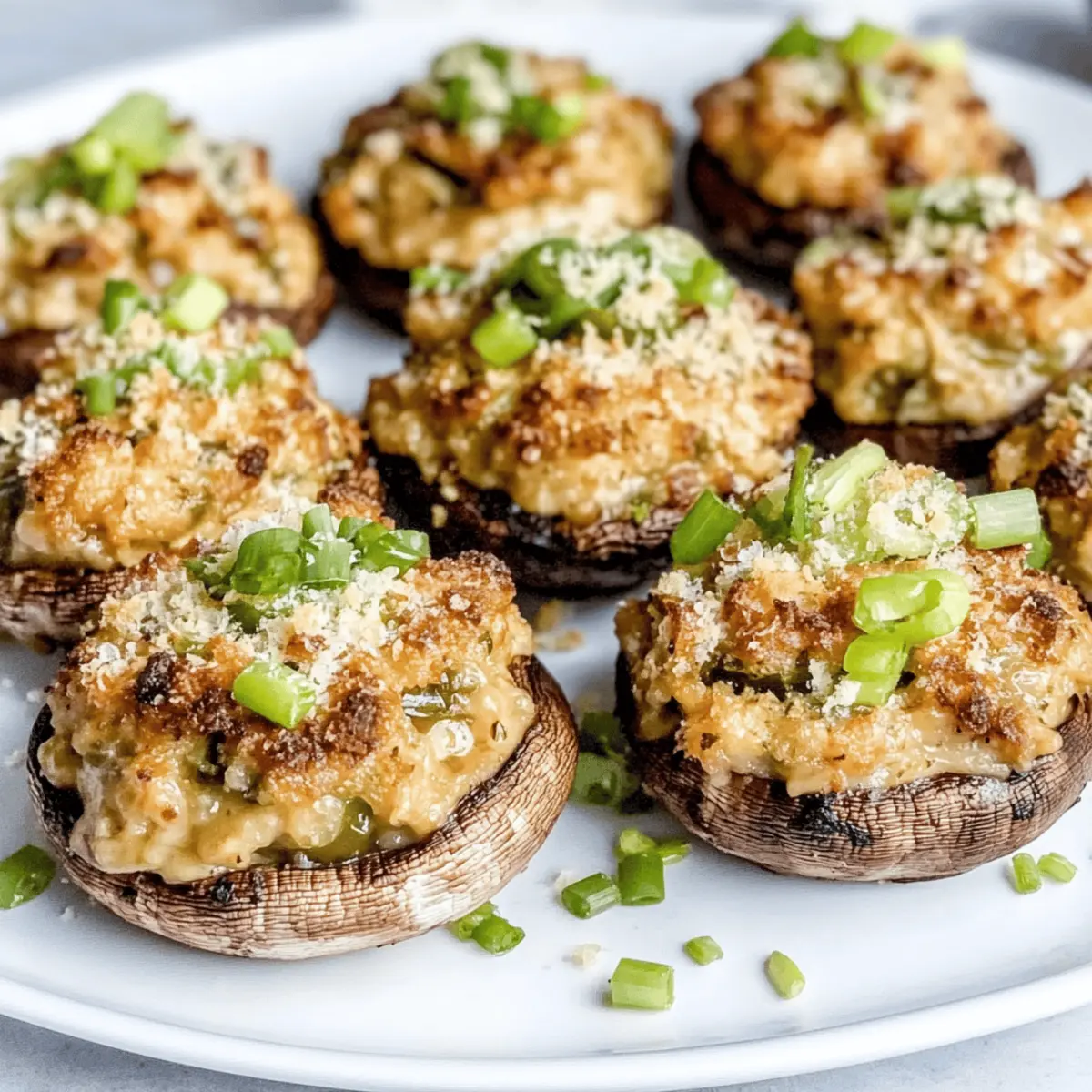 “Have you ever wandered through the produce aisle, captivated by the vibrant array of mushrooms?” That was me last week, when a new idea sparked for a party snack that’d impress any crowd. Enter my Scallion Jalapeño Popper Stuffed Mushrooms. These delightful bites marry earthy baby Bella mushrooms with a creamy, cheesy filling and a spicy jalapeño kick that leaves everyone wanting more. Perfect for cozy get-togethers or lively game day festivities, they offer a quick prep time while still being a showstopper on any appetizer platter. Plus, they’re easily customizable—think gluten-free or vegan versions to cater to your guests’ preferences. Ready to make something deliciously different for your next gathering? Let’s dive into this scrumptious recipe! Why Choose This Flavorful Snack? Delightfully Simple: This recipe requires minimal prep, making it ideal for both novice cooks and seasoned chefs. Crowd-Pleasing Sensation: Each stuffed mushroom is packed with a flavor explosion, making them the star of any gathering, from holiday dinners to game day parties. Versatile Options: Easily adapt the recipe for dietary preferences with gluten-free breadcrumbs or dairy-free cheese, so everyone can enjoy a tasty snack! Perfectly Satisfying: The creamy filling contrasts beautifully with the tender mushroom cap and crispy topping, resulting in an irresistible bite that keeps guests coming back for more. Make Ahead Magic: Prep these stunning bites the night before your event to save time and stress on the big day. Consider pairing them with Ground Turkey Stuffed Peppers or Scallion Oil Noodles for a delightful appetizer spread! Scallion Jalapeño Popper Stuffed Mushrooms Ingredients For the Filling Baby Bella Mushrooms – The earthy flavor and sturdy caps hold the scrumptious stuffing perfectly. Butter – Adds richness to the filling; substitute with olive oil for a dairy-free option. Garlic (minced) – Essential for enhancing flavor; fresh garlic ensures the best aroma. Panko Breadcrumbs – Provides a satisfying crunch; opt for gluten-free breadcrumbs for a GF version. Cream Cheese (softened) – Creates a creamy stuffing; swap for vegan cream cheese to make it dairy-free. Jalapeño (diced) – Delivers a spicy kick; adjust the amount based on your heat preference. Green Onion (scallion) – Adds freshness and a mild onion flavor; use both green and white parts for extra color. Parmesan Cheese – Offers a tangy boost; for a vegan option, nutritional yeast works beautifully. Salt and Pepper – Essential seasonings to taste; always enhance the natural flavors of the dish. For Garnish (optional) Extra Scallions – Sprinkle on top before serving for a pop of freshness and visual appeal. Dive into making these Scallion Jalapeño Popper Stuffed Mushrooms and delight your guests with flavors they’ll love! Step‑by‑Step Instructions for Scallion Jalapeño Popper Stuffed Mushrooms Step 1: Preheat and Prepare Begin by preheating your oven to 400°F (200°C). While it’s heating, line a baking sheet with parchment paper to prevent sticking. This will be the base for your Scallion Jalapeño Popper Stuffed Mushrooms, creating an easy cleanup and allowing the mushrooms to bake evenly. Step 2: Chop and Sauté Carefully remove the stems from the baby Bella mushrooms and chop them finely. In a skillet, melt a tablespoon of butter over medium-high heat, then add the chopped mushroom stems. Sauté for 5-7 minutes until they turn golden and tender, filling your kitchen with a delicious aroma that signals you’re on the right path. Step 3: Add Flavor Stir in minced garlic and panko breadcrumbs to the skillet with the sautéed mushroom stems. Cook the mixture for an additional 2-3 minutes until the breadcrumbs are golden and crispy. This step enhances the flavor and texture of the stuffing, setting a vibrant foundation for your filling. Step 4: Combine Ingredients Transfer the toasted mixture into a mixing bowl and let it cool slightly. Then, mix in the softened cream cheese until smooth. Add the diced jalapeño and chopped scallions, along with salt and pepper to taste; combine everything until it’s well-blended and creamy. You’re creating the fantastic filling for your Scallion Jalapeño Popper Stuffed Mushrooms! Step 5: Stuff the Mushrooms Carefully fill each mushroom cap with the creamy mixture from the bowl. Use a spoon to pack the filling generously without overflowing. Make sure each cap is nicely heaped to ensure every bite is bursting with flavor. Place the stuffed mushrooms on the prepared baking sheet as you go. Step 6: Add the Topping Once all the mushroom caps are filled, sprinkle grated Parmesan cheese over the top of each stuffed mushroom. This will create a deliciously crispy crust as they bake, enhancing the overall flavor profile of your Scallion Jalapeño Popper Stuffed Mushrooms, and making them extra appetizing. Step 7: Bake to Perfection Slide the baking sheet into the preheated oven and bake for 20-25 minutes. The mushrooms should be tender, and the tops golden brown when you take them out. The aroma wafting through your home will have everyone excited to taste these delightful bites. Step 8: Garnish and Serve After baking, let the mushrooms cool for a few minutes before serving. For an extra touch of freshness, garnish them with additional chopped scallions. These Scallion Jalapeño Popper Stuffed Mushrooms are now ready to be enjoyed at your next gathering or game day party! Expert Tips for Scallion Jalapeño Popper Stuffed Mushrooms Mushroom Prep: Ensure mushrooms are thoroughly dried after washing; excess moisture can lead to sogginess during baking. Filling Consistency: Aim for a creamy yet thick filling; adjust the cheese to breadcrumbs ratio to keep from overflowing the caps. Customize Heat: For milder flavor, deseed the jalapeños; taste the filling before stuffing to gauge the spice level. Make Ahead: Prepare and stuff mushrooms the night before; just cover t