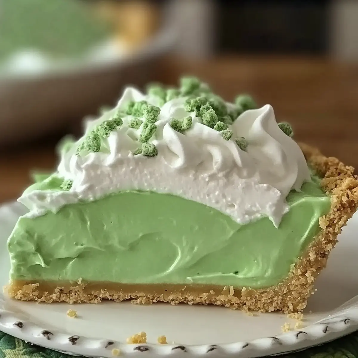 Facebook Twitter Pinterest LinkedInAs I prepared for St. Patrick’s Day, I stumbled upon a delightful craving—a no-bake Shamrock Shake Pie that caught my attention. Its lush green hue promises a sweet treat that’s as enjoyable to make as it is to eat. This festive dessert harmonizes refreshing mint and creamy vanilla flavors, making it an enticing option for gatherings with friends or family. Additionally, its quick prep and customizable variations, including gluten-free options, guarantee that no one feels left out at the celebration. Whether you’re an experienced chef or simply eager to whip up something special, this Shamrock Shake Pie is destined to bring smiles and second helpings. What will you add to your version? Why is this pie a must-try? Festive Appeal: The Shamrock Shake Pie’s vibrant green color makes it the star of any celebration, especially St. Patrick’s Day! No-Bake Simplicity: Whip this dessert up in no time without the need for baking—perfect for busy cooks or spontaneous gatherings. Customizable Layers: Mix and match variations like Mint Chocolate Chip or an Oreo Cookie Crust to suit all taste buds. Gluten-Free Friendly: Adapt the recipe easily for gluten-sensitive friends using gluten-free graham crackers. Refreshing Taste: The creamy mint filling offers a delightful twist that feels like indulgence without being heavy. Embrace the joy of homemade treats with this versatile Shamrock Shake Pie—your guests will be asking for the recipe! Shamrock Shake Pie Ingredients For the Crust • Graham Crackers – the base for a delicious crust; swap for gluten-free graham crackers if needed. • Brown Sugar – adds sweetness and richness; substitute with coconut sugar for a healthier option. • Butter (½ cup, melted) – binds the crust ingredients together; use margarine for a dairy-free version. For the Filling • Milk (2½ cups, cold) – activates the pudding mix for a creamy consistency; almond or coconut milk are great alternatives. • Green Food Coloring (¼ teaspoon) – creates a festive appearance; use it according to your desired color intensity. • Mint Extract (2 teaspoons) – delivers a refreshing mint flavor; peppermint extract can be used for an even bolder taste. • Vanilla Pudding Mix (5.1 ounces) – thickens the filling for a creamy texture; try homemade vanilla pudding for a from-scratch option. • Whipped Topping (8 ounces, thawed) – lightens the filling; replace with homemade whipped cream for extra freshness. Step‑by‑Step Instructions for Shamrock Shake Pie Step 1: Prepare the Crust Begin by greasing a 9-inch pie dish with non-stick spray. In a food processor, crush graham crackers and brown sugar until fine. Gradually pour in the melted butter, pulsing until the mixture is sticky. Press this crumbly blend firmly into the bottom and sides of the pie dish. Place the crust in the freezer for 15-20 minutes to set and firm up, ensuring a sturdy base for your Shamrock Shake Pie. Step 2: Prepare the Filling In a large mixing bowl, combine 2½ cups of cold milk with ¼ teaspoon of green food coloring and 2 teaspoons of mint extract. Whisk the mixture until well-blended. Next, sprinkle in the 5.1 ounces of vanilla pudding mix and continue whisking vigorously until the mixture thickens, about 2-3 minutes. The vibrant green color should brighten, reflecting the festive spirit of the Shamrock Shake Pie. Step 3: Fold in Whipped Topping Gently fold in 8 ounces of thawed whipped topping into the thickened pudding mixture using a spatula. Be careful to maintain the airy texture. You want a smooth and creamy filling that embodies the refreshing mint flavor while achieving the perfect consistency. Take a moment to enjoy the delightful aroma of mint as it permeates your kitchen during this step. Step 4: Assemble the Pie After the crust has chilled, remove it from the freezer. Carefully spoon the velvety filling into the pie crust, ensuring even distribution. Smooth the top with a spatula, creating a lovely surface for presentation. Once assembled, cover the pie with plastic wrap and place it back in the freezer for at least 6 hours. This time allows the Shamrock Shake Pie to fully set, ensuring a delightful slice when served. Step 5: Serve the Pie Once the pie is completely set, take it out of the freezer. If desired, top your Shamrock Shake Pie with extra whipped cream and colorful maraschino cherries for a festive touch. Slice it into wedges, and serve immediately for the ultimate refreshing dessert. The contrast of the creamy filling with the crisp crust is sure to impress everyone at your gathering! Make Ahead Options Preparing your Shamrock Shake Pie in advance is a wonderful way to save time and make entertaining effortless! You can whip up the pie crust up to 24 hours ahead by pressing the graham cracker mixture into the pie dish and freezing it. Additionally, the filling can be made up to 3 days in advance—simply prepare it as directed, fill the crust, and cover the pie tightly with plastic wrap before freezing. This keeps the pie just as delicious while maintaining its creamy texture. When it’s time to serve, allow the pie to thaw for about 15 minutes at room temperature before slicing, then garnish as desired. Enjoy the ease of meal prep while delighting your guests with this festive dessert! How to Store and Freeze Shamrock Shake Pie Room Temperature: Keep the Shamrock Shake Pie at room temperature for up to 2 hours if serving at a gathering; afterward, return it to the fridge to maintain freshness. Fridge: Store leftover pie covered in plastic wrap in the fridge for up to 3 days. It’s best enjoyed cold, so pop it back in the fridge before serving for a refreshing experience. Freezer: Tightly wrap any remaining pie in plastic wrap and aluminum foil, storing it in the freezer for up to one week. This helps prevent freezer burn and preserves the festive flavors. Reheating: There’s no need to reheat this no-bake dessert! Simpl
