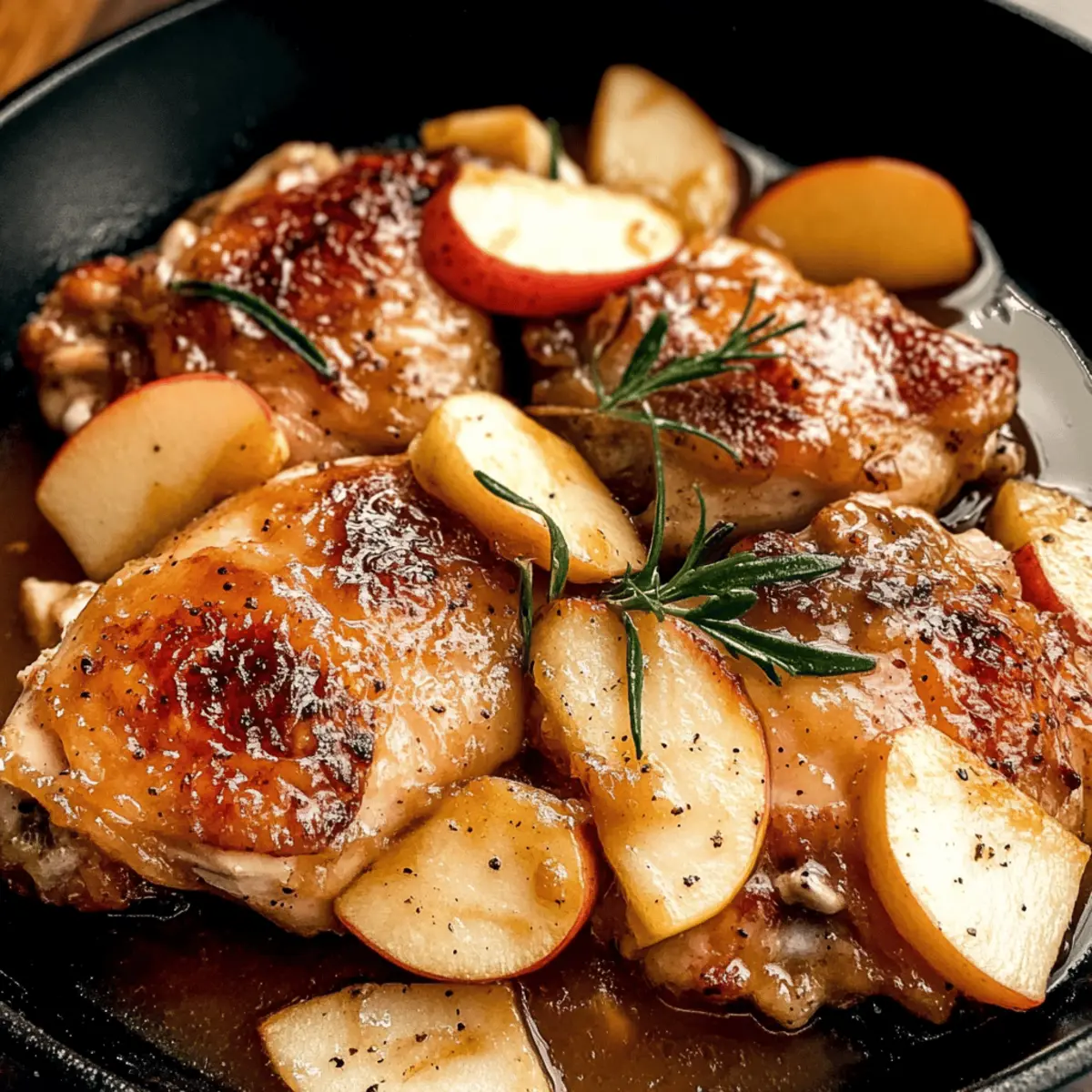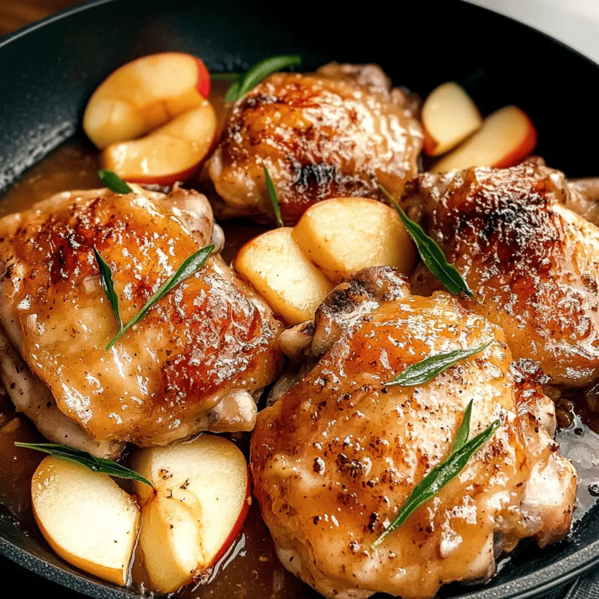 As I stood in my kitchen, the aroma of apple cider wafted through the air, instantly transporting me to crisp autumn afternoons spent at the orchard. There’s something truly magical about this time of year, especially when it comes to cooking. Today, I’m excited to share my Skillet Apple Cider Chicken, an easy dinner recipe that combines the cozy flavors of fall into one delightful dish. In just 35 minutes, you can have a tender and juicy chicken dish that not only impresses but simply warms the soul. With its quick prep and the opportunity to savor sweet apple cider alongside savory chicken, this meal is bound to become a go-to favorite for busy weeknights. Ready to fill your kitchen with the comforting scents of autumn? Let’s dive into this delicious recipe! Why is this Skillet Apple Cider Chicken amazing? Simple Preparation: This dish is quick to make, allowing you to create a comforting meal in just 35 minutes, perfect for busy weeknights. Flavor Explosion: The blend of sweet apple cider and rich spices creates a deliciously balanced sauce that elevates the chicken to a new level of taste. Crowd-Pleasing Appeal: Everyone will love this dish! Its combination of sweet and savory flavors makes it a hit for both family dinners and entertaining guests. Versatile Options: Feel free to swap in seasonal veggies or even substitute pork for a different take on this delightful recipe. Ideal for Fall: With its warm flavors, this Skillet Apple Cider Chicken captures the essence of autumn and is perfect for cozy nights. Don’t forget to try it alongside some Grilled Chicken Broccoli for a well-rounded meal! Skillet Apple Cider Chicken Ingredients • Dive into the flavors of fall with this Skillet Apple Cider Chicken! For the Chicken Chicken Thighs – Main protein that yields rich flavor and moisture; substitute with chicken breasts for a leaner choice, but expect a slight flavor change. Olive Oil – Essential for cooking and adds a delicious richness; can be swapped for vegetable oil if needed. Butter – Enhances the flavor and gives the sauce a luxurious texture; use more olive oil for a dairy-free alternative. For the Sauce Brown Sugar – Adds a touch of sweetness to balance the spices and cider acidity; feel free to adjust to your taste preference. Apple Cider – The hero of this dish; choose fresh apple cider for the best flavor—freeze leftovers in ice cubes for later use! Shallots – Provide a subtle sweetness and depth; yellow onions can be used in a pinch. For Flavoring Apples – Contribute texture and sweetness; opt for tart varieties like Granny Smith and sweet ones like Honeycrisp for maximum delight. Avoid overly soft apples like Red Delicious for best results. Spices (ground cinnamon, coriander, salt, pepper) – Create a warm seasoning mix that enhances the dish’s depth of flavor. Don’t skip the coriander for that distinctive taste! Step‑by‑Step Instructions for Skillet Apple Cider Chicken Step 1: Prepare Chicken Start by patting the chicken thighs dry with paper towels to ensure a nice sear. In a small bowl, combine ground cinnamon, coriander, salt, and pepper. Rub this spice mixture evenly over the chicken thighs, making sure each piece is well-coated. This step will infuse the Skillet Apple Cider Chicken with an aromatic flavor, setting the stage for a delightful dish. Step 2: Cook Chicken Heat 2 tablespoons of olive oil in a large 12-inch skillet over medium-high heat. Once the oil shimmers, carefully add the seasoned chicken thighs, cooking for about 5-6 minutes on each side, or until they turn golden brown and reach an internal temperature of 165°F (74°C). Once cooked, remove the chicken from the skillet and keep it warm on a plate while you prepare the sauce. Step 3: Make Sauce In the same skillet, lower the heat to medium and add 2 tablespoons of butter. Once melted, toss in chopped apples and sliced shallots. Sauté for 4-5 minutes until the apples soften and shallots become translucent. This blend will create a flavorful base for the sauce that perfectly complements the Skillet Apple Cider Chicken. Step 4: Add Apple Cider Pour in 1 cup of fresh apple cider, stirring to combine. Increase the heat to medium-high and let the mixture simmer for about 5-7 minutes, allowing the sauce to thicken slightly and the flavors to meld. Keep an eye on it, as you’ll want a glossy consistency that clings to the chicken beautifully. Step 5: Combine Return the browned chicken thighs to the skillet, nestling them into the apple and shallot mixture. Let them simmer for another 3-4 minutes, allowing the chicken to reheat and soak up the delicious apple cider sauce. This final step deepens the flavors, making your Skillet Apple Cider Chicken truly memorable. Step 6: Serve Once everything is ready, plate the chicken with a generous scoop of the apple-cider sauce and sautéed apples on top. If available, garnish with fresh thyme or rosemary for an aromatic touch. Enjoy this comforting dish warm, perhaps alongside rice or a fresh salad for a complete meal that celebrates the flavors of fall. Skillet Apple Cider Chicken Variations Feel free to get creative and make this dish your own with these delightful variations! Pork Option: Substitute chicken with pork chops; they’ll soak up the apple cider flavors while cooking for a new twist. Dairy-Free: Replace butter with additional olive oil for a completely dairy-free version while keeping the rich flavor intact. Alternative Fruits: Swap apples for pears for a unique sweetness that pairs beautifully with the cider sauce. Vegetable Add-ins: Toss in seasonal veggies like Brussels sprouts or green beans during the sauce-making step for added nutrition and color. Spice It Up: Integrate a pinch of cayenne pepper for a subtle kick that enhances the warmth of the spices. Rice Serve: Serve over a bed of fluffy rice or quinoa to soak up every drop of that delicious apple cider sauce! Slow Cooker Version: For an easy hands-off approac