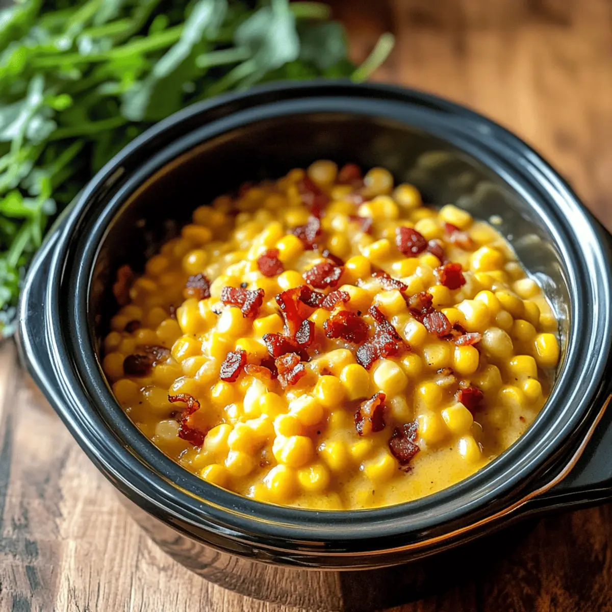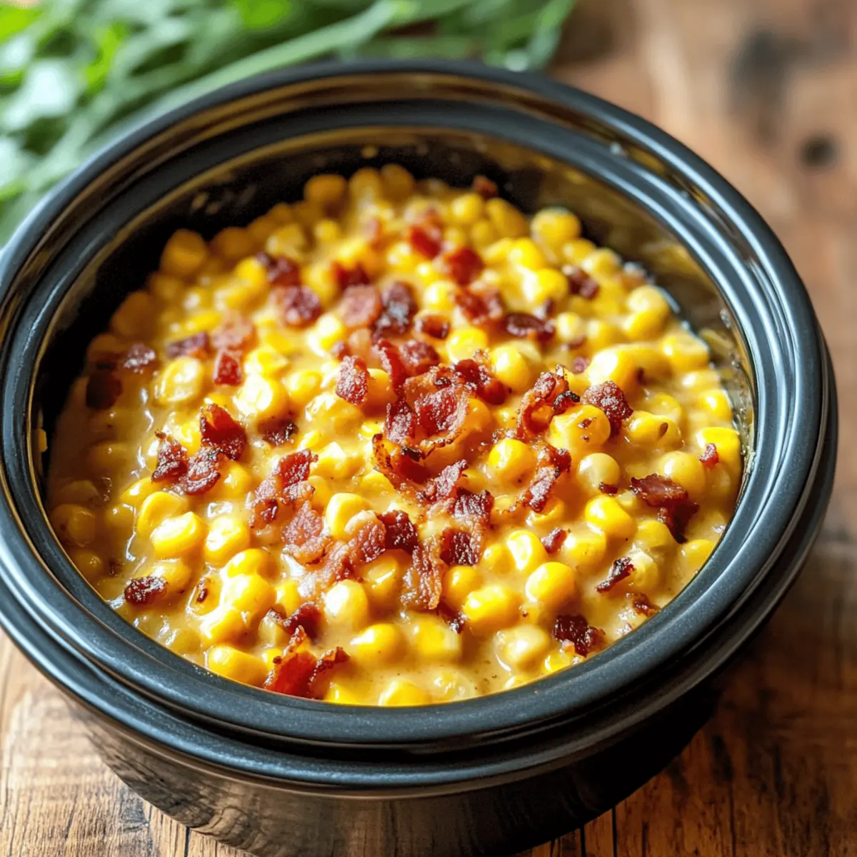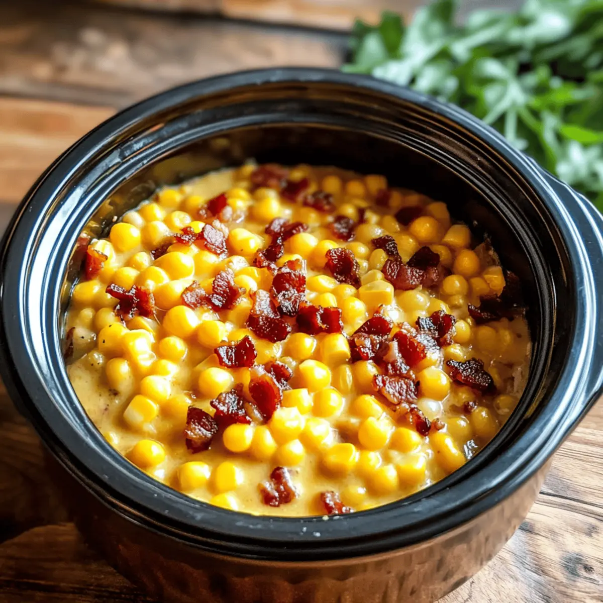 As I stirred the pot on a crisp evening, I couldn’t help but smile at the comforting aroma wafting through my kitchen—the essence of Southern goodness. This Slow Cooker Cheddar Corn with Bacon has a special place in my heart, blending the natural sweetness of corn with the creamy, rich flavors of sharp cheddar and the irresistible crunch of crispy bacon. It’s the kind of dish that effortlessly elevates weeknight dinners, holiday feasts, or cozy gatherings with friends. Best of all, it’s a breeze to make, allowing you to spend more time with loved ones rather than slaving over the stove. So, are you ready to create a flavor-packed side that everyone will want to dive into? Let’s get cooking! Why is this recipe so irresistible? Simplicity: This Slow Cooker Cheddar Corn with Bacon is incredibly easy to prepare, making it perfect for busy weeknights or last-minute gatherings. Comforting Flavor: The warm, savory mix of tender corn, rich cheddar, and smoky bacon is like a warm hug on a plate, bringing everyone to the table. Versatile Variations: Feel free to customize by adding jalapeños for a kick or using different cheeses to suit your taste! For some creative twists, consider trying it alongside your favorite Chicken Bacon Ranch or as a delectable pairing with Slow Cooker Chicken. Effortless Entertaining: Perfect for parties and potlucks, this dish will impress your guests while allowing you to enjoy their company—no fussing over complicated recipes! Leftover Love: With its creamy texture, this dish retains flavor even as leftovers, making it easy to reheat for a delicious meal later. Enjoy the comfort of homemade food! Slow Cooker Cheddar Corn with Bacon Ingredients For the Corn Mixture Frozen Corn Kernels – A naturally sweet base; fresh corn can elevate the dish even further. Sharp Cheddar Cheese – Adds a tangy richness; feel free to use gouda or your favorite cheese blend instead. Cooked Bacon – Introduces a delightful smoky flavor; swap it for turkey bacon to lighten things up. Heavy Cream – Essential for that creamy texture; switch to half-and-half for a lighter version or coconut cream for a dairy-free option. Unsalted Butter (melted) – Boosts creaminess; olive oil can be a wonderful substitute for a different flavor. For the Seasoning Garlic Powder – Provides delicious savory depth; fresh garlic brings an even bolder taste. Paprika – Adds warmth and vibrant color; cayenne pepper works well if you want a spicy kick. Salt and Pepper – Key for enhancing flavors; adjust according to your taste preferences. For the Finishing Touch Fresh Parsley (optional) – A sprinkle of green for garnish; feel free to use chives or green onions for a fresh pop instead. Step‑by‑Step Instructions for Slow Cooker Cheddar Corn with Bacon Step 1: Cook the Bacon Begin by cooking 6 slices of bacon in a skillet over medium heat until crispy, about 8-10 minutes. Once browned and fragrant, transfer the bacon to a paper towel-lined plate to drain excess grease. Once cooled, crumble the bacon into bite-sized pieces and set it aside, allowing the smoky flavor to infuse the dish later in the Slow Cooker Cheddar Corn with Bacon. Step 2: Prepare the Cheese While the bacon cooks, shred 2 cups of sharp cheddar cheese using a box grater or food processor until fluffy and evenly shredded. This creates a melty goodness that will meld beautifully with the corn. Make sure to have this cheese ready to go, as you’ll need it to combine all the ingredients seamlessly for your Slow Cooker Cheddar Corn with Bacon. Step 3: Combine Ingredients in Slow Cooker In a large slow cooker, combine 4 cups of frozen corn kernels, the shredded cheddar cheese, the crumbled bacon, 1 cup of heavy cream, and 4 tablespoons of melted unsalted butter. Add 1 teaspoon of garlic powder, 1 teaspoon of paprika, and a pinch of salt and pepper. Stir everything together until well-mixed, ensuring the cheese and cream evenly coat the corn, creating a rich base for your Slow Cooker Cheddar Corn with Bacon. Step 4: Set the Slow Cooker Cover the slow cooker with its lid and set the temperature to low for 4 hours or high for 2 hours. This slow cooking process allows the flavors to meld together beautifully while the cheese melts and the mixture becomes creamy. If possible, give the mixture a gentle stir halfway through to promote even cooking and check for delicious cheesy goodness. Step 5: Check Consistency and Season As the cooking time nears its end, peek inside the slow cooker and stir the mixture occasionally. After the designated cooking time, the Slow Cooker Cheddar Corn with Bacon should be creamy and smooth. If you find it’s too thick, feel free to add a splash of milk or cream to achieve your desired consistency, and adjust the seasoning with more salt and pepper if needed. Step 6: Garnish and Serve Once the dish is perfectly creamy and seasoned to your liking, consider garnishing with freshly chopped parsley before serving. This adds a touch of color and freshness to your Slow Cooker Cheddar Corn with Bacon. Serve warm alongside your favorite entrees or as a comforting highlight at your next gathering, sharing the joy of homemade flavors with family and friends. Expert Tips for Slow Cooker Cheddar Corn with Bacon Creaminess Control: If the mixture seems thick, add a bit of milk towards the end of cooking to achieve your desired texture while enhancing the flavor of your Slow Cooker Cheddar Corn with Bacon. Cheese Choices: Opt for sharp cheddar for a bold taste, but feel free to mix in gouda or mozzarella for a delicious twist on creaminess and flavor. Bacon Alternatives: For a lighter version, turkey bacon works well. Make sure to cook it until crispy to maintain texture in your Slow Cooker Cheddar Corn with Bacon. Season to Taste: Always taste and adjust seasoning toward the end of cooking, allowing you to balance the saltiness of the bacon and cheese with your personal preference. Stir for Consistency: Stir the mi