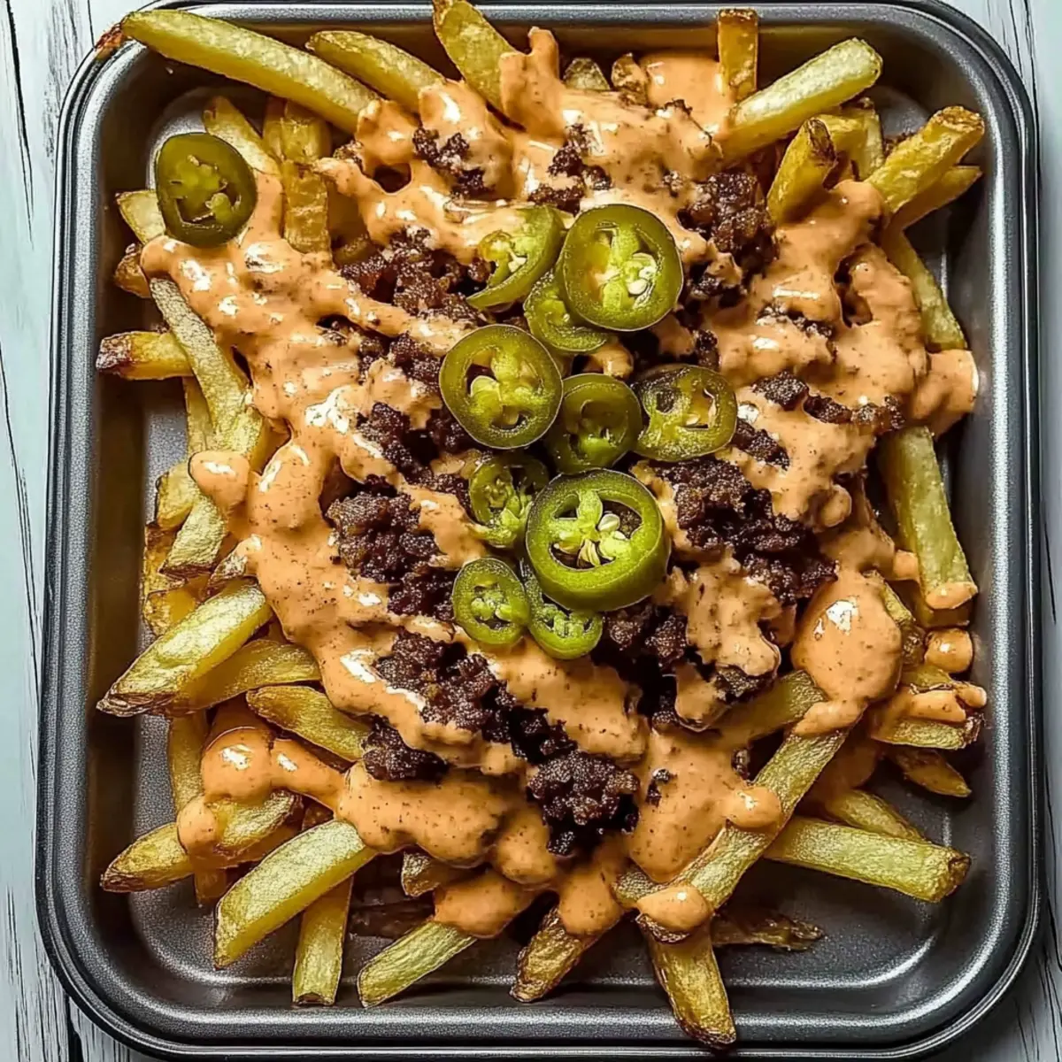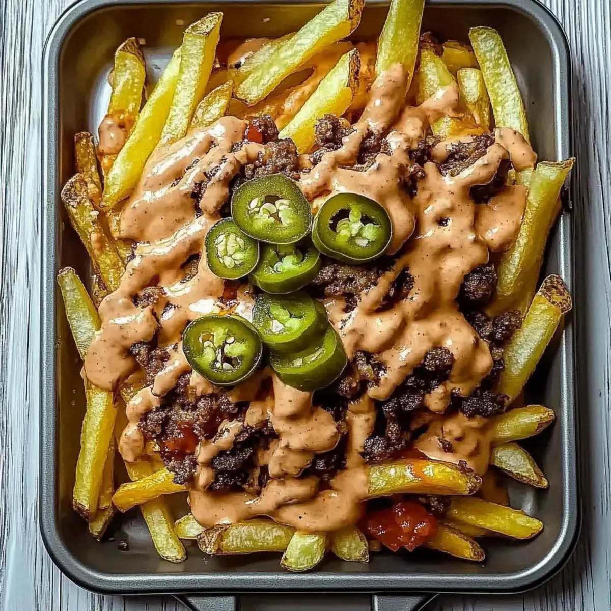 • Customize Smartly: Feel free to swap toppings but be cautious about adding liquefied ingredients like salsa, which can lead to soggy fries. Stick to crunchier options for balance.