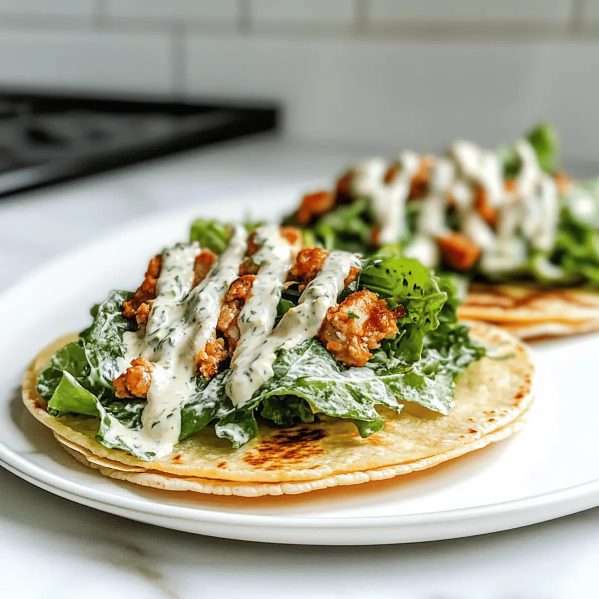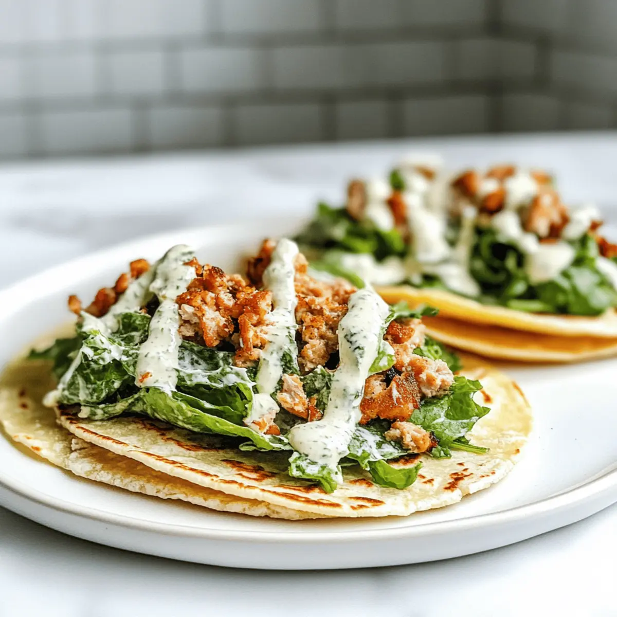 There’s a magical moment when crispy tortillas meet zesty Caesar goodness, and that’s exactly what you’ll find in these Smash Chicken Caesar Tacos. This recipe transforms the beloved Caesar salad into a delightful, quick meal that’s not only protein-packed but also incredibly customizable to suit your taste. Ready in under 20 minutes, these tacos offer a satisfying crunch that strikes the perfect balance between fun and wholesome. Whether you’re feeding a hungry family after a long day or hosting friends for a casual get-together, these tacos are sure to impress and fill bellies without breaking a sweat in the kitchen. Don’t you want to find out how to make this delectable dish that combines the best of both worlds? Why are these tacos a must-try? Quick and Easy: These Smash Chicken Caesar Tacos can be whipped up in under 20 minutes, making them a perfect weeknight dinner solution for those busy evenings. Protein-Packed Delight: Filled with juicy ground chicken, they offer a satisfying protein source that keeps you energized. Crispy Texture: Enjoy the perfect crunch from golden tortillas that elevate the traditional Caesar salad experience into a taco feast. Customizable Flavors: Make it your own! With options to add hot sauce, croutons, or even switch up the tortillas, there’s room for creativity. Crowd-Pleasing Appeal: Whether dining with family or entertaining friends, these tacos are a hit. Impress everyone with a fun twist on a beloved classic that caters to all taste buds. For more inspiration, don’t forget to check out our delicious Hawaiian Chicken Sheet for a different kind of flavorful fun! Smash Chicken Caesar Tacos Ingredients For the Chicken Filling • Ground Chicken – A juicy protein source that remains tender inside while achieving a crispy exterior; you can substitute with ground turkey for a lighter version. • Caesar Dressing – This creamy component is essential for replicating the classic Caesar salad flavor; consider making your own for an extra burst of freshness. For the Tortillas • Flour Tortillas – These provide the perfect crispy texture; opt for smaller sizes for better handling and cooking, or select gluten-free alternatives if needed. For the Toppings • Romaine Lettuce – Provides a refreshing crunch that mimics the classic Caesar salad element; try kale for a twist in flavor and texture. • Parmesan Cheese – Adds a salty, cheesy kick; it’s optional if you’re dairy-free, or swap in nutritional yeast for a vegan substitute. These Smash Chicken Caesar Tacos will quickly become a family favorite, blending convenience and nourishment in every crunchy bite! Step‑by‑Step Instructions for Smash Chicken Caesar Tacos Step 1: Heat the Skillet Begin by heating a large skillet over medium heat for about 2-3 minutes until hot. This allows the skillet to reach optimal cooking temperature, creating the perfect environment for achieving crispy tortillas. You’ll know it’s ready when you feel a gentle warmth radiating from the surface, indicating it’s perfect for the next step! Step 2: Prepare the Tortillas While the skillet heats, spread a thin, even layer of ground chicken on the back of each flour tortilla. You want just enough chicken to cover the surface without overloading it, ensuring a great crunch. Keep your tortillas ready to go, as they will be cooked chicken-side down to achieve that delicious texture we’re after in our Smash Chicken Caesar Tacos. Step 3: Cook the Tortillas Carefully place each tortilla in the hot skillet with the chicken side down. Gently press down with a spatula to ensure even contact with the skillet’s surface, allowing the chicken to start cooking and crisping. Allow the tortillas to cook undisturbed for 2-3 minutes until the edges begin to turn golden brown, indicating a perfect crisping action taking place. Step 4: Check for Doneness Once the 2-3 minutes are up, visually inspect the tortilla; it should be golden and crispy without burning. Using a spatula, lift one corner to check the doneness of the chicken. If it’s nicely browned and cooked through, it’s time to remove the taco from the skillet. This careful checking ensures that your Smash Chicken Caesar Tacos are cooked to perfection. Step 5: Assemble the Tacos After taking the tortillas out of the skillet, it’s time to assemble your tacos! Drizzle the inside with Caesar dressing while it’s still warm, allowing it to meld beautifully with the chicken. Then, layer in a handful of crunchy romaine lettuce and sprinkle with parmesan cheese if desired. Each bite will harmoniously blend the flavors of classic Caesar salad — tantalizing! Step 6: Serve Immediately Serve your Smash Chicken Caesar Tacos warm for the best textural experience. Enjoy immediacy as you dig into their crispy nature and refreshing toppings. Feel free to add more dressing on the side for an extra creamy delight. Your tacos are now ready to be enjoyed, offering both comfort and vibrancy to your meal. What to Serve with Smash Chicken Caesar Tacos? Elevate your taco night by adding delicious sides that bring out the delightful flavors of these mouthwatering creations. Creamy Avocado Salad: A fresh avocado salad adds creamy texture, enhancing the tacos’ rich flavors while providing a cool contrast. Zesty Corn Salsa: This bright, tangy salsa complements the savory chicken and Caesar dressing, bringing an extra layer of flavor to your meal. Crispy Sweet Potato Fries: The sweet and savory notes of crispy sweet potato fries create a perfect balance with the bold taste of the tacos. A great textural addition! Chilled Cucumber Salad: A refreshing cucumber salad brings crunch and coolness that balances the zest of the Smash Chicken Caesar Tacos, making each bite refreshing. Spicy Black Bean Soup: Serve a warm bowl of spicy black bean soup alongside your tacos for a hearty, comforting meal that packs a protein punch. Lemonade or Iced Tea: Pair your tacos with a sparkling le