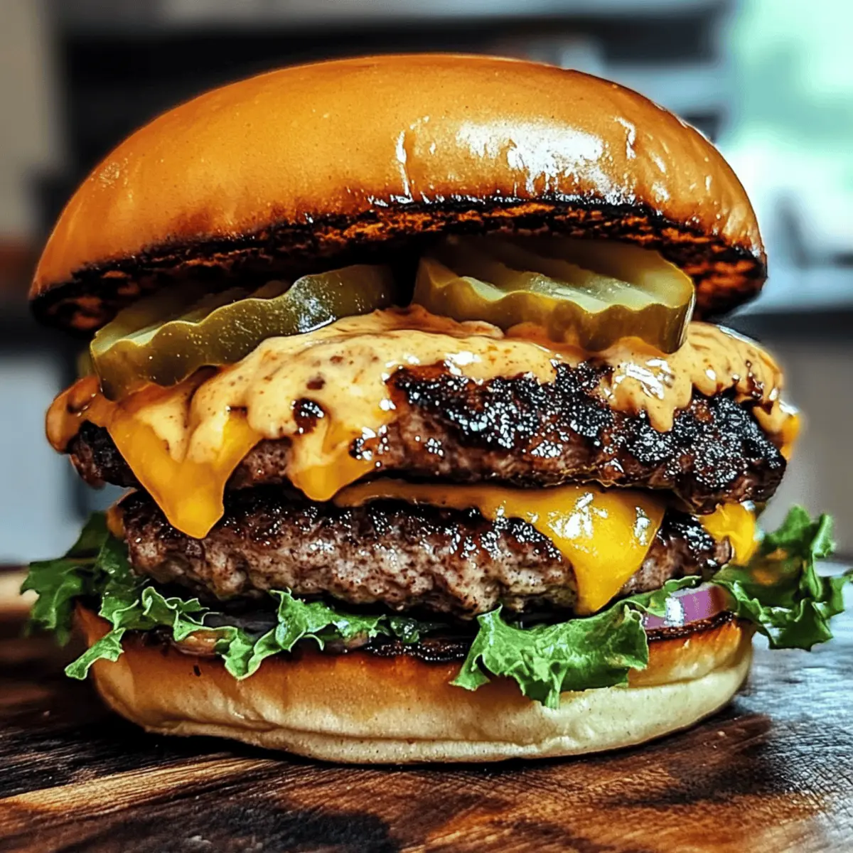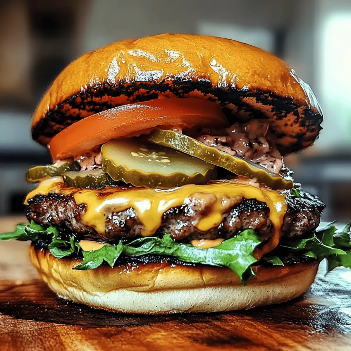 As I stood by the grill, the enticing aroma of smoky beef danced through the air, instantly transporting me to a sun-soaked backyard BBQ. Today, I’m thrilled to share my Smoked Cajun Cheese Burgers, a dish that brings bold flavors and comfort right to your plate. These juicy beef patties, infused with a spicy Cajun seasoning and topped with your cheese of choice, create a delightful explosion of taste that’s oh-so-satisfying. One of the best parts? These burgers are not only customizable to fit your spice level but also perfect for meal prep, meaning you can enjoy them any day of the week. So, are you ready to transform your grilling game and impress your friends with these mouthwatering burgers? Let’s dive in! Why Choose Smoked Cajun Cheese Burgers? Bold flavors: These burgers are packed with a robust Cajun spice blend that tantalizes your taste buds from the first bite. Customizable heat: You control the spice level—choose your favorite cheese and toppings for a unique twist every time! Perfect for BBQs: Impress friends and family at your next cookout with these crowd-pleasers that promise juicy tenderness and smoky goodness. Made for meal prep: Cook extra patties in advance; they can easily be stored and reheated for quick, delicious meals throughout the week. Comfort in every bite: Each burger is not just a meal, but a comforting experience, reminiscent of backyard gatherings filled with laughter and good food. Smoked Cajun Cheese Burgers Ingredients • Here’s everything you need to whip up these bold and flavorful burgers! For the Patties Ground Beef – Use beef with at least 20% fat for optimal juiciness and flavor. Cajun Seasoning – This adds that signature spicy kick; feel free to substitute with other spices for a different heat profile. Garlic Powder – A great way to enhance the savory flavor; fresh minced garlic works too if you prefer. Onion Powder – Adds sweetness and depth; consider using fresh onions for a bit of crunch. Salt & Pepper – Essential for bringing out all the delicious flavors—adjust to taste. For the Cheese Cheese (e.g., cheddar, pepper jack) – Select based on your heat preference, as it melts beautifully atop the patty. For the Buns Buns – Opt for lightly toasted buns to give your burgers structure; whole wheat or gluten-free options are great substitutes. For the Toppings Toppings (lettuce, tomato, pickles, red onions, jalapeños) – Add these for freshness and crunch, customizing according to your taste! For the Sauce Spicy Mayo or Remoulade – This brings moisture and an extra flavor layer; use regular mayo for a milder option. Each ingredient plays a vital role in making your Smoked Cajun Cheese Burgers packed with flavor and comfort! Step‑by‑Step Instructions for Smoked Cajun Cheese Burgers Step 1: Prepare the Patty Mixture In a large bowl, gently combine the ground beef with Cajun seasoning, garlic powder, onion powder, salt, and pepper. Be careful not to overmix to maintain the patties’ juiciness. You’re looking for a consistent blend—this is the heart of your Smoked Cajun Cheese Burgers! Step 2: Shape the Patties Next, shape the mixture into four equal patties, ensuring they’re slightly larger than your buns. Create a shallow indentation in the center of each patty using your thumb; this helps them cook evenly and prevents puffing up. Step 3: Preheat Your Cooking Surface Now, preheat your grill to medium-high heat or heat a cast iron skillet over medium heat. If using a skillet, add a touch of oil or butter to prevent sticking. Aim for a surface temperature that gives a sizzle when the patties contact it—this will create that beautiful crust we all love! Step 4: Cook the Patties Place the patties on the hot grill or skillet, cooking them for about 4-5 minutes on one side. Flip only once to achieve a delicious sear. For well-done burgers, ensure they reach an internal temperature of 160°F; add your cheese of choice in the last minute to melt perfectly over each patty. Step 5: Toast the Buns While the burgers are finishing, grab your buns and spread a bit of butter on the insides. Toast them on the grill or in a separate skillet until they are golden brown and slightly crispy. This will add a wonderful texture, making your Smoked Cajun Cheese Burgers even more delightful. Step 6: Assemble the Burgers Let’s build those burgers! Start by spreading spicy mayo or remoulade on the bottom bun; this adds moisture and a zing. Place the cheesy patty atop, followed by your choice of toppings like lettuce, tomato, pickles, and jalapeños for a fresh crunch. Step 7: Let Them Rest Finally, let your assembled Smoked Cajun Cheese Burgers rest for about 3-5 minutes before serving. This resting time allows the juices to redistribute, ensuring each bite is packed with incredible flavor and moisture. Smoked Cajun Cheese Burgers Variations Feel free to get creative with these variations, transforming your smoked Cajun cheese burgers into something uniquely yours! Chicken Swap: Use ground chicken instead of beef for a lighter, leaner option. The Cajun spices still deliver that bold flavor punch. Vegan Delight: Opt for plant-based patties seasoned with Cajun spices to cater to a vegan crowd. These still bring the same smoky, spicy goodness without the meat. Cheese Choices: Experiment with different cheeses like Gouda for a smoky twist, or feta for a salty zing. Each cheese offers a new flavor sunshine. Heat It Up: Increase the spice level by mixing in diced jalapeños or other spicy peppers. If you’re a heat seeker, adding a splash of hot sauce will elevate your burger game. Bun Variety: Try using lettuce wraps for a low-carb version or brioche buns for a touch of sweetness. Both options offer exciting profiles and textures. Sauce Switch: Swap spicy mayo with a smoky barbecue sauce or a tangy chipotle aioli. A twist in sauce can completely change the experience! Topping Twist: Add fruit toppings like grilled pineapple or jalape