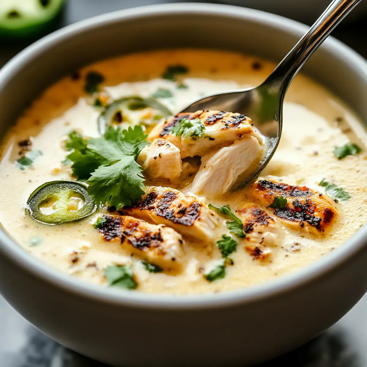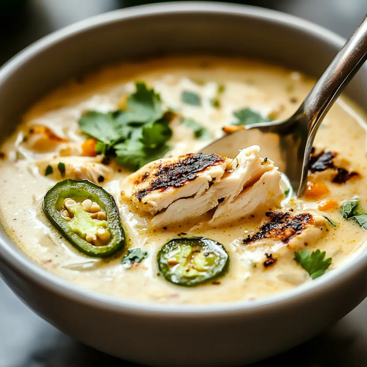 Smoky Jalapeño Popper Soup with Grilled Chicken