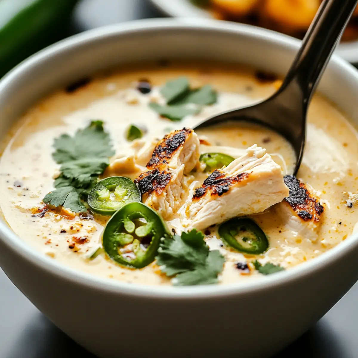 Smoky Jalapeño Popper Soup with Grilled Chicken Bliss