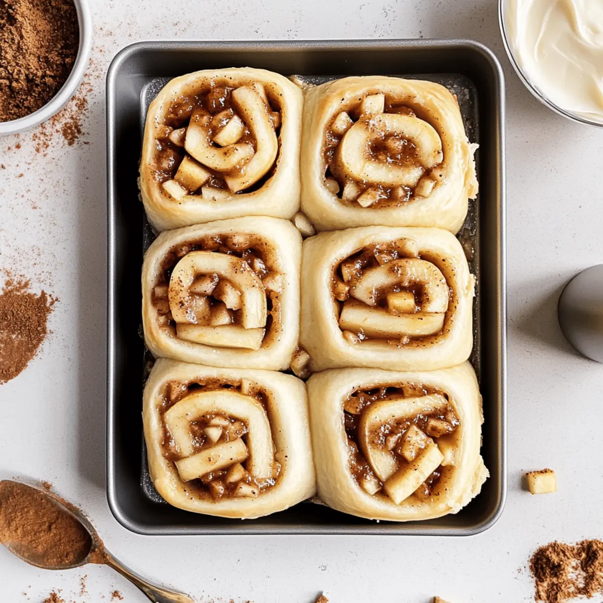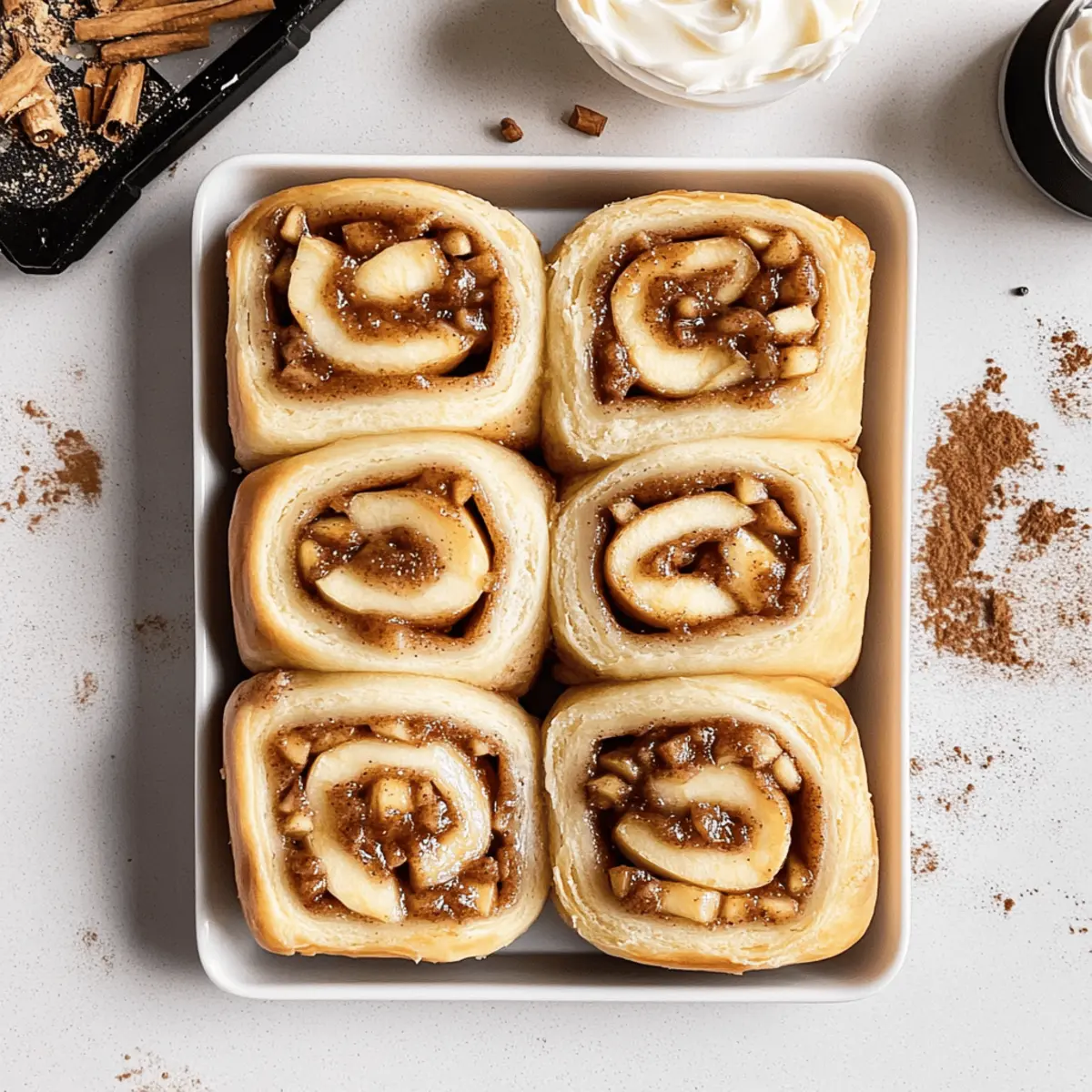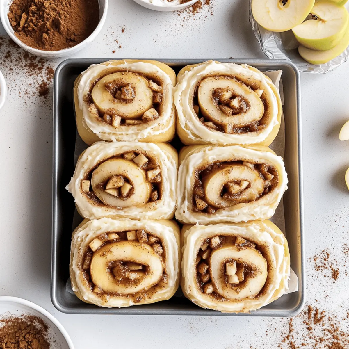 The aroma of freshly baked goods wafting through the kitchen can transport you to a warm, cozy place—a feeling you’ll experience with these Gooey Soft-Baked Apple Cinnamon Rolls. As someone who loves homemade food, I can promise that this recipe marries a gooey apple pie filling with a warm cinnamon brown sugar mixture for a perfect morning delight. Not only are they easy to assemble, making them a fantastic make-ahead breakfast for busy days, but their comforting taste will have everyone reminiscing about the joy of family gatherings and special moments. Whether you’re hosting a brunch or just want to treat yourself, these delightful rolls will steal the show. Ready to uncover the secrets to making your own batch? Let’s dive in! Why are These Apple Cinnamon Rolls Irresistible? Gooey Goodness: These soft-baked apple cinnamon rolls are the ultimate comfort food, bursting with a luscious apple pie filling that melts in your mouth. Easy to Assemble: Even beginners in the kitchen will thrive with this straightforward recipe. Prep the dough and fillings the night before for a hassle-free morning treat! Crowd-Pleaser: Perfect for brunches or family gatherings, everyone will be coming back for seconds. Add some warmth with a side of Pineapple Cucumber Salad to balance the sweetness! Unique Twist: With toasted pecans adding a delightful crunch, these rolls stand out from ordinary cinnamon rolls. Delightful Aroma: Baking them will fill your home with a heavenly scent, making it hard to resist tearing into them right out of the oven! Soft-Baked Apple Cinnamon Rolls Ingredients For the Dough • Brioche Dough – This rich dough provides the perfect structure; using store-bought can save time. For the Filling • Apple Pie Filling – Adds gooey sweetness and moisture; feel free to use homemade or store-bought. • Brown Sugar – Contributes caramel notes to the filling; coconut sugar is a delicious alternative if you want a twist. • Ground Cinnamon – Essential for that warm spice flavor; fresh cinnamon offers a more aromatic touch. • Toasted Pecans – Adds a satisfying crunch and depth, but you can omit or substitute with walnuts for a nut-free version. For the Frosting • Cream Cheese – Provides a creamy, tangy frosting that complements the sweetness beautifully; Neufchâtel cheese can lighten it up. • Powdered Sugar – Adjust the sweetness to your liking; it’s the perfect way to finish off your soft-baked apple cinnamon rolls. Step‑by‑Step Instructions for Soft-Baked Apple Cinnamon Rolls Step 1: Prepare the Dough In a large mixing bowl, combine your ingredients for the brioche dough. Knead for about 5-10 minutes until smooth and elastic, then cover it with a damp cloth. Let the dough rise in a warm spot for 1-2 hours, or until it has doubled in size, creating a cozy environment filled with the aroma of fresh dough. Step 2: Make the Fillings While the dough is rising, prepare the filling. In a saucepan over medium heat, combine your apple pie filling, brown sugar, and ground cinnamon, allowing them to heat and release their sweet fragrances for about 5-7 minutes. This creates a gooey mixture that will enhance the flavor of your Soft-Baked Apple Cinnamon Rolls. Step 3: Roll Out Dough Once your dough has finished rising, punch it down gently to release the air. Lightly flour a clean surface and roll the brioche dough into a 12×15-inch rectangle. Spread the warm apple filling evenly across the dough, leaving a small border around the edges. Sprinkle the toasted pecans on top, creating an inviting texture that adds crunch. Step 4: Form Rolls Starting from one long edge, carefully roll the dough into a tight log, maintaining even pressure. Once rolled, slice the log into 1¼-inch sections using a sharp knife or a bench scraper. You should have several delightful pieces, each promising a sweet surprise inside when baked. Step 5: Second Rise Place the sliced rolls in a greased baking dish, ensuring they have some room to rise. Cover them with a kitchen towel and allow them to rise again for about 30-60 minutes. They will puff up beautifully during this time, filling your kitchen with the scent of cinnamon and making the anticipation even sweeter. Step 6: Bake Preheat your oven to 350°F (175°C). Once the rolls have completed their second rise, bake them in the preheated oven for 25-30 minutes. Watch for the tops to turn golden brown and the edges to pull away slightly from the dish, indicating they are baked thoroughly and ready for frosting. Step 7: Frost After removing the rolls from the oven, let them cool in the dish for about 10 minutes. While still warm, prepare your cream cheese frosting by mixing cream cheese and powdered sugar until smooth. Spread generously over the Soft-Baked Apple Cinnamon Rolls, allowing it to melt slightly into the warm layers, creating a decadent finish to this comforting treat. Storage Tips for Soft-Baked Apple Cinnamon Rolls Room Temperature: Store leftover rolls in an airtight container at room temperature for up to 2 days to maintain their soft texture. Fridge: If you want to keep them longer, refrigerate the rolls for up to a week. Allow to warm slightly before serving to enjoy their gooey goodness. Freezer: For future enjoyment, you can freeze these rolls! Wrap them tightly in plastic wrap and store in a freezer-safe bag for up to 3 months. Thaw overnight in the fridge before warming. Reheating: To regain their freshly baked quality, reheat the rolls in the oven at 350°F (175°C) for about 10-15 minutes, or until warmed through for that cozy experience! What to Serve with Soft-Baked Apple Cinnamon Rolls Delight in a complete breakfast experience with warm and comforting sides that perfectly accompany your sweet rolls. Crispy Bacon: Adds a savory crunch that contrasts beautifully with the gooey sweetness, making every bite a delicious balance. The salty, crispy bite enhances the overall meal. Fluffy Scrambled Eggs: Soft, creamy eggs off