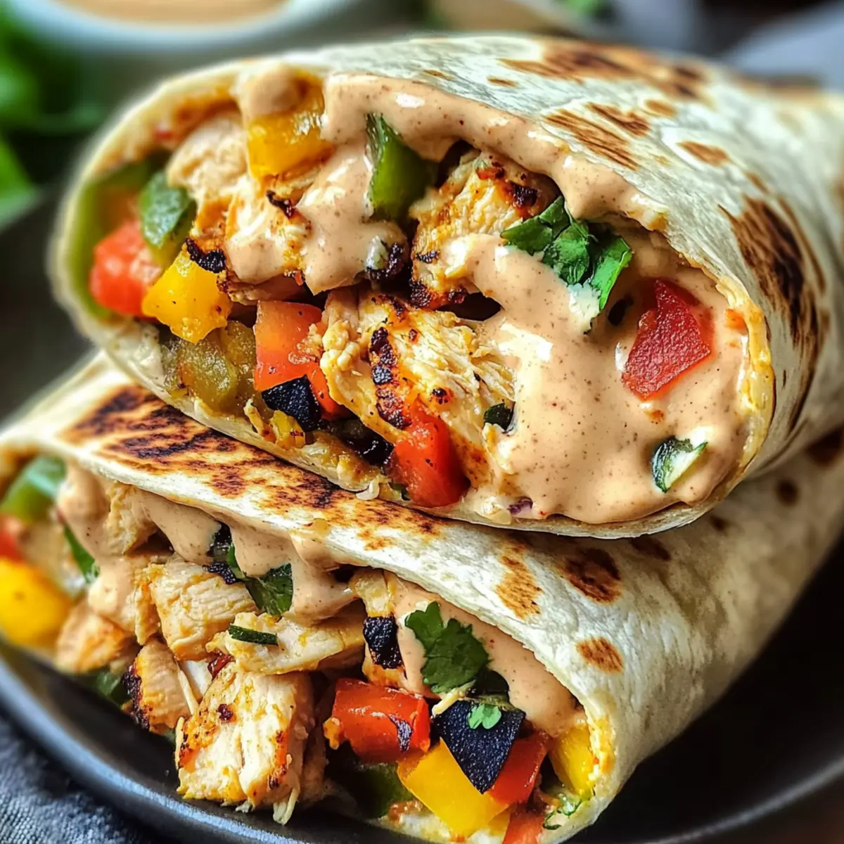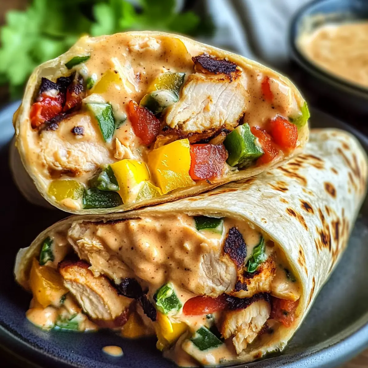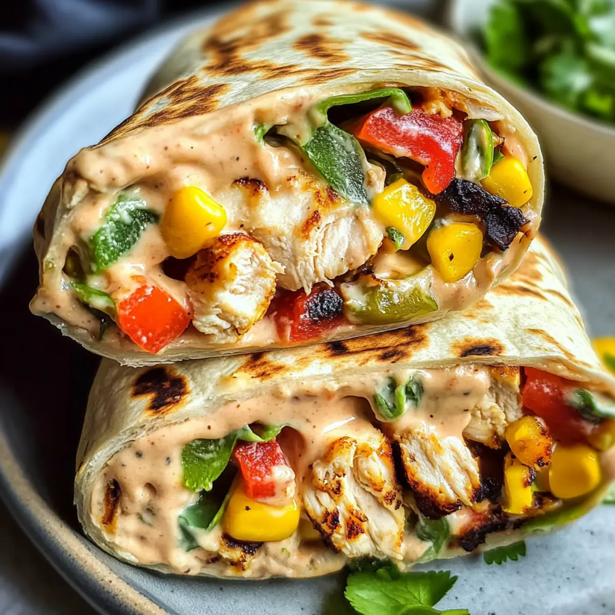 Facebook Twitter Pinterest LinkedInThe sizzling sound of marinated chicken hitting a hot skillet might just be one of my favorite kitchen symphonies. Today, I’m thrilled to share my go-to recipe for Quick & Healthy Southwest Chicken Wraps. This delightful meal comes together in just 30 minutes, making it the perfect solution for busy weekdays or unexpected dinner guests. Bursting with vibrant veggies, and protein-packed chicken, these wraps are not only customizable—allowing you to swap ingredients to your heart’s content—but they also cater to even the pickiest eaters, making them a kid-friendly favorite. With a zesty sauce that ties everything together, your family will be asking for these Southwest Chicken Wraps time and time again. Ready to embark on a delicious cooking adventure? Why is this wrap a family favorite? Quick and Easy: All of this comes together in just 30 minutes, making weeknight cooking a breeze. Kid-Friendly Twist: Even the pickiest eaters will be asking for seconds! Customize ingredients to satisfy every palate. Flavor Explosion: Each bite is brimming with vibrant veggies and marinated chicken, delivering a mouthwatering experience. Versatile Options: Swap proteins or add seasonal veggies to keep things fresh and exciting. Check out my Chicken Avocado Wrap for another delightful alternative. Crowd-Pleasing Results: Whether it’s a family dinner or a casual get-together, these wraps will impress your guests! Southwest Chicken Wrap Ingredients • Ready to create these delicious Southwest Chicken Wraps? For the Wrap Chicken Breasts (0.75 lb) – The main protein source that offers juiciness; you can substitute with beef or tofu for variety. Large Tortillas (4) – The perfect wrap base; consider whole wheat tortillas for added fiber. For the Marinade Lime Juice (¼ cup) – Adds a burst of acidity and freshness; you can use lemon juice if lime isn’t on hand. Chili Powder (½ tsp) – Provides spice and warmth; feel free to adjust according to your taste preferences. Onion Powder (½ tsp) – Enhances the savory flavor; fresh onions can be used instead for a more robust taste. Garlic Powder (1 tsp) – Adds depth; fresh garlic is also a delightful option. Smoked Paprika (½ tsp) – Contributes a unique smoky flavor; regular paprika is a fine substitute. Salt (¼ tsp + to taste) – Enhances the overall flavor; using sea salt makes a delicious difference. Olive Oil (3 tbsp + 1 tsp) – Essential for marinating the chicken and sautéing veggies; swap for avocado oil if desired. Chipotle Pepper in Adobo (1 Tbsp + ½-1 Tbsp) – Packs a smoky heat punch; use regular chili paste for less spiciness. For the Filling Uncooked Rice (1 cup) – Serves as a comforting base; try quinoa for a gluten-free alternative. Red Bell Pepper (1 small) – Adds a sweet crunch; swap with yellow or orange bell peppers if you like. Jalapeño (1) – Offers a spicy kick; remove the seeds if you prefer a milder version. Red Onion (½, sliced) – Provides a sharp and crunchy bite; green onions can be a milder substitute. Corn Kernels (¾ cup) – Adds sweetness and texture; use frozen or fresh corn as available. Black Beans (1 cup, drained and rinsed) – Adds protein and creaminess; pinto beans work well as a substitute too. Cotija Cheese (¼ cup) – Brings creaminess and a touch of salt; feta or nutritional yeast can replace it. For the Sauce Sour Cream (⅓ cup) – Creates a smooth, creamy sauce base; Greek yogurt is a healthier alternative. Honey (1½ Tbsp) – Adds a natural sweetness to balance flavors; maple syrup is a great substitute for a vegan option. Fresh Cilantro (3 Tbsp, chopped) – Brings fresh herb flavor; feel free to omit if it’s not your favorite. Water (1-2 Tbsp) – Used to thin the sauce as needed; adjust for desired consistency. Salt (¼ tsp, for sauce) – Enhances the sauce’s flavor beautifully. Dive into a culinary adventure with these Southwest Chicken Wrap ingredients—perfect for a fun family dinner or a quick meal that satisfies! Step‑by‑Step Instructions for Southwest Chicken Wrap Step 1: Marinate the Chicken Begin by patting the chicken breasts dry and dicing them into bite-sized pieces. In a bowl, combine the diced chicken with olive oil, lime juice, chili powder, onion powder, garlic powder, smoked paprika, and chipotle pepper. Mix well to coat the chicken evenly with the marinade. Let it marinate for 15 minutes at room temperature, or refrigerate for up to 24 hours for deeper flavor. Step 2: Cook the Rice While the chicken is marinating, prepare the rice according to the package instructions. Typically, you’ll bring water to a boil, add the rice, and then cover and simmer for 15-20 minutes until tender. Once cooked, fluff the rice with a fork and set aside to cool slightly while you proceed to the next steps of your Southwest Chicken Wrap. Step 3: Prepare the Vegetables Use this time to wash and slice your vegetables. Dice the red bell pepper, slice the jalapeño removing seeds for milder heat, and thinly slice the red onion. Mince the garlic cloves for the sautéing phase. Having all ingredients prepped will help ensure your cooking process for the Southwest Chicken Wrap is efficient and enjoyable. Step 4: Sauté the Chicken Heat a large skillet over medium heat and add a drizzle of olive oil. Once hot, add the marinated chicken and cook for 12-15 minutes, stirring occasionally, until the chicken is fully cooked and browned. Use a meat thermometer to check for an internal temperature of 165°F. Once cooked, remove from heat and set the chicken aside to keep it warm. Step 5: Sauté the Vegetables In the same skillet, add a little more olive oil if needed and toss in the diced bell pepper, sliced jalapeño, and red onion. Sauté for about 8 minutes until they begin to soften but still retain some crunch. Add the minced garlic and cook for an additional minute, allowing the garlic to fragrant. This colorful mix will enhance the flavors o