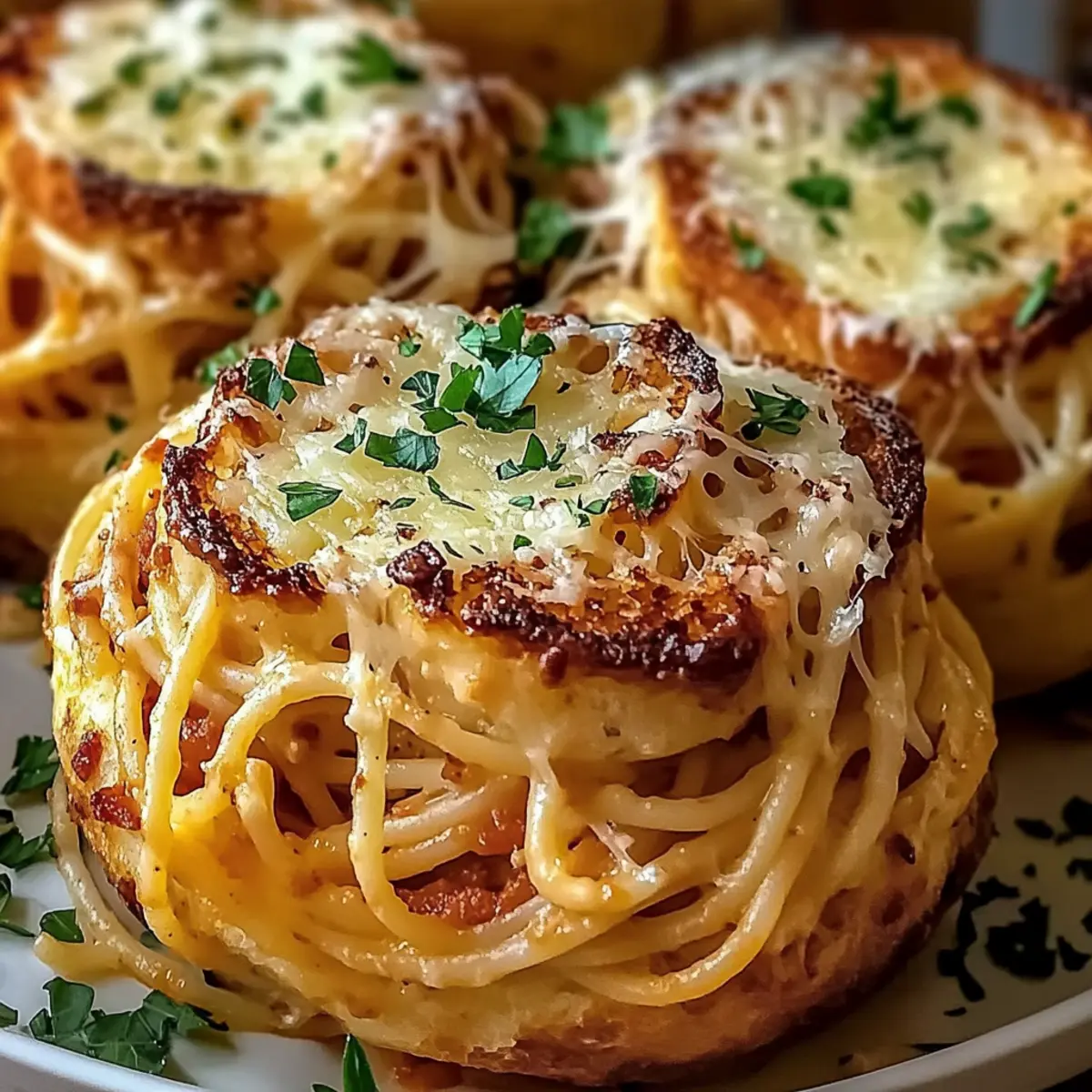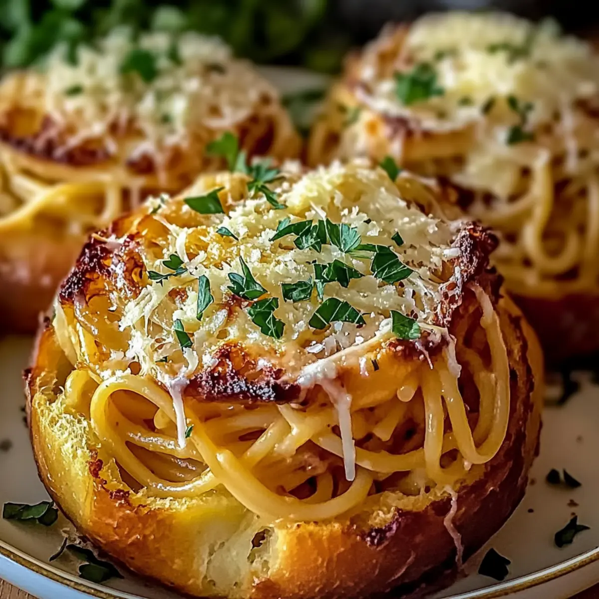 Facebook Twitter Pinterest LinkedInThe aroma of sizzling garlic wafted through my kitchen as I prepped an exciting dish: Spaghetti Garlic Bread. Imagine the surprise on my family’s faces when I revealed this delightful combo—crispy, buttery garlic bread alongside a savory spaghetti swirl. This easy recipe shines on busy weeknights, transforming simple ingredients into a comforting meal that brings everyone to the table. Plus, it’s a vegetarian-friendly option that leaves no one feeling left out. With variations like Pesto Spaghetti Garlic Bread or a Spicy twist, you’ll find endless ways to enjoy this classic favorite. Are you ready to elevate your weeknight dinners? Let’s dive into the recipe! Why Is Spaghetti Garlic Bread So Irresistible? Comforting Fusion: The combination of crispy garlic bread and savory spaghetti creates a comforting meal that satisfies cravings on any occasion. Endless Variations: Feel free to get creative—try a Pesto Spaghetti Garlic Bread or make it spicy with red pepper flakes for an exciting twist. Quick and Easy: Perfect for busy weeknights, this dish comes together in no time, making it a go-to choice for last-minute dinners. Vegetarian Delight: Everyone can enjoy this dish! It’s vegetarian-friendly and packed with delicious flavors, ensuring no one feels left out at the table. Crowd-Pleasing: Great for family gatherings or casual get-togethers, it’s sure to impress guests and leave them asking for more! Spaghetti Garlic Bread Ingredients Get ready to whip up this irresistible dish! For the Spaghetti • Spaghetti – The heart of the recipe, providing a sturdy base for flavor. • Water – Essential for cooking the pasta; be generous for a rolling boil. • Salt – Enhances all the flavors in the dish, adjust to your taste. • Olive Oil – Adds richness and prevents pasta from clumping. • Garlic – Freshly minced is key for that aromatic kick! • Red Pepper Flakes – Optional for those who love a bit of heat. • Fresh Parsley – Brightens the dish; swap with basil for a different flavor. • Parmesan Cheese – Creamy and flavorful, always use freshly grated for best results. For the Garlic Bread • Italian Bread – A robust loaf that holds up beautifully to the garlic spread. • Unsalted Butter – Softened for easy mixing into your garlic spread. • Garlic (for bread) – Intensifies the garlic flavor, creating a delicious topping. • Garlic Powder – Optional, for an extra punch of flavor in the garlic spread. • Black Pepper – Freshly ground for a subtle heat and complexity. Enjoy this Spaghetti Garlic Bread and explore the delightful blend of textures and flavors it brings to your table! Step‑by‑Step Instructions for Spaghetti Garlic Bread Step 1: Boil Water In a large pot, bring 4 quarts of water to a rolling boil over high heat. Once boiling, add 2 tablespoons of salt to enhance the flavor of your spaghetti. This step is crucial as it creates a flavorful base for the pasta. Step 2: Cook Spaghetti Add the spaghetti to the boiling water and cook according to the package instructions, typically 8-10 minutes, until al dente. Stir occasionally to prevent sticking. Once cooked, reserve 1 cup of pasta water before draining the spaghetti in a colander. Step 3: Sauté Garlic In a large skillet, heat 2 tablespoons of olive oil over medium heat. Add the minced garlic and optional red pepper flakes, sautéing for 1-2 minutes until fragrant and golden. This aromatic blend will infuse the spaghetti garlic bread with delicious flavor. Step 4: Combine Spaghetti Reduce the heat to low and toss the drained spaghetti into the skillet with the sautéed garlic oil. Gradually add the reserved pasta water, mixing until the spaghetti absorbs the flavors, creating a silky texture that perfectly complements the garlic. Step 5: Add Seasoning and Cheese Stir in finely chopped parsley and freshly grated Parmesan cheese, adjusting salt and pepper to taste. This final step infuses the spaghetti garlic bread with a fresh, vibrant taste, enhancing the comfort of this delightful dish. Step 6: Prepare Garlic Butter In a separate bowl, mix together 1/2 cup of softened unsalted butter, minced garlic, chopped parsley, and additional Parmesan. If desired, add garlic powder for an extra kick. Season the mixture with salt and pepper for an evenly balanced flavor, perfect for your garlic bread. Step 7: Prepare Bread Slice a hearty loaf of Italian bread lengthwise, creating two halves. Generously spread the prepared garlic butter mixture on the cut sides of the bread, making sure to cover every inch for maximum flavor and grilling crispiness. Step 8: Bake Bread Preheat your oven to 375°F (190°C). Place the prepared garlic bread on a baking sheet and bake for 10-12 minutes, or until it turns golden brown and crispy. This step creates the perfect contrast to the soft spaghetti you’ve just prepared. Step 9: Broil For an extra crispy finish, switch your oven to broil and cook the garlic bread for an additional 1-2 minutes. Keep a close eye on it to prevent burning; you want it beautifully browned without losing any deliciousness. Step 10: Serve To assemble your dish, plate generous portions of spaghetti garlic bread and garnish with extra cheese and parsley. Serve hot and enjoy this comforting fusion, which is bound to impress your family or guests! Make Ahead Options These Spaghetti Garlic Bread delights are perfect for meal prep enthusiasts! You can prepare the garlic butter mixture and store it in the refrigerator for up to 3 days ahead of time, helping you save precious moments on busy weeknights. Additionally, the spaghetti can be cooked and tossed in the garlic oil, then refrigerated for up to 24 hours. Just be sure to use a little reserved pasta water to refresh it upon reheating, preventing it from drying out. When you’re ready to serve, simply spread the garlic butter on the sliced Italian bread, bake, and plate the spaghetti alongside for an e