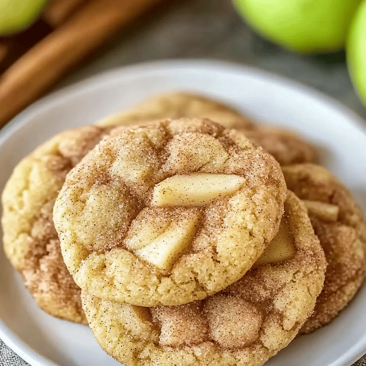 The aroma of freshly baked cookies wafted through my kitchen, instantly transforming a simple afternoon into a cozy escape. These Spiced Apple Cinnamon Snickerdoodle Cookies are a delightful twist on the beloved classic, blending the soft, chewy texture of snickerdoodles with the warm embrace of autumn flavors. With tart Granny Smith apples nestled in each bite and a sweet cinnamon sugar coating, they evoke memories of fall gatherings and lazy days spent savoring comfort food. Not only are these cookies incredibly easy to whip up, but they also stay delectably soft, thanks to the juicy apple pieces. Whether you’re hosting friends or indulging in a quiet evening, these cookies promise to be a crowd-pleaser. Ready to fill your home with the heartwarming scent of fall? Let’s dive into the recipe! Why are these cookies a must-try? Delightful Twist: These Spiced Apple Cinnamon Snickerdoodle Cookies elevate a classic recipe by incorporating fresh, tart apples, adding a unique flavor profile perfect for autumn. Comforting Aroma: Baking these cookies fills your home with a heavenly scent that instantly creates a cozy vibe, making it an ideal treat for gatherings or quiet nights. Simple Steps: The recipe is straightforward, requiring minimal effort while delivering maximum flavor – a win-win for both novice and experienced bakers! Incredibly Soft: Thanks to the apples, these cookies retain their moist, chewy texture, making them an absolute indulgence with each bite. Versatile Variation: Feel free to switch it up by adding your favorite nuts or using pears instead of apples for a personal touch! Pair them with a glass of milk or a warm cup of coffee, and you’re all set for a delightful treat! Spiced Apple Cinnamon Snickerdoodle Cookies Ingredients For the Dough • All-Purpose Flour – Provides the structure for the cookies; use a gluten-free flour blend for a gluten-free option. • Cream of Tartar – Adds tanginess and is essential for that characteristic chewy texture; don’t skip this! • Baking Soda – Acts as a leavening agent, helping the cookies rise; make sure it’s fresh. • Salt – Enhances overall flavor and balances the sweetness in the cookies. • Unsalted Butter – Adds richness and helps achieve the perfect texture; it should be at room temperature. • Granulated Sugar (1 cup + 5 tablespoons) – Sweetens the cookie and contributes to its crispy exterior. • Brown Sugar – Provides moisture and a slight caramel flavor, enriching the cookie’s taste. • Eggs (2) – Important for moisture and binding; beat until pale for the best cookie structure. • Vanilla Extract – Enhances the flavor profile; opt for pure extract for a robust taste. • Granny Smith Apples – Adds moisture and a tart flavor that complements the spices; can substitute with firm Honeycrisp or Braeburn apples. • Ground Cinnamon – Infuses warmth and spice, tying in beautifully with the autumn theme. • Ground Nutmeg – Adds another layer of cozy flavor to the cookies; a little goes a long way. For Cinnamon Sugar Coating • Granulated Sugar – Use additional sugar to create a sweet, crispy exterior for the cookies. • Ground Cinnamon – A key ingredient in the cinnamon sugar mix that brings warmth and depth; essential for that snickerdoodle experience! • Ground Nutmeg – Adds a subtle spiced warmth that pairs perfectly with the other flavors. Dive into the delightful flavors of these Spiced Apple Cinnamon Snickerdoodle Cookies and fill your kitchen with the warm scent of fresh baking! Step‑by‑Step Instructions for Spiced Apple Cinnamon Snickerdoodle Cookies Step 1: Prep Oven & Trays Begin by preheating your oven to 350°F (175°C). While it warms up, line a cookie sheet with silicone or parchment paper to prevent sticking. This is a crucial step in ensuring your Spiced Apple Cinnamon Snickerdoodle Cookies bake evenly and come off the tray with ease, preparing a perfect base for the delicious cookies to come. Step 2: Combine Dry Ingredients In a medium bowl, whisk together all-purpose flour, cream of tartar, baking soda, and salt until well combined, about 30 seconds. This mixture is essential for the structure of your cookies and helps create that delightful chewiness typical of snickerdoodles. Set the bowl aside as we move on to the wet ingredients for your spiced apple cookies. Step 3: Cream Butter & Sugars In a large mixing bowl, beat together the softened unsalted butter, granulated sugar, and brown sugar using an electric mixer on medium speed for approximately 2-3 minutes. You want the mixture to become light and fluffy, which will enhance the overall texture of your Spiced Apple Cinnamon Snickerdoodle Cookies. This step is key to achieving the right consistency before incorporating the wet ingredients. Step 4: Add Wet Ingredients Add the eggs one at a time, mixing well after each addition until fully incorporated. Next, pour in the vanilla extract and blend until smooth. This should take about a minute. The eggs add moisture and binding, while the vanilla elevates the flavor profile, making your cookies all the more delightful. Step 5: Mix Dry & Wet Ingredients Gradually add the dry ingredient mixture from Step 2 into the wet ingredients, mixing on low speed just until combined. Aim for a smooth dough, but be careful not to overmix; a few lumps are perfectly fine. This is where your Spiced Apple Cinnamon Snickerdoodle Cookies start to take shape, so take your time in this step! Step 6: Incorporate Apples Gently fold in the diced Granny Smith apples using a spatula until they are evenly distributed throughout the dough. This adds moisture and a tart flavor to your cookies, making each bite a delightful surprise. Ensure the apples are mixed in without breaking them apart too much, keeping the texture intact. Step 7: Chill Dough Scoop out dough portions of about 1.5 tablespoons each and place them onto a plate or baking sheet. Chill them in the refrigerator for 20-30 m
