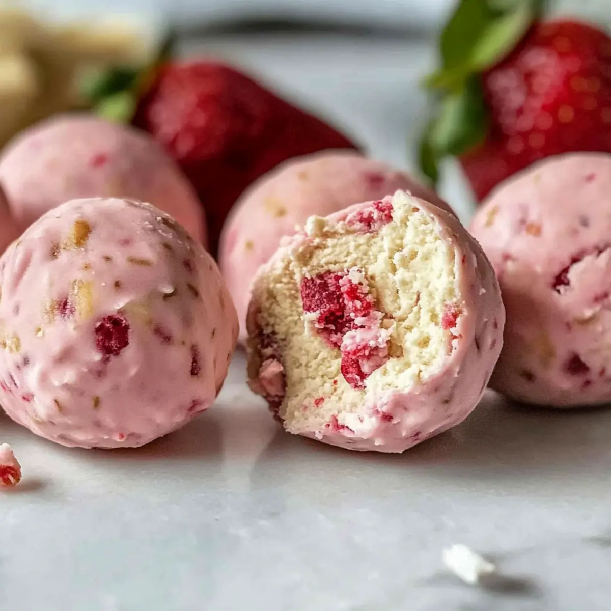 Facebook Twitter Pinterest LinkedInThe aroma of strawberry fields and creamy cheesecake wafts through the air like a delicious daydream. If you’re like me, you’ve probably longed for a snack that satisfies your sweet tooth while keeping you fueled and energized. Enter these no-bake Strawberry Cheesecake Protein Balls! Each bite is a delightful burst of dessert-inspired goodness, all while packing in 7 to 8 grams of protein. This recipe is not only quick and easy to whip up in just 45 minutes but also adaptable for various dietary needs—gluten-free, potentially vegan, and even keto-friendly. Whether you need a pick-me-up during a busy afternoon or a nutritious snack after a workout, these little gems have you covered. What’s your favorite way to enjoy a healthy treat? Let’s dive into this delightful recipe together! Why Are These Protein Balls So Irresistible? Nutritious, Guilt-Free Indulgence: Enjoy the rich taste of cheesecake without the extra calories! These no-bake Strawberry Cheesecake Protein Balls make snacking enjoyable while fitting into your healthy lifestyle. High Protein Content: Each ball packs 7-8 grams of protein, perfect for refueling post-workout or curbing those afternoon cravings. Quick & Easy: With just 45 minutes of prep time, you can whip up a batch that’s ideal for busy families or anyone on the go. Customizable for Everyone: Vegan, gluten-free, and keto options make these protein balls accessible to all dietary preferences. Why not explore variations like Vegan Mango Cheesecake for even more delightful choices? Crowd-Pleasing Flavor: The burst of strawberry combined with the smooth creaminess has something for everyone! Whether you eat them solo or share at gatherings, they are sure to impress. Strawberry Cheesecake Protein Balls Ingredients For the Base • Rolled Oats – Base structure and fiber; old-fashioned oats work best for a better texture. • Vanilla Protein Powder – Adds protein content and flavor; whey protein is recommended for a creamy texture. • Almond Flour – Provides a nutty flavor and additional protein; sunflower seed flour can be a nut-free substitute. For the Flavor • Freeze-Dried Strawberry Powder – Intensely fruity flavor without moisture; essential for avoiding soggy dough, as fresh strawberries cannot be used. • Cream Cheese – Gives a creamy texture and richness; ensure it’s softened to room temperature to avoid lumps or use vegan cream cheese for a dairy-free option. • Honey or Maple Syrup – A natural sweetener; can be substituted with a low-carb sweetener for keto diets. • Vanilla Extract – Enhances the overall flavor profile. • Salt – Balances sweetness and enhances flavor. Optional Add-Ins • Chia Seeds – Adds extra protein and binding, contributing 0.5g protein per ball. • Coconut Flakes – For rolling; adds aesthetics and additional coconut flavor. With these wholesome ingredients, your Strawberry Cheesecake Protein Balls promise a deliciously satisfying experience! Ready to indulge? Step‑by‑Step Instructions for Strawberry Cheesecake Protein Balls Step 1: Prepare Your Workspace Begin by lining a plate or small baking sheet with parchment paper. This will prevent your Strawberry Cheesecake Protein Balls from sticking and make for easy cleanup later. Prepping your workspace ensures that you have a dedicated spot for the final product while also keeping you organized during the process. Step 2: Mix Dry Ingredients In a medium bowl, whisk together rolled oats, vanilla protein powder, almond flour, freeze-dried strawberry powder, and a pinch of salt. Aim for a clump-free mixture, as this will ensure an even texture throughout your protein balls. Once blended, set this bowl aside to focus on the wet ingredients without losing the dry mixture’s consistency. Step 3: Blend Wet Ingredients In a separate bowl, combine softened cream cheese, honey or maple syrup, and vanilla extract. Using an electric mixer, blend the ingredients on medium speed for 1-2 minutes until the mixture is smooth and creamy. This step is crucial as a well-mixed base gives your Strawberry Cheesecake Protein Balls their delightful texture without any lumps. Step 4: Combine Wet and Dry Mixtures Slowly add the dry mixture to the wet ingredients. Stir with a spatula until a sticky dough forms. If the dough seems too dry, add a tablespoon of water; if it’s too wet, mix in a little more oats or protein powder. This balance is key to achieving that perfect chewy consistency in your Strawberry Cheesecake Protein Balls. Step 5: Shape the Balls Using a cookie scoop or a tablespoon, portion out the dough and roll it into 1 to 1.5-inch balls. If you find the dough sticking to your hands, dampen your palms slightly to make the shaping process easier. This step will yield delightful bites of Strawberry Cheesecake Protein Balls, ready for the fridge! Step 6: Chill to Firm Up Place the rolled protein balls onto the prepared parchment-lined plate and refrigerate them for about 30 minutes. Chilling allows the balls to set, making them easier to eat without falling apart. After this time, you’ll notice they will have firmed up beautifully, ready for the final touch. Step 7: Optional Coating If you’re feeling fancy, roll the chilled Strawberry Cheesecake Protein Balls in coconut flakes or additional freeze-dried strawberry powder. This not only adds a beautiful visual element but also enhances the flavor. Choose a coating that suits your taste preferences and gives your treats a tasty finishing touch. Step 8: Serve and Store Once coated, serve your Strawberry Cheesecake Protein Balls immediately, or store them in an airtight container in the fridge for up to one week. For longer storage, you can freeze them in a single layer for about an hour before transferring to a freezer-safe bag. Keeping them fresh ensures you’ll always have a healthy snack on hand! Make Ahead Options These Strawberry Cheesecake Protein Balls are a fantastic