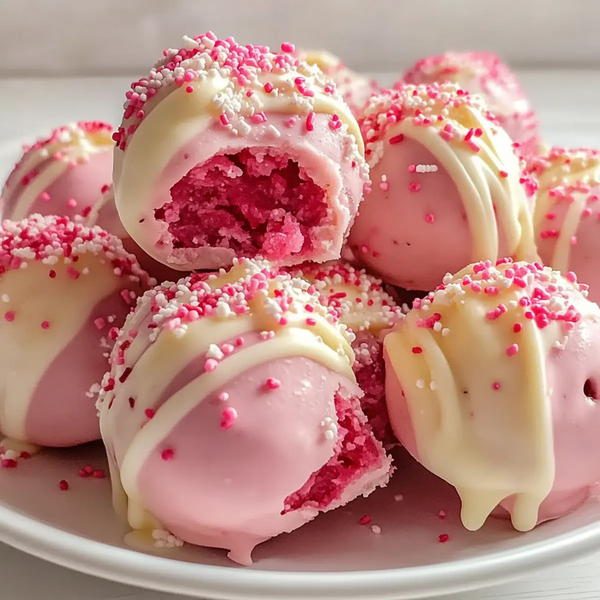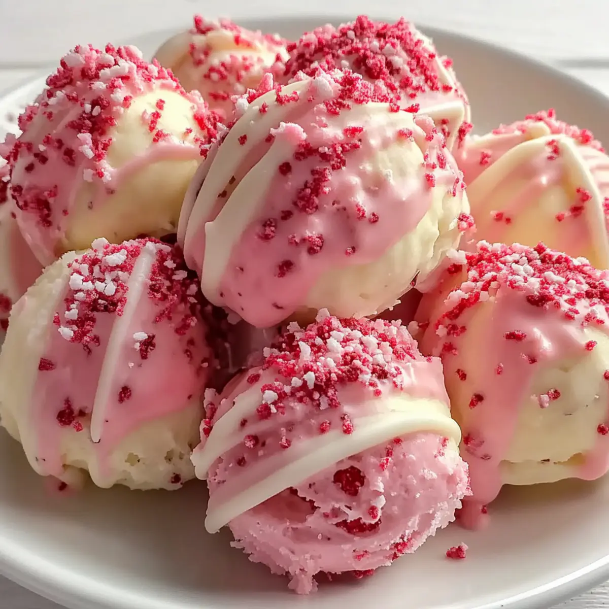 Facebook Twitter Pinterest LinkedInAs the sun streams through my kitchen window, the scent of soft vanilla cake fills the air, instantly whisking me back to carefree summer days spent in my grandmother’s garden. This nostalgic vibe inspired my creation of these delightful Strawberry Shortcake Truffles, a no-bake treat that’s both a crowd-pleaser and a canvas for your creativity. With just a few simple ingredients, you can transform ordinary cake and frosting into exquisite little indulgences that are perfect for everything from baby showers to afternoon tea with friends. The best part? They’re quick to prep, making them ideal for those of us who crave homemade goodness without the fuss. So, are you ready to dive into a world of strawberry sweetness? Let’s craft these charming treats together! Why are these truffles irresistible? No-Bake Convenience: These Strawberry Shortcake Truffles require no baking, allowing you to whip up a delightful dessert in no time. Endless Customization: Decorate them with your favorite toppings, from vibrant sprinkles to crushed freeze-dried strawberries, making each batch uniquely yours. Crowd-Pleasing Treat: Perfect for any gathering, these truffles are sure to impress guests at baby showers, parties, or as a sweet gift for loved ones. Nostalgic Flavor: Indulge in the classic taste of strawberry shortcake that will take you back to sweet summer memories with every bite. Quick Prep Time: Busy home cooks will appreciate how fast this recipe comes together, meaning you can enjoy homemade treats without the fuss. Strawberry Shortcake Truffles Ingredients For the Truffles Vanilla Cake – This forms the delightful base; a store-bought mix or homemade works well. Strawberry Frosting – Start with 3/4 cup for sweetness and moisture; adjust to taste for that perfect texture. Pink Candy Melts – Used for coating, these add a vibrant color; feel free to substitute with white chocolate if you prefer. Coconut Oil or Shortening – Helps thin the candy melts for a smooth coating; essential for achieving that perfect drizzle. Crushed Freeze-Dried Strawberries (optional) – Add these for texture and a burst of strawberry flavor without moisture affecting the truffles. Decorations (optional) – Sprinkles or extra crushed freeze-dried strawberries not only add visual appeal but also let you customize flavor. Step‑by‑Step Instructions for Strawberry Shortcake Truffles Step 1: Bake the Cake Preheat your oven to 350°F (175°C). Prepare a 9×13 inch baking pan by greasing it lightly. Bake the vanilla cake according to the package instructions or your favorite homemade recipe until a toothpick inserted in the center comes out clean, about 25-30 minutes. Let the cake cool completely in the pan before proceeding to the next step. Step 2: Crumble the Cake Once the cake has cooled, gently remove it from the pan and crumble it into fine crumbs using your hands or a food processor. Transfer the cake crumbs to a large mixing bowl. The texture should resemble sand, ensuring the base for your Strawberry Shortcake Truffles is light and airy, perfect for mixing with frosting. Step 3: Mix in the Frosting Add the strawberry frosting to the cake crumbs, combining them with a spatula or your hands until the mixture is well incorporated. Aim for a moldable consistency similar to play-dough—this means it should hold its shape when rolled into a ball. Feel free to adjust the amount of frosting based on your desired sweetness and texture. Step 4: Add Optional Freeze-Dried Strawberries If you choose to enhance your Strawberry Shortcake Truffles with texture, gently fold in the crushed freeze-dried strawberries. This adds a lovely crunch and intensifies the strawberry flavor without increasing moisture. Mix until evenly distributed throughout the truffle mixture for that extra burst of fruity goodness. Step 5: Shape the Truffles Using your hands, scoop out approximately 1-2 tablespoons of the mixture and roll it into smooth balls. The truffles should be uniform in size to ensure even coating later. Place the rolled truffles on a parchment-lined baking sheet, providing enough space between each ball to avoid sticking together during chilling. Step 6: Chill the Truffles Refrigerate the truffles for at least 30 minutes or place them in the freezer for 15 minutes to firm up. This step is crucial as it helps the truffles hold their shape during dipping. You’ll know they’re ready when they are cold to the touch and firm enough to handle without losing their shape. Step 7: Melt the Candy Coating In a microwave-safe bowl, combine the pink candy melts with coconut oil and heat in 30-second bursts, stirring in between until the mixture becomes smooth and glossy. The coconut oil ensures the candy melts easily adhere to the truffles, providing a beautiful and even coating. Aim for a consistency that’s pourable but not too runny. Step 8: Coat the Truffles Carefully dip each chilled truffle into the melted pink candy coating, ensuring an even coverage. Allow any excess coating to drip off before placing the truffle back onto the parchment-lined baking sheet. This step ensures that the coating is smooth and your Strawberry Shortcake Truffles have that beautiful look of a perfect treat. Step 9: Add Decorative Touches Before the candy coating sets, sprinkle your choice of decorations over the wet chocolate surface. Use colorful sprinkles or additional crushed freeze-dried strawberries to add visual appeal and extra flavor. These small touches personalize your truffles and make them stand out at any gathering. Step 10: Drizzle with White Chocolate Once the pink coating has set slightly, melt white chocolate in a separate bowl using the same microwave method. Once melted, use a fork or piping bag to drizzle the white chocolate over the coated truffles. This final touch not only enhances appearance but also adds a delightful contrast in flavor. Step 11: Final Setting Allow the decorated Strawbe