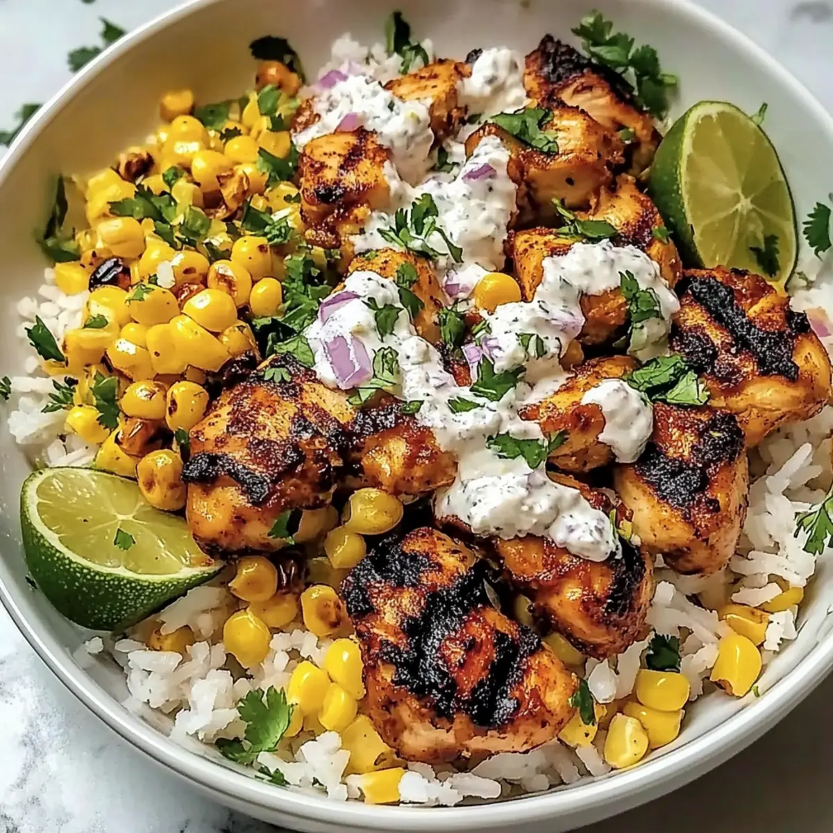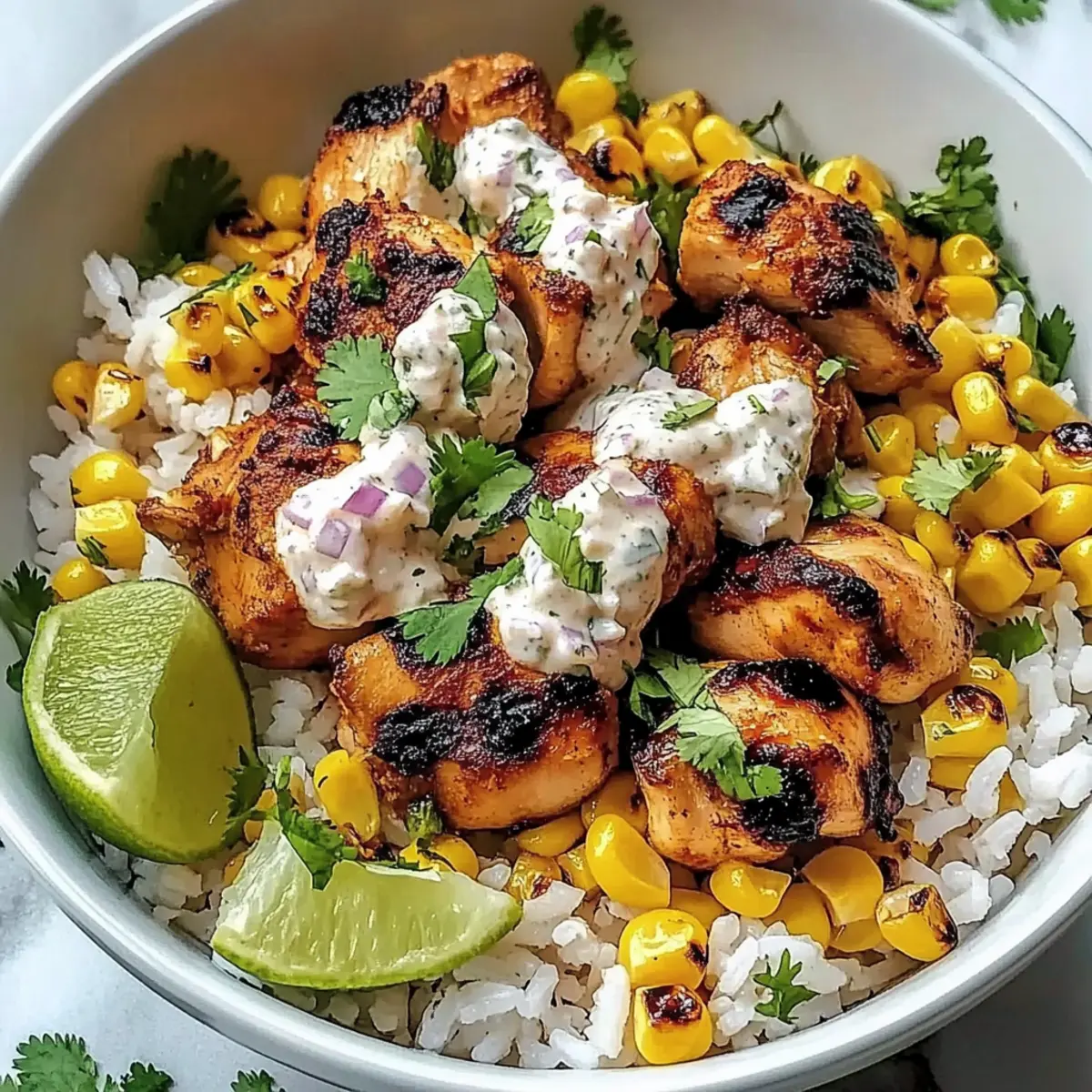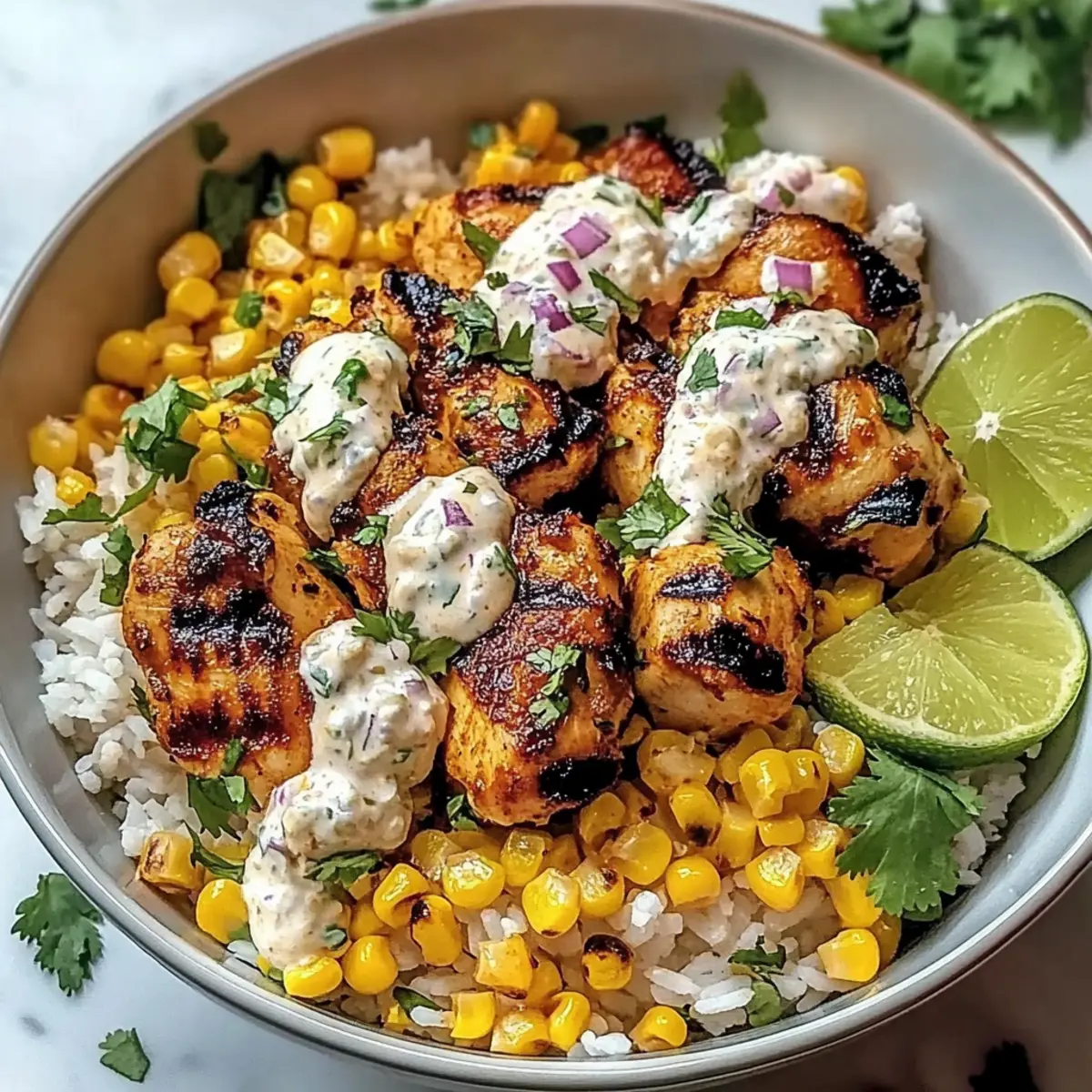 “It’s time to unleash your inner chef with a flavor-packed surprise! This Quick & Easy Street Corn Chicken Bowl blends the best of vibrant Mexican street food with the comforting familiarity of home cooking. Imagine juicy chicken, creamy corn, and fluffy rice coming together in just 30 minutes—a meal that’s not only family-friendly but also effortlessly adaptable. Whether you’re a busy parent or a home-cook seeking a simple yet delightful dish, this bowl has your back! The smoky and slightly spicy profile will leave you craving more, and trust me, it’s a fantastic way to make weeknight dinners feel special. Are you ready to dive into this culinary adventure?” Why Love This Street Corn Chicken Bowl? Quick & Easy: In just 30 minutes, you’ll have a flavorful meal that pleases both family and friends. Perfect for busy weeknights! Adaptable Recipe: Feel free to swap ingredients like chicken thighs with shrimp or tofu for a customizable experience you can enjoy countless ways. Decadent Flavors: The creamy corn mix topped with cotija cheese bursts with smoky, slightly spicy tastiness that truly elevates comfort food. Crowd-Pleaser: This dish is a fantastic way to impress guests, combining unique flavors and vibrant colors that look as good as they taste. Healthy Twist: By choosing brown rice or cauliflower rice, you can create a more nutritious option without sacrificing flavor. Try pairing it with Hawaiian Chicken Sheet for another delightful twist on dinner! Street Corn Chicken Bowl Ingredients Ready to whip up this delicious dish? Here’s everything you need! For the Chicken Boneless, Skinless Chicken Thighs – Provide rich flavor and juiciness; substitute with bone-in thighs if needed, adjusting cooking time. Freshly Squeezed Lime Juice – Adds brightness to the marinade; opt for bottled lime juice if fresh isn’t available. Avocado Oil – Used for marinating chicken; can be swapped with olive oil. Chili Powder – Adds spice and depth; can substitute with paprika for a milder flavor. Ground Cumin – Essential for a warm, earthy taste; no direct substitute recommended. Garlic Powder or Fresh Garlic – Enhances overall flavor; use according to preference. Salt & Ground Black Pepper – Essential seasonings; adjust to taste. For the Corn Mix Sweet Corn Kernels – The base for the corn mix; fresh or frozen works, but always thaw frozen corn before use. Sliced Red Onion – Adds crunch and sharpness; can be replaced with green onions for a milder taste. Sour Cream – Brings creaminess; substitute with Greek yogurt if desired. Mayonnaise – Adds richness; can be swapped with more sour cream or omitted. Cotija Cheese – Provides a salty, crumbly texture; feta can serve as an alternative. For Serving Prepared Rice – Serves as the base; can use brown rice or cauliflower rice for a healthier option. Fresh Cilantro Leaves – For garnish; optional based on personal preference. Lime Wedges – Essential for adding fresh zesty flavors; serve alongside for extra brightness. This vibrant Street Corn Chicken Bowl will not only delight your taste buds but also keep your kitchen buzzing with warm aromas. Happy cooking! Step‑by‑Step Instructions for Street Corn Chicken Bowl Step 1: Marinate Chicken In a mixing bowl, combine freshly squeezed lime juice, avocado oil, chili powder, ground cumin, garlic powder, salt, and black pepper. Add the boneless, skinless chicken thighs, coating them evenly. Cover the bowl and let it marinate in the refrigerator for 15 to 30 minutes, allowing the flavors to penetrate the chicken. Step 2: Cook Chicken Heat a large skillet over medium-high heat. Once hot, add the marinated chicken thighs and sear for 8 to 10 minutes on each side, cooking until they reach an internal temperature of 165°F and are golden brown. Once cooked through, transfer the chicken to a cutting board and let it rest for a few minutes before slicing. Step 3: Prepare Street Corn Mix In a separate bowl, combine sweet corn kernels, sliced red onion, sour cream, mayonnaise, crumbled Cotija cheese, chili powder, salt, pepper, and the remaining lime juice. Stir the mixture until well combined, ensuring all ingredients are evenly distributed and the corn is nicely coated in the creamy dressing. Step 4: Heat Rice While the corn mix takes shape, warm your prepared rice. You can either microwave it in a covered bowl with a splash of water for about 1-2 minutes or heat it on the stovetop over low heat. Stir occasionally until it’s warm and fluffy, ready to support the delicious layers of your Street Corn Chicken Bowl. Step 5: Assemble Bowls To serve, divide the warm rice among bowls as a base. Top each bowl with the sliced, seared chicken and a generous serving of the street corn mix. Finish with an extra sprinkle of Cotija cheese, fresh cilantro leaves for garnish, and lime wedges on the side for an added burst of zesty flavor. What to Serve with Quick & Easy Street Corn Chicken Bowl Elevate your dining experience with delightful accompaniments that complement the vibrant flavors of this delicious bowl. Warm Flour Tortillas: Perfect for scooping up the bowl’s goodness, adding a hearty touch to each bite. Seasoned Black Beans: Add a protein boost and a creamy texture that balances the bowl’s bright flavors. Zesty Guacamole: Creamy and smooth, it brings richness while enhancing the Mexican flavor profile. Fresh Pico de Gallo: A crisp and refreshing topping that adds a punch of flavor and contrast to the creamy corn mix. Chilled Avocado Salad: Refreshing with a hint of lime, it complements the smoky spices of the chicken beautifully. Crispy Fried Plantains: Sweet and savory, these add a satisfying crunch and a tropical flair to your meal. Cilantro Lime Rice: A zesty variation of rice that ties in seamlessly with the dish, emphasizing its key flavors. Margaritas or Hibiscus Iced Tea: A refreshing drink option, either tangy or slightly sweet, perfect for balancing the spice. Chocolat