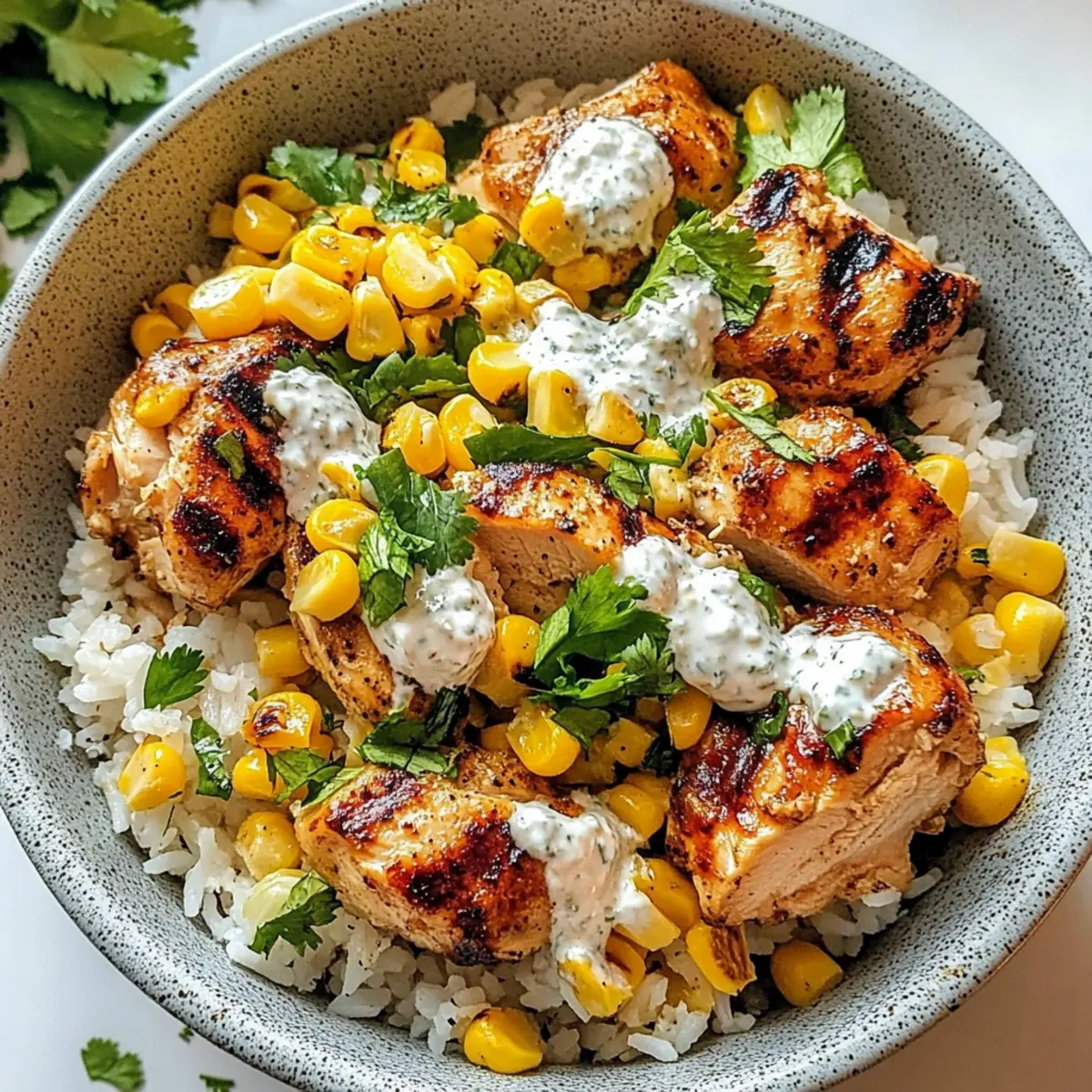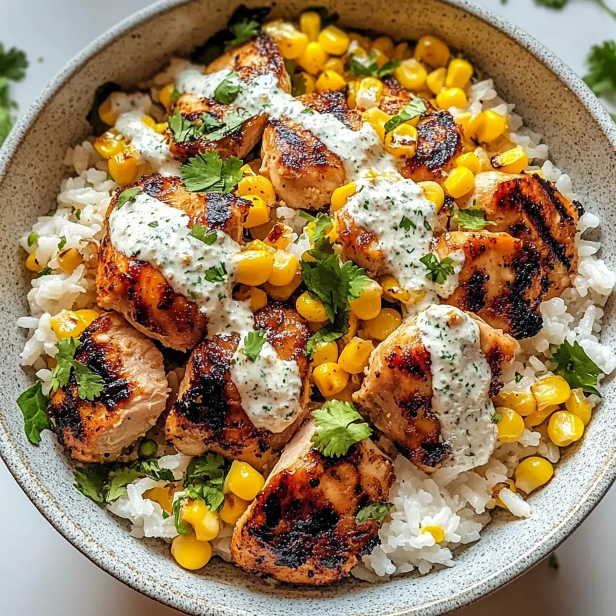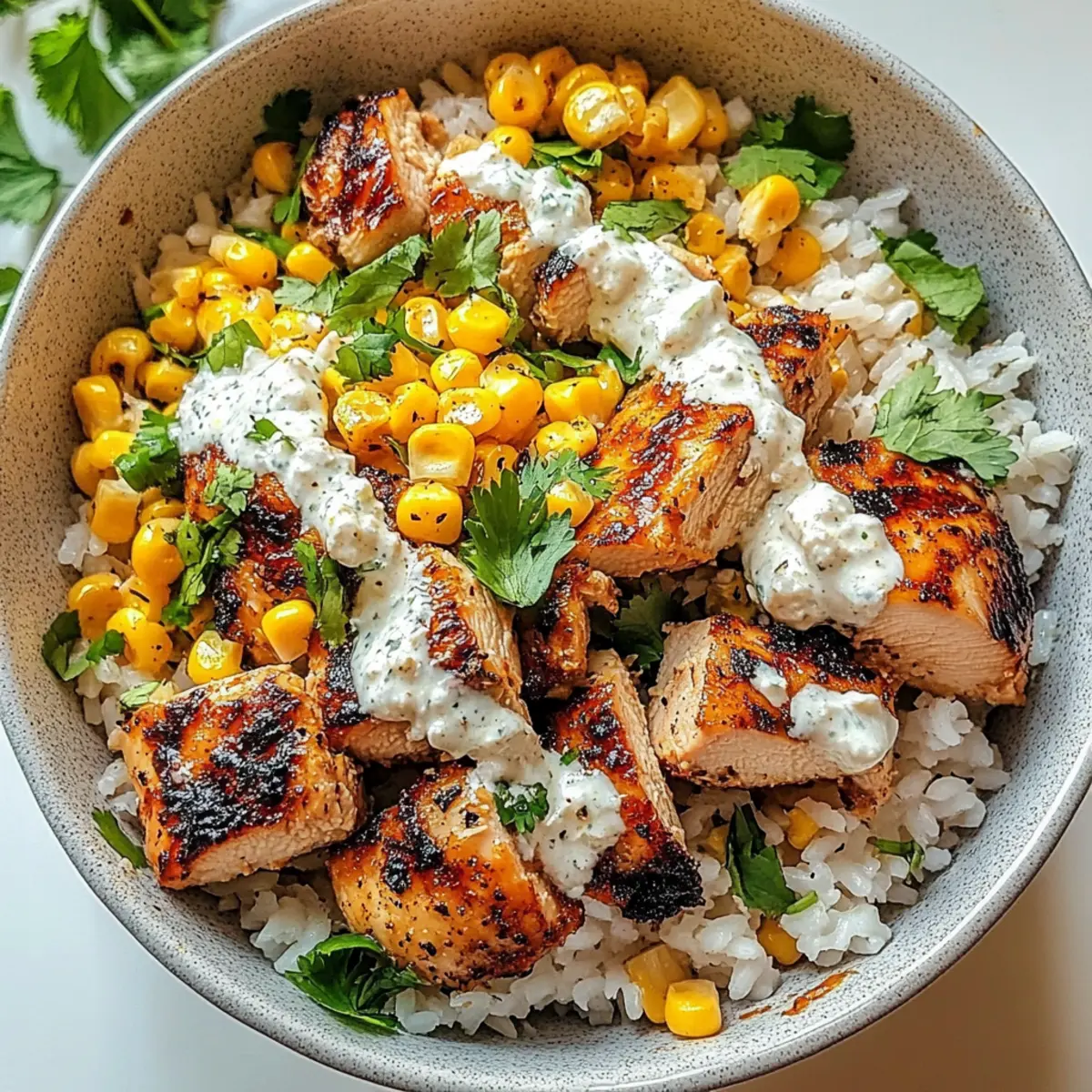 As I was experimenting in my kitchen one sunny afternoon, a delightful aroma filled the air, transporting me straight to the bustling streets of Mexico. That’s when I created the Easy Street Corn Chicken Rice Bowl, a dish that captures the essence of vibrant, homemade comfort food. Combining tender chicken thighs with smoky grilled corn and creamy Cotija cheese, this recipe not only pleases the palate but is also incredibly customizable. Perfect for those busy weeknight dinners or a relaxed weekend lunch, its quick prep makes it a go-to favorite in my home. Plus, the fun toppings let you get creative, ensuring that every bowl you serve can be uniquely yours. Are you ready to embark on a flavor adventure with me? Why is this bowl a must-try? Vibrant Flavors: This dish bursts with color and taste, blending succulent chicken with smoky grilled corn and zesty lime for an explosion of freshness. Customizable Delight: With its adaptable toppings, each bowl can be tailored to fit your unique cravings—try adding black beans or avocado for extra heartiness! Quick to Prepare: In just a few simple steps, you can whip up a satisfying meal that feels gourmet but is perfect for any weeknight dinner. Crowd-Pleaser: Its irresistible combination of textures makes it a hit with family and friends—imagine serving it at your next gathering alongside a refreshing side salad! Meal Prep Friendly: Not only does it taste fabulous, but leftovers can be easily stored for a speedy lunch the next day. Give it a whirl, and don’t forget to pair it with something like our Bbq Chicken Rice for a delightful meal combo! Street Corn Chicken Rice Bowl Ingredients For the Chicken Chicken Thighs – A juicy protein source that can be swapped with grilled shrimp or tofu for a lighter option. Lime Juice – Adds a bright acidity; go for fresh lime juice for the best flavor. Avocado Oil – Helps keep the chicken moist; substitute with olive oil if needed. Chili Powder – Infuses warmth; adjust based on your spice tolerance. Garlic Powder – Enhances the savory depth; fresh minced garlic works wonderfully too. Salt & Black Pepper – Essential for balancing flavors; taste and adjust to your liking. For the Corn Topping Corn Kernels – Sweet and textural; grilled corn brings a terrific smoky element, while canned corn saves time. Red Onion – Offers a pleasant crunch; swap with green onions for a milder flavor. Sour Cream – Provides a creamy contrast; Greek yogurt is a lighter alternative. Mayonnaise – Adds a rich creaminess; opt for vegan mayo if you prefer a dairy-free version. Cotija Cheese – Crumbles beautifully and adds saltiness; feta cheese is a great substitute. Fresh Cilantro – Complements the dish with herbal freshness; feel free to replace with parsley if desired. For the Base Rice (Jasmine or Brown) – A hearty foundation for your bowl; any cooked rice works, but jasmine delivers a lovely fragrance. Let your creativity shine with this Street Corn Chicken Rice Bowl and make it your own! Step‑by‑Step Instructions for Easy Street Corn Chicken Rice Bowl Step 1: Marinate Chicken In a large mixing bowl, combine lime juice, avocado oil, chili powder, garlic powder, salt, and black pepper. Add the chicken thighs to the marinade, ensuring they are well-coated. Cover the bowl and let the chicken marinate in the refrigerator for 15-30 minutes, allowing the flavors to penetrate and prepare for a flavorful grilling experience. Step 2: Cook Chicken Heat a skillet over medium-high heat, making sure it’s hot before adding the chicken. Cook the marinated chicken thighs for 8-10 minutes on each side, or until they are golden brown and reach an internal temperature of 165°F (75°C). When cooked through, remove the chicken from the skillet and let it rest, then slice it into strips for the bowl. Step 3: Prepare Corn Topping In a separate bowl, mix the grilled corn kernels with finely chopped red onion, sour cream, mayonnaise, Cotija cheese, and a sprinkle of chili powder. Stir until combined, then season with additional salt, pepper, and lime juice to taste. This vibrant corn topping adds a creamy and zesty layer to your Easy Street Corn Chicken Rice Bowl. Step 4: Reheat Rice While the chicken rests, reheat your cooked rice. Add it to a saucepan with a splash of water, then cover and warm it over low heat until fluffy, about 5-7 minutes. You can also use a microwave to heat the rice in short intervals, stirring between, until evenly warmed—this will create the perfect base for your colorful bowl. Step 5: Assemble Bowls To assemble your Easy Street Corn Chicken Rice Bowl, divide the fluffy rice among serving bowls. Top each bowl with sliced chicken strips and a generous scoop of the creamy corn mixture. Garnish with additional Cotija cheese, fresh cilantro, and lime wedges for a pop of color and flavor. Serve warm and enjoy! Storage Tips for Street Corn Chicken Rice Bowl Fridge: Store leftovers in an airtight container for up to 3 days. Cool the bowl completely before sealing to prevent excess moisture. Freezer: For longer storage, freeze the chicken and corn topping separately for up to 2 months. When ready to eat, thaw in the refrigerator overnight. Reheating: Gently reheat in the microwave or on the stovetop with a splash of water to avoid dryness, ensuring the chicken reaches a safe internal temperature of 165°F (75°C). Serving Suggestions: Freshly cut lime and additional toppings like avocado or cilantro can elevate the flavors when served warm, making your Street Corn Chicken Rice Bowl even more delightful! Make Ahead Options These Easy Street Corn Chicken Rice Bowls are perfect for meal prep enthusiasts looking to save time during busy weekdays! You can marinate the chicken thighs up to 24 hours in advance, allowing the flavors to really deepen—just remember to keep them refrigerated in an airtight container. Additionally, prepare the corn topping ahead of time and store it in the fridge for up to 