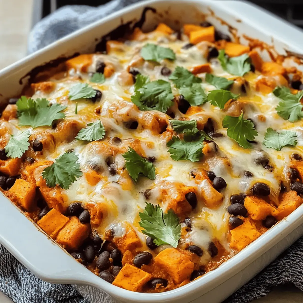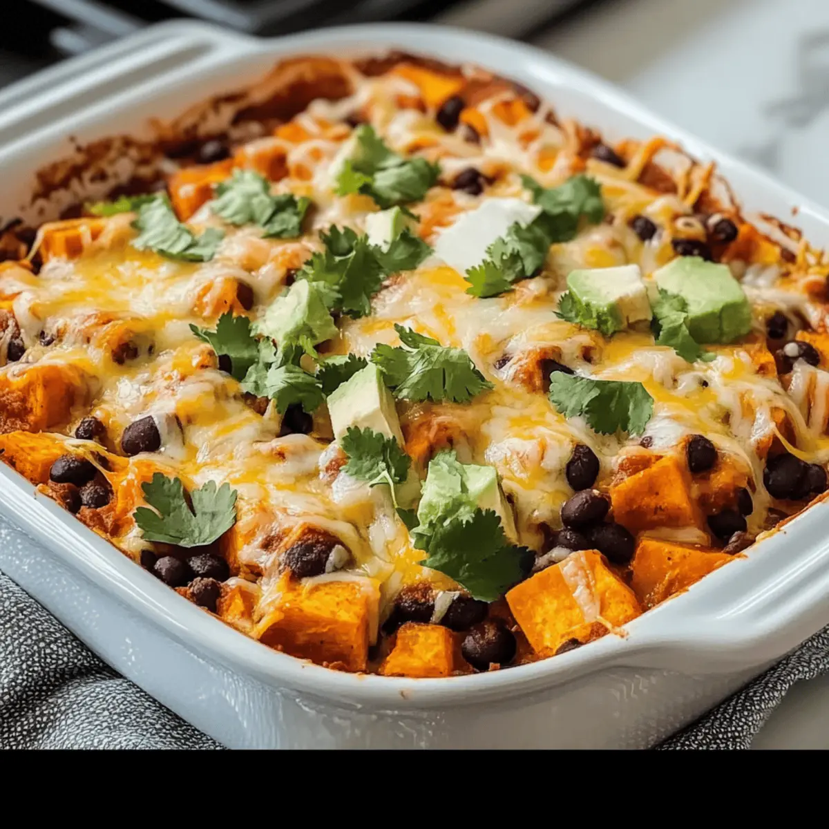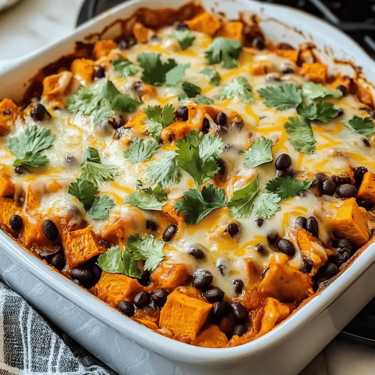 As I stood in my kitchen, the vibrant colors of sweet potatoes and black beans caught my eye, sparking an idea for a comforting weeknight meal. Enter the Sweet Potato and Black Bean Enchilada Casserole—a dish that not only satisfies the appetite but also nourishes the soul. This vegetarian delight combines the natural sweetness of tender sweet potatoes with hearty black beans, enveloped in a rich enchilada sauce and topped with melted cheese. The best part? It’s incredibly easy to prepare and perfect for beginners, making it a go-to recipe for busy evenings or casual gatherings. Packed with fiber and nutrients, this casserole provides a wholesome option to fill you up without feeling heavy. Curious about how to bring a touch of Southwest flavors to your dinner table? Let’s dive into this flavorful journey together! Why is this casserole a must-try? Incredibly Easy: This Sweet Potato and Black Bean Enchilada Casserole requires minimal effort, making it perfect for beginners or anyone needing a quick, tasty dinner solution. Bold Flavors: Combining the sweetness of sweet potatoes with savory black beans and zesty enchilada sauce creates a mouthwatering flavor explosion that delights every palate. Customizable: Feel free to swap ingredients! Change sweet potatoes for zucchini, or add in sautéed bell peppers to create a version that suits your taste. Nutritious Comfort: Packed with fiber and plant-based protein, this casserole keeps you full without the heaviness, making it a perfect weeknight meal. Crowd-Pleasing Appeal: Your family and friends will rave about this delicious dish, making it ideal for gatherings, along with favorites like Hobo Casserole Potatoes or Ground Beef Potatoes. Make-Ahead Friendly: Prep it ahead of time and keep it in the fridge—it’s great for busy days when you need a home-cooked meal ready to bake! Sweet Potato and Black Bean Enchilada Casserole Ingredients • Discover the essentials for an unforgettable casserole! For the Casserole Sweet Potatoes – Provide natural sweetness and a creamy texture; substitute with butternut squash for a different flavor profile. Black Beans – Add protein and fiber for a satisfying meal; canned or cooked varieties work well. Enchilada Sauce – Adds zest and moisture to the casserole; consider green enchilada sauce for a twist. Tortillas – Form the layers of the casserole; corn tortillas are traditional, but flour tortillas can also be used. Cheese – Melts over the top for a gooey finish; cheddar or Monterey Jack can be used, or swap with vegan cheese for a dairy-free version. Helpful Notes Ensure sweet potatoes are sliced thin for even cooking and soft texture. This Sweet Potato and Black Bean Enchilada Casserole can be prepped ahead of time and kept in the refrigerator! Step‑by‑Step Instructions for Sweet Potato and Black Bean Enchilada Casserole Step 1: Prep Ingredients Begin by preheating your oven to 375°F (190°C). While the oven warms up, peel and thinly slice 2 to 3 medium sweet potatoes to ensure they cook evenly. Rinse and drain one can of black beans, and have your enchilada sauce ready—either homemade or store-bought. Set out a baking dish, measuring approximately 9×13 inches. Step 2: Layer Casserole Start layering your Sweet Potato and Black Bean Enchilada Casserole in the prepared baking dish. Place four corn or flour tortillas at the bottom, slightly overlapping them. Add a layer of sweet potatoes, followed by black beans, a generous portion of enchilada sauce, and a sprinkle of cheese. Repeat this layering process two to three times, finishing with a last layer of cheese on top. Step 3: Bake Once assembled, cover your baking dish with aluminum foil to retain moisture, and place it in the preheated oven. Bake for 30 minutes, then carefully remove the foil. Continue baking for an additional 10 to 15 minutes, or until the casserole is bubbling and the cheese is golden and melted, signaling it’s ready to enjoy. Step 4: Cool and Serve After baking, remove the Sweet Potato and Black Bean Enchilada Casserole from the oven and let it cool for about 10 minutes before serving. This allows the layers to set and makes serving easier. Consider garnishing with fresh cilantro or avocado slices for an extra touch, and relish in the delightful flavors of your homemade dish! Expert Tips for Sweet Potato and Black Bean Enchilada Casserole Slice with Care: Ensure sweet potatoes are sliced thin, ideally 1/4 inch thick, for even cooking and a tender texture throughout the casserole. Layer Smart: Begin with tortillas at the bottom to prevent sogginess. Alternate layers with care, ensuring even distribution of beans and sauce for maximum flavor. Don’t Overbake: Keep an eye on baking times to avoid a dry casserole; look for bubbling and a golden cheese layer to indicate it’s perfectly cooked. Spice it Up: Enhance flavor by sprinkling in spices like cumin or chili powder between layers for a delightful kick in every bite of your Sweet Potato and Black Bean Enchilada Casserole. Cooling is Key: Allow the casserole to cool for about 10 minutes before serving; this helps the layers set better, making it easier to cut and serve without falling apart. What to Serve with Sweet Potato and Black Bean Enchilada Casserole Looking to create a well-rounded meal that complements the vibrant flavors of your casserole? Creamy Avocado Salad: Bright and creamy, this fresh salad balances the rich cheese and spices of the casserole, adding a refreshing crunch with every bite. Cilantro Lime Rice: Fluffy rice infused with zesty lime and fresh cilantro provides a tangy contrast, making each mouthful a delightful culinary experience. Charred Corn: Sweet, smoky charred corn adds a burst of flavor and texture that beautifully highlights the earthy notes from the black beans. Grilled Vegetables: A medley of seasonal veggies grilled to perfection will bring in rich, smoky flavors that harmonize with the casserole’s bold taste. Pico de G
