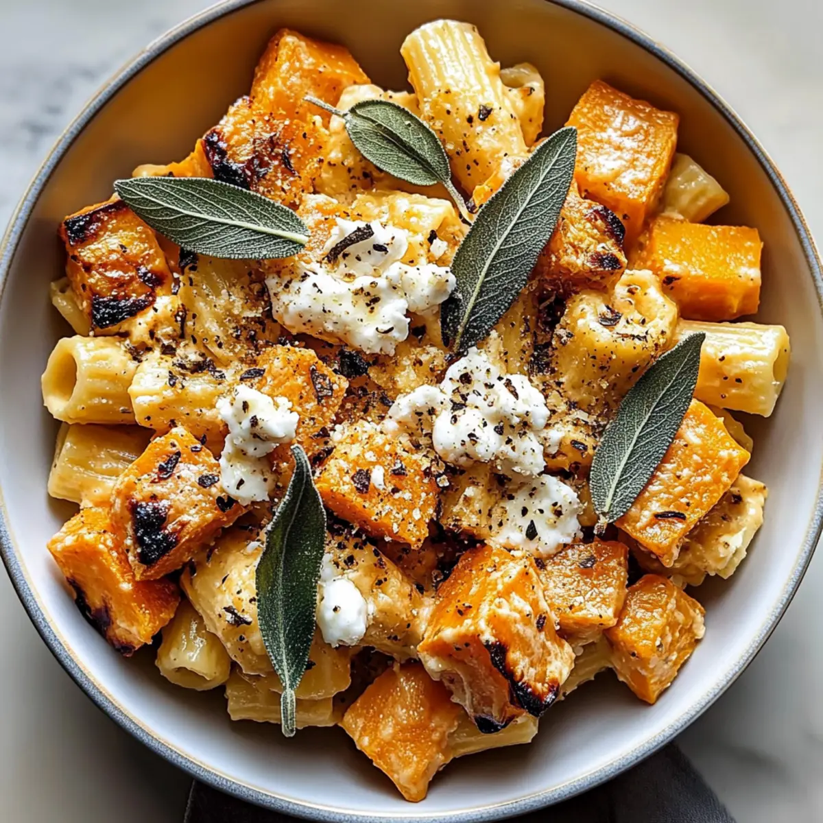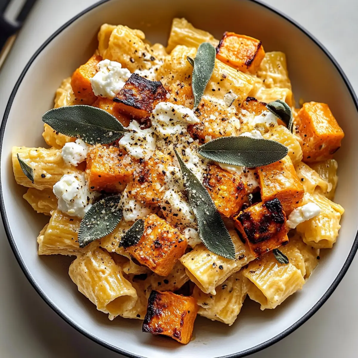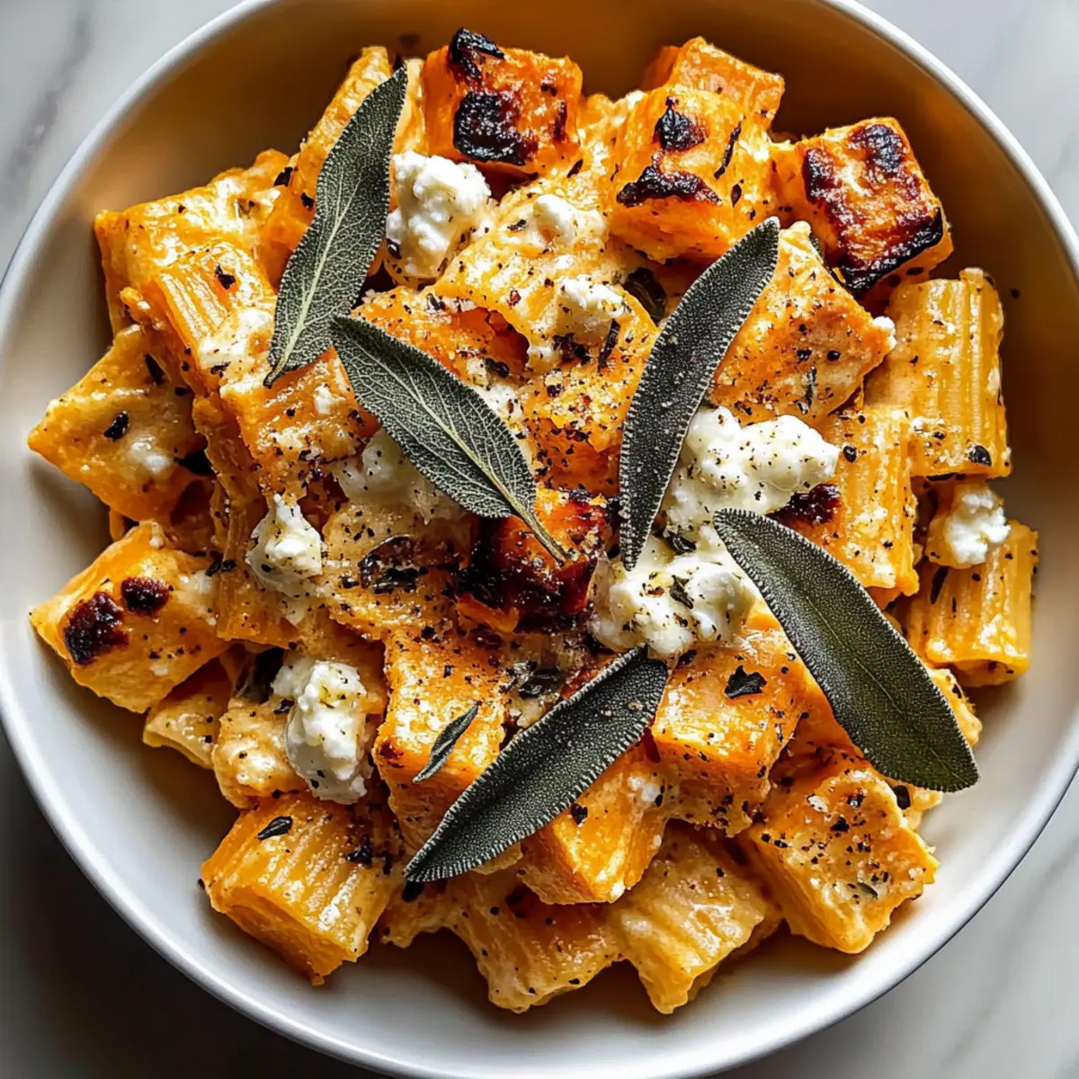 Facebook Twitter Pinterest LinkedIn“Did you ever find yourself staring at a pile of sweet potatoes, wondering how to turn them into something wonderfully delicious? That’s how this Creamy Sweet Potato Goat Cheese Sage Pasta came to life in my kitchen. With creamy goat cheese, a hint of sage, and the natural sweetness of roasted sweet potatoes, this dish effortlessly combines comfort and elegance. Perfect for cozy nights or impressing dinner guests, it offers a rich, velvety texture that feels indulgent yet is oh-so-simple to prepare. Plus, it’s incredibly versatile! Whether you’re looking for a quick weeknight meal, a make-ahead dish for gatherings, or a vegetarian delight, this recipe has got you covered. Can you already imagine the aromas wafting through your home?” Why is This Pasta So Irresistible? Comforting and Delicious: This dish combines the rich, creamy flavors of goat cheese with the natural sweetness of roasted sweet potatoes, creating a meal that feels both comforting and indulgent. Easy to Customize: Add your favorite veggies or swap in gluten-free pasta for a tailored experience. Consider pairing it with a crisp salad or some delicious Sausage Egg Cheese for a delightful spread! Perfect for Gatherings: Not only is it flavorful, but it also impresses guests without requiring elaborate cooking skills. Quick and Effortless: You’ll love how quickly you can whip it up—ideal for busy weeknights! Versatile Ingredients: Roasted sweet potatoes work beautifully with so many seasonal options. Try adding fresh corn in summer or serving it alongside a creamy Honey Pepper Cheese for an extra cheesy twist! Sweet Potato Goat Cheese Sage Ingredients For the Pasta Sweet Potatoes – Adds natural sweetness and creaminess when roasted; feel free to substitute with butternut squash or pumpkin for seasonal twists. Garlic – Enhances flavor depth; fresh minced garlic is best for an aromatic touch. Short Pasta (e.g., rigatoni, penne, fusilli) – Holds the creamy sauce well; opt for gluten-free pasta to cater to dietary needs. Heavy Cream – Ensures a rich, creamy sauce; consider plant-based cream for a vegan alternative. For the Sauce Goat Cheese – Provides a tangy, creamy element to the sauce; creamy ricotta or feta works well as a substitute. Unsalted Butter – Enhances flavor when frying sage leaves; optional for a vegan variation. Salt and Black Pepper – Essential for seasoning; adjust to taste for a well-balanced dish. Parmesan Cheese – Adds umami flavor; this ingredient is optional for serving. For the Sage Topping Fresh Sage Leaves – Adds herbal aroma and flavor; frying is essential for that delicious crispy texture. Olive Oil – Used for roasting and frying; drizzle more over pasta before serving for added richness. Crushed Red Pepper Flakes – Provides a hint of spice; this is optional for serving to customize the heat level. This delightful dish, featuring sweet potato, goat cheese, and sage, is sure to become a family favorite! Step‑by‑Step Instructions for Sweet Potato Goat Cheese Sage Pasta Step 1: Roast Sweet Potatoes Preheat your oven to 430°F (220°C). In a mixing bowl, toss diced sweet potatoes and minced garlic with olive oil, salt, and pepper until well-coated. Spread them on a baking sheet in a single layer. Roast for about 20-25 minutes, or until they’re tender and caramelized with golden edges, filling your kitchen with a mouthwatering aroma. Step 2: Cook Pasta While the sweet potatoes roast, bring a large pot of salted water to a boil. Add your short pasta, like rigatoni or penne, and cook according to package instructions until al dente, typically around 8-10 minutes. Reserve 2/3 cup of the starchy pasta water, then drain the pasta and set it aside, ready to join the creamy sauce. Step 3: Fry Sage Leaves In a skillet, heat a generous drizzle of olive oil and a tablespoon of unsalted butter over medium heat. Once the oil is shimmering, add fresh sage leaves to the skillet. Fry the sage for about 1-2 minutes, or until crisp and aromatic. Remove them from the skillet and place on paper towels to absorb excess oil, ensuring that they’re delightfully crispy for garnish. Step 4: Combine Vegetables Toss the roasted sweet potatoes, which should now be soft and fragrant, into the same skillet. Mash half of the sweet potatoes lightly with a fork while leaving the rest in chunks for added texture. This enhances the creamy base of your Sweet Potato Goat Cheese Sage Pasta, creating a delightful contrast to the crispy sage. Step 5: Finish Pasta Add the drained pasta to the skillet with the sweet potatoes, along with heavy cream and crumbled goat cheese. Pour in the reserved pasta water gradually, tossing everything together until the pasta is well-coated and creamy. Cook for another minute or so, allowing the heat to marry the flavors, and adjust the texture by adding more pasta water if needed. Step 6: Season and Serve Taste your creamy sweet potato goat cheese sage pasta and season with salt and black pepper according to your preference. Plate the pasta and top it with crispy sage leaves, a sprinkle of parmesan cheese if desired, and a drizzle of olive oil. For an extra kick, add crushed red pepper flakes before serving this comforting dish, perfect for any occasion. Storage Tips for Sweet Potato Goat Cheese Sage Pasta Fridge: Store leftovers in an airtight container for up to 3 days. Reheat gently in a skillet to maintain the creamy texture of the Sweet Potato Goat Cheese Sage dish. Freezer: If you want to enjoy this dish later, freeze individual portions of the sauce for up to 2 months. Thaw overnight in the fridge before reheating. Reheating: When reheating, add a splash of reserved pasta water to regain creaminess and avoid dryness. Stir often for an even heat distribution. Room Temperature: For best quality, don’t leave out for more than 2 hours; leftovers should be promptly refrigerated to ensure freshness. Expert Tips for Sweet Potato Goat