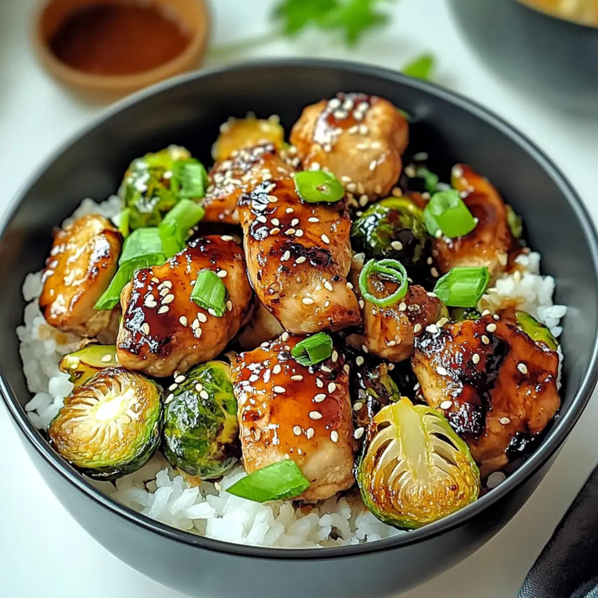 Enjoy Teriyaki Chicken Bowls with Crispy Brussels, a delicious and customizable dish packed with flavors.