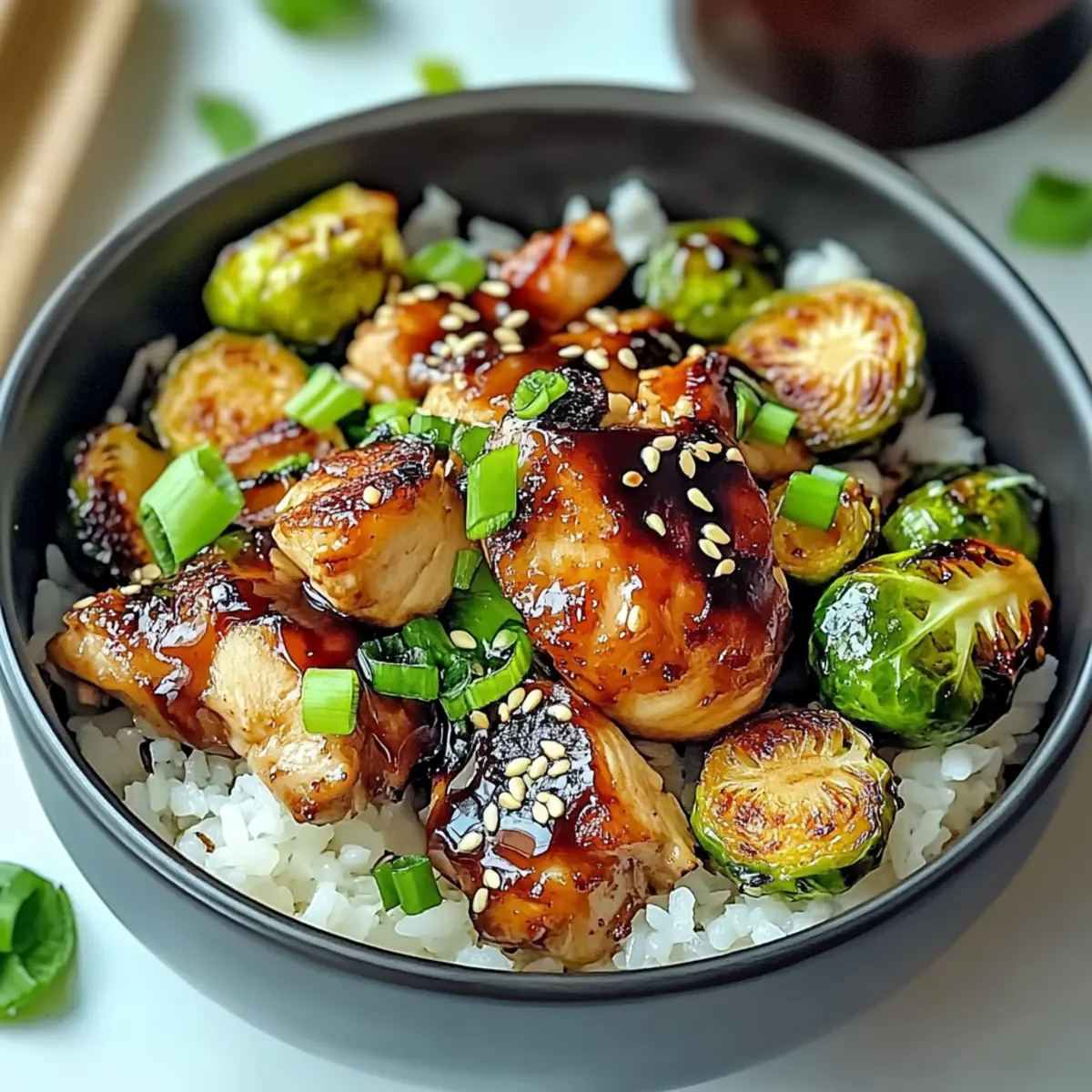 Delicious Teriyaki Chicken Bowls with Crispy Brussels Boosts Flavor