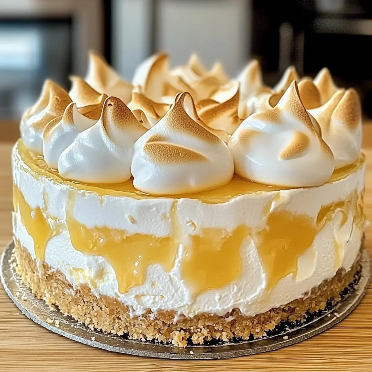 Facebook Twitter Pinterest LinkedInAs the sun streams through my kitchen window, I can’t help but smile at the vibrant yellow of the lemons waiting to be transformed into something spectacular. Today, I’m diving into the delightful world of Triple Lemon Meringue Cheesecake—a dessert that offers a zesty punch and a creamy texture that will leave you craving more. Not only is this cheesecake a crowd-pleaser for gatherings or special occasions, but it’s also remarkably easy to whip up, making it perfect for cooks of all skill levels. Trust me, this homemade treat is just the cheerful antidote we all need to bring brightness to our tables! Curious about how you can customize this recipe to make it your own? Let’s get started! Why is this cheesecake a must-try? Irresistible Flavor: The Triple Lemon Meringue Cheesecake delivers a tangy flavor explosion that dances on your palate, combining creamy lemon filling with zesty notes. Visual Showstopper: The fluffy, golden meringue topping creates an impressive look that makes this dessert perfect for celebrations and gatherings. Easy to Customize: This recipe allows for a splash of creativity – whether you opt for Baked Salmon Lemon on the side or twist the flavors with fresh berries, it’s adaptable to suit anyone’s taste. Quick Assembly: With straightforward steps and a relatively short prep time, this cheesecake will come together quicker than you think, making it less stressful for busy bakers. Texture Delight: The blend of the crunchy crust, creamy filling, and airy meringue offers an unparalleled textural experience that keeps you going back for seconds! Get ready to whip up a dessert that’s not only delicious but will also leave your guests raving about your culinary skills! Triple Lemon Meringue Cheesecake Ingredients For the Crust • Graham Cracker Crumbs – Forms the base for a delightful crunch; use crushed digestive biscuits or vanilla wafers as a swap. • Butter – Adds richness to the crust; melted butter makes for easy mixing. • Granulated Sugar – Sweetens the crust; a hint of brown sugar deepens its flavor. For the Filling • Cream Cheese – Provides a luxuriously creamy texture; go for full-fat for the best results. • Sour Cream – Adds tanginess and creaminess; you can substitute with plain yogurt for a lighter option. • Lemon Juice – The key to that vibrant flavor; always choose fresh lemons for the best taste. • Lemon Zest – Enhances that zesty kick; zesting first makes it easier when mixing. • Eggs – Necessary for setting the filling; opt for large, room-temperature eggs for even mixing. • Vanilla Extract – Boosts the overall flavor; pure extract is the way to go for the best taste. For the Meringue • Egg Whites – Crucial for creating that fluffy meringue; fresh whites ensure better stability. • Cream of Tartar – Helps stabilize the egg whites for a perfect structure in your meringue. • Granulated Sugar (Meringue) – Sweetens the meringue; add it gradually for the best texture. For the Lemon Curd • Egg Yolks – Contributes richness to the lemon curd; always use fresh, large yolks for optimal results. • Unsalted Butter (Lemon Curd) – Adds creaminess and richness to the curd. This Triple Lemon Meringue Cheesecake ingredients list will guide you in bringing this zesty wonder to life, ensuring your creation is a hit! Enjoy the baking journey! Step‑by‑Step Instructions for Triple Lemon Meringue Cheesecake Step 1: Preheat the Oven Start by preheating your oven to 325°F (160°C). This temperature is perfect for baking the graham cracker crust to that golden perfection we crave in our Triple Lemon Meringue Cheesecake. While the oven heats up, gather your ingredients and prepare your springform pan for the crust. Step 2: Make the Crust In a mixing bowl, combine graham cracker crumbs, melted butter, and granulated sugar until fully mixed. Press this mixture firmly into the bottom of your prepared springform pan, creating an even layer. Place it in the preheated oven and bake for 10 minutes, or until lightly golden. Allow it to cool completely while you prepare the filling. Step 3: Prepare the Filling In a large bowl, beat together cream cheese and granulated sugar until smooth and creamy. Gradually add in the eggs, mixing one at a time to integrate fully. Fold in the sour cream, fresh lemon juice, lemon zest, and vanilla extract, ensuring a well-combined, velvety filling for your Triple Lemon Meringue Cheesecake. Step 4: Bake the Cheesecake Pour the prepared filling over the cooled crust in the springform pan. For a gentle bake, place the cheesecake in a water bath, which helps prevent over-baking. Bake in the oven for 50-60 minutes, or until the filling is set but still slightly jiggly in the center. Once done, cool in the oven for 1 hour with the door slightly ajar, then refrigerate for at least 4 hours to fully firm up. Step 5: Make the Lemon Curd In a saucepan, whisk together the egg yolks, granulated sugar, fresh lemon juice, and lemon zest over medium heat. Stir continuously until the mixture thickens and coats the back of a spoon, about 10 minutes. Once thickened, remove from heat and stir in unsalted butter until melted and smooth. Let the lemon curd cool slightly before using it to top the cheesecake. Step 6: Prepare the Meringue In a clean mixing bowl, beat egg whites with cream of tartar on high speed until soft peaks begin to form. Gradually add granulated sugar, continuing to beat until stiff, glossy peaks arise. Ensure that your meringue is well-structured to perfectly crown your Triple Lemon Meringue Cheesecake. Step 7: Top the Cheesecake Spread a generous layer of lemon curd evenly over the chilled cheesecake. Then, dollop the prepared meringue on top, creating peaks and swirls for texture. This adds an adorable touch! Bake the topped cheesecake in a 350°F (175°C) oven for 10-15 minutes, or until the meringue turns golden brown, keeping a close eye to a