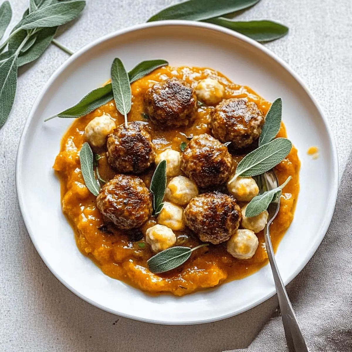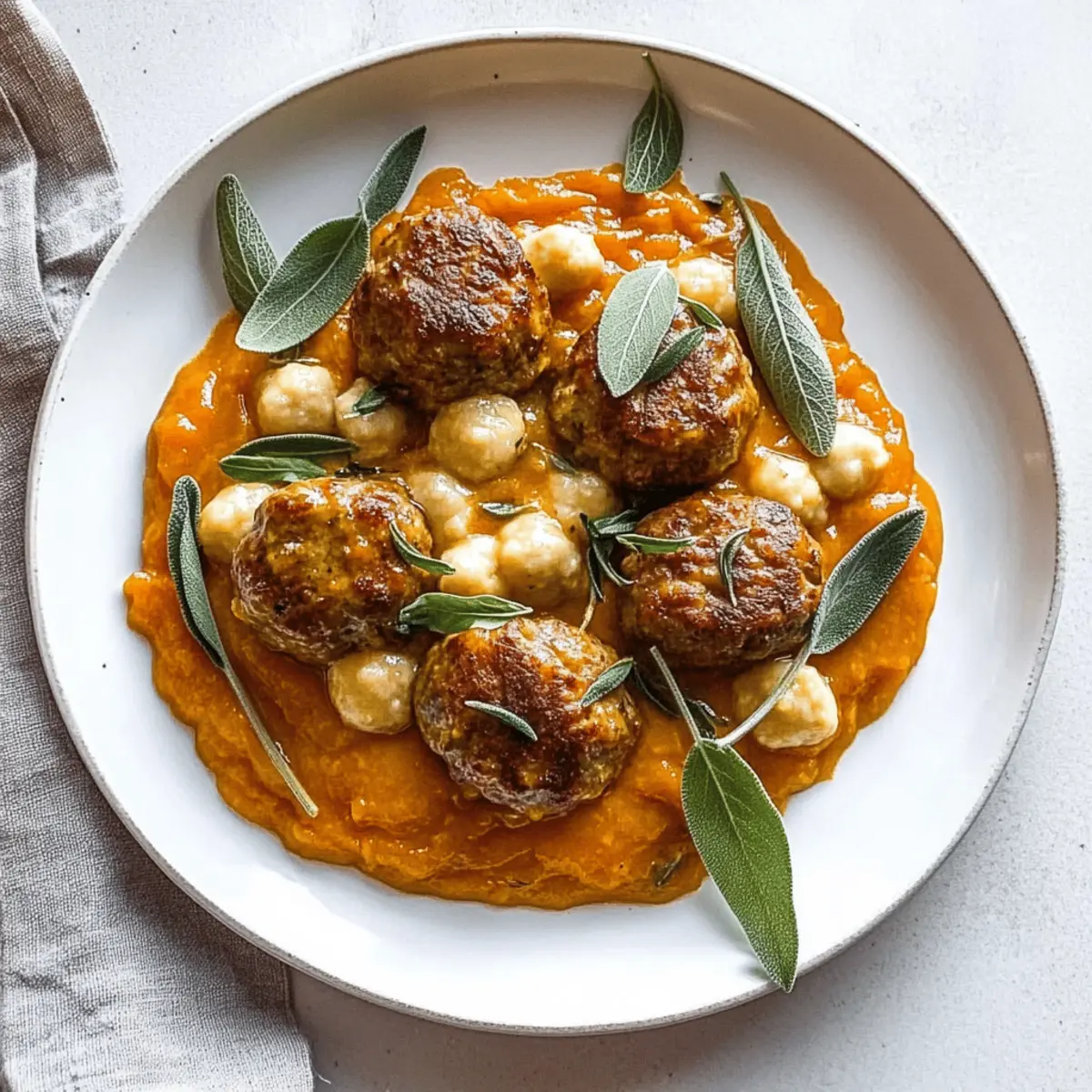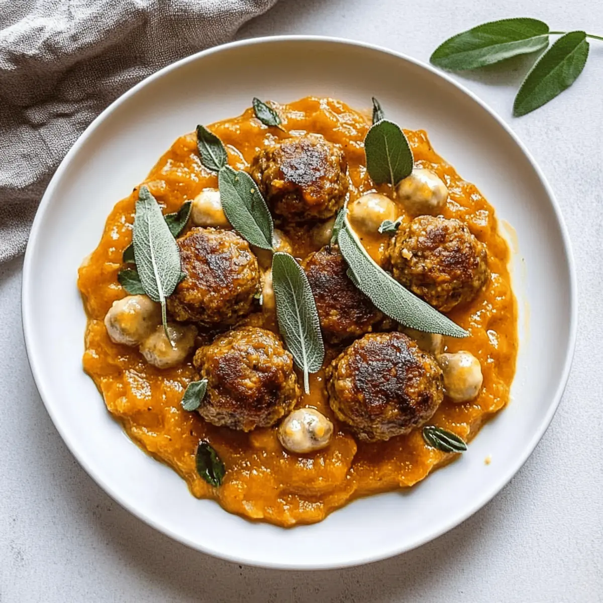 As the leaves turn and a crispness fills the air, I often find myself craving the cozy flavors of fall. These Savory Turkey Meatballs in Pumpkin Sage Sauce are the perfect antidote to those chilly evenings, elevating a comforting dish with seasonal ingredients that truly shine. With just a handful of simple steps, you’ll whip up comfort food that not only warms your heart but also nourishes your body. These tender, juicy turkey meatballs come enveloped in a rich, velvety sauce that feels like a warm hug. Plus, they’re a fantastic crowd-pleaser for family gatherings or cozy nights in. Curious about how to bring this autumn-inspired delight to your table? Let’s dive into the recipe! What makes this dish a fall favorite? Comforting, these turkey meatballs immerse you in the delightful tastes of autumn, with pumpkin and sage harmonizing beautifully. Nutritious and crafted with lean turkey, they provide a wholesome twist to your dinner routine. Easy to make, simply combine fresh ingredients for a delicious meal even the busiest home chefs will love. Versatile, they shine over your favorite pasta or mashed potatoes, appealing to a range of palates. Perfect for gatherings, this savory dish is sure to impress family and friends alike, making it a must-try this season! Turkey Meatballs in Pumpkin Sage Sauce Discover the heartwarming ingredients that make this dish irresistible! For the Meatballs Ground Turkey – Forms the base of the meatballs, ensuring a lean and flavorful protein source. Fresh Breadcrumbs – Adds moisture and texture, creating just the right bite. Milk – Soaks the breadcrumbs to keep the meatballs tender, but feel free to use non-dairy milk for a lactose-free option. Onion (finely minced) – Infuses aromatic depth, enhancing the overall flavor. Garlic (minced) – Introduces savory notes; garlic powder works in a pinch if you’re low on fresh garlic! Fresh Sage – Brings a distinct autumnal flavor, although dried sage can substitute if needed. Eggs (1 whole, 1 yolk) – Binds the meatball mixture together perfectly. Parmesan Cheese (grated) – Enriches the flavor; consider nutritional yeast for a dairy-free option. For the Sauce Pumpkin Puree (canned, organic) – The star of the sauce, providing creamy goodness and seasonal flavor. Heavy Cream – Adds richness; swap in coconut cream for a dairy-free delight. Italian Seasoning – Offers a complex flavor profile to the dish, but you can also use individual dried herbs for a personal touch. Unleash the deliciousness of Turkey Meatballs in Pumpkin Sage Sauce with these carefully selected ingredients that are sure to warm your heart and soul! Step‑by‑Step Instructions for Turkey Meatballs in Pumpkin Sage Sauce Step 1: Prepare the Meatball Mixture Begin by soaking fresh breadcrumbs in milk for about 5 minutes until they are soft. In a large mixing bowl, combine this breadcrumb mixture with ground turkey, finely minced onion, minced garlic, fresh sage, one whole egg, one egg yolk, and grated Parmesan cheese. Use your hands to gently mix the ingredients until just combined, taking care not to overmix. Step 2: Shape the Meatballs Lightly coat your hands with olive oil to prevent sticking, then scoop out portions of the turkey mixture and form them into golf ball-sized meatballs. Aim to create about 20–24 meatballs. Place each formed meatball on a clean surface or plate, ensuring they don’t touch each other, so they maintain their shape during cooking. Step 3: Cook the Meatballs Heat a large skillet over medium heat and add a couple of tablespoons of olive oil. Once the oil shimmers, gently add the meatballs to the pan in batches, cooking them for about 5 minutes on each side until they are golden brown and cooked through. Use a spatula to carefully turn them to achieve an even sear, ensuring each meatball reaches an internal temperature of 165°F. Step 4: Make the Sauce In a separate saucepan, add pumpkin puree, heavy cream, fresh sage, and Italian seasoning over medium heat. Stir continuously for about 3–4 minutes until the mixture is warmed through and well combined, creating a creamy sauce that has thickened slightly. Be mindful not to let it boil; you want a smooth and velvety texture. Step 5: Combine the Meatballs and Sauce Once the meatballs are finished cooking, transfer them into the saucepan with the pumpkin sage sauce. Gently stir to coat the meatballs evenly, then reduce the heat to low and let the mixture simmer for an additional 5 minutes. This allows the flavors of the Turkey Meatballs in Pumpkin Sage Sauce to meld beautifully, resulting in a comforting dish ready to be served. Turkey Meatballs in Pumpkin Sage Sauce Variations Feel free to get creative with these delicious turkey meatballs and make them your own! Ground Chicken: Swap ground turkey for ground chicken to enjoy a milder flavor while keeping the dish lean and healthy. Vegetable Boost: Incorporate finely chopped spinach or kale into the meatball mixture for an extra nutritional punch without sacrificing flavor. Pasta Perfection: Serve these meatballs over your favorite pasta or gnocchi for a heartier meal that will please the whole family. Scented Variance: Experiment with fresh herbs like thyme or rosemary in place of sage for a fragrant twist that adds depth. Gluten-Free Option: Use gluten-free breadcrumbs as a substitute for regular breadcrumbs; your meal can still be comforting and tasty! Noodle Nest: For an Asian-inspired dish, serve the meatballs atop rice noodles with a light soy or sesame sauce for a savory treat. Spice It Up: Add a pinch of red pepper flakes to the pumpkin sauce to introduce a warm, spicy kick that balances the creaminess. Slow Cooker Version: Combine all ingredients in a slow cooker and let it simmer on low for 6-8 hours for a set-it-and-forget-it approach, perfect for busy days. And if you’re looking to explore more flavor options, check out my recipes for Chicken Sauce Gochujang or a comforting Smothered