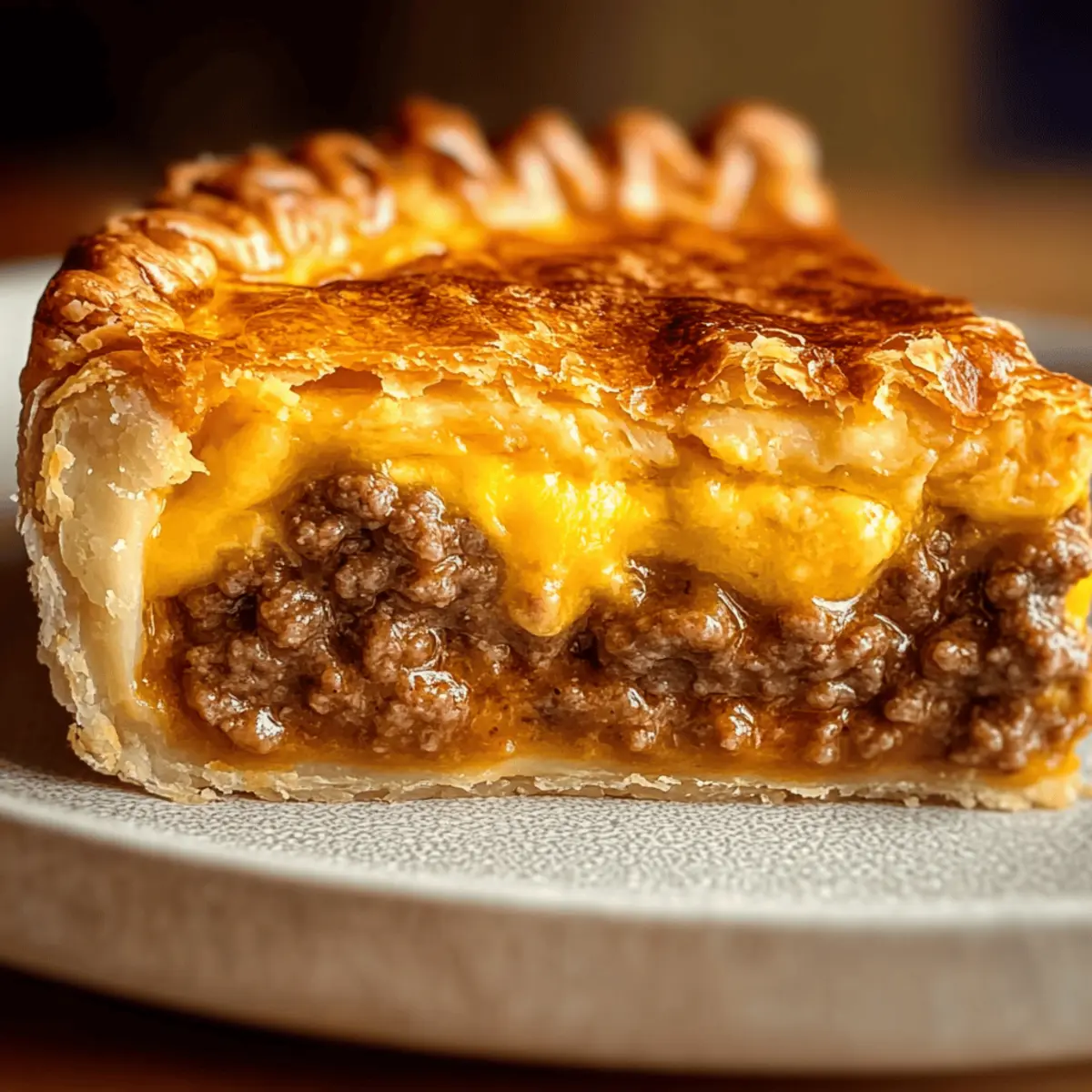 Every time I whip up this Ultimate Homemade Cheeseburger Pie, it feels like I’m inviting my loved ones into a cozy slice of nostalgia. Imagine a bustling kitchen where the aroma of seasoned ground beef mingles with melted cheese and a perfectly golden crust. This delightful dish transforms the classic cheeseburger into a comforting pie that’s not only family-friendly but also incredibly versatile. Whether you’re short on time or looking for a make-ahead meal, this recipe has your back. It’s freezer-friendly too, making it a great option for those busy weekdays when cooking feels like a chore. Want to learn how to whip up this heartwarming dish that’s sure to become a staple in your home? Let’s dive in! Why Choose This Cheeseburger Pie? Comfort in Every Bite: This Ultimate Homemade Cheeseburger Pie brings the classic flavors of a cheeseburger straight to your table in a warm, comforting pie. Versatile & Customizable: Swap in your favorite ground meats or cheeses for a unique twist—think pepper jack or turkey for a leaner option! Time-Saving Delight: Perfect for busy weeknights, it can be made ahead of time or frozen, allowing you to enjoy home-cooked magic without the hassle. Family-Friendly Fun: Kids and adults alike will love digging into this savory pie, creating memories with every delicious slice. Easy & Make-Ahead: Prep your filling earlier in the day or even freeze portions for those ultra-busy times—it’s as convenient as it is tasty! Pair it with a simple salad or some Garlic Bread Homemade for a complete meal that dazzles. Who wouldn’t love a nostalgic yet modern take on comfort food? Ultimate Homemade Cheeseburger Pie Ingredients For the Filling Ground Beef – The main protein that brings rich flavor; substitute with ground turkey for a lighter version. Onion – Adds sweetness and layers of flavor; shallots work well for a milder taste. Shredded Cheddar Cheese – Offers that creamy, melty goodness; swap in mozzarella or a spicy cheese blend for variety. Salt – Essential for enhancing flavors; no replacements needed here. Black Pepper – Provides a subtle kick; feel free to increase for more heat. Garlic Powder – Infuses the filling with aromatic flavor; use fresh minced garlic for a bolder taste. Worcestershire Sauce (optional) – Brings umami depth to the beef; soy sauce can be a suitable alternative. For the Crust Large Eggs – Acts as a binder for the crust; no substitutions are necessary. Milk – Contributes moisture and richness; non-dairy milk works for lactose-free options. All-Purpose Flour – Gives the crust its structure; a gluten-free flour blend can be a good alternative. Cooking Spray or Butter – Used for greasing the pan to ensure a clean release after baking; no substitutes are needed. Now that you have the ingredients ready, it’s time to bring your Ultimate Homemade Cheeseburger Pie to life! Perfect for comfort food cravings, this easy dish is sure to become a cherished family favorite. Step‑by‑Step Instructions for Ultimate Homemade Cheeseburger Pie Step 1: Preheat the Oven Start by preheating your oven to 400°F (200°C). This initial step is crucial for achieving that perfectly golden crust. While it’s heating up, you can prepare the filling, ensuring everything is ready to go when the time comes to bake. Step 2: Cook the Meat and Onions In a large skillet, over medium heat, cook 1 pound of ground beef and 1 chopped onion together until the beef is browned and the onions are soft—about 7-10 minutes. Make sure to stir occasionally and drain any excess fat for a cleaner taste. This savory base will make your Ultimate Homemade Cheeseburger Pie irresistible! Step 3: Season the Mixture Once the meat and onions are cooked, add salt, black pepper, garlic powder, and Worcestershire sauce to the skillet. Stir well and let these flavors meld together for an additional 2-3 minutes, ensuring that every bite of your filling is seasoned perfectly. The mixture should be fragrant and well combined. Step 4: Prepare the Pie Dish Take a 9-inch pie dish and generously grease it with cooking spray or butter to prevent sticking. Evenly spread the seasoned beef and onion mixture across the bottom of the dish, making sure to create a flat, even layer. This forms the hearty base of your cheeseburger pie. Step 5: Add the Cheese Sprinkle a layer of shredded cheddar cheese over the beef mixture, covering it generously. The cheese will melt beautifully during baking, creating that comforting gooeyness everyone loves in a cheeseburger. You can use about 1-2 cups of cheese, depending on your preference. Step 6: Make the Crust Mixture In a mixing bowl, whisk together 3 large eggs, 1 cup of milk, and 1 cup of all-purpose flour. Mix until smooth and lump-free, ensuring a creamy, well-blended batter that will become the crust. This mixture will pour over the beef and cheese, binding everything together in delicious harmony. Step 7: Pour the Mixture Carefully pour the crust mixture over the layered beef and cheese in the pie dish. Make sure it covers the filling evenly for consistent cooking and texture. The batter will set into a lovely, custardy crust as it bakes, keeping your Ultimate Homemade Cheeseburger Pie moist and flavorful. Step 8: Bake the Pie Place the pie dish in the preheated oven and bake for 25-30 minutes. You’ll know it’s done when the crust turns golden brown and the center is firm with no jiggle. Keep an eye on it to prevent over-baking while the tantalizing aroma fills your kitchen. Step 9: Cool and Serve Once baked, remove the pie from the oven and let it cool for about 5-10 minutes before slicing. This resting period helps the layers set up nicely, making it easier to cut perfect pieces. Serve your Ultimate Homemade Cheeseburger Pie warm for a delightful family meal everyone will adore! How to Store and Freeze Ultimate Homemade Cheeseburger Pie Fridge: Store leftovers in an airtight container for up to 3 days. This keeps your 