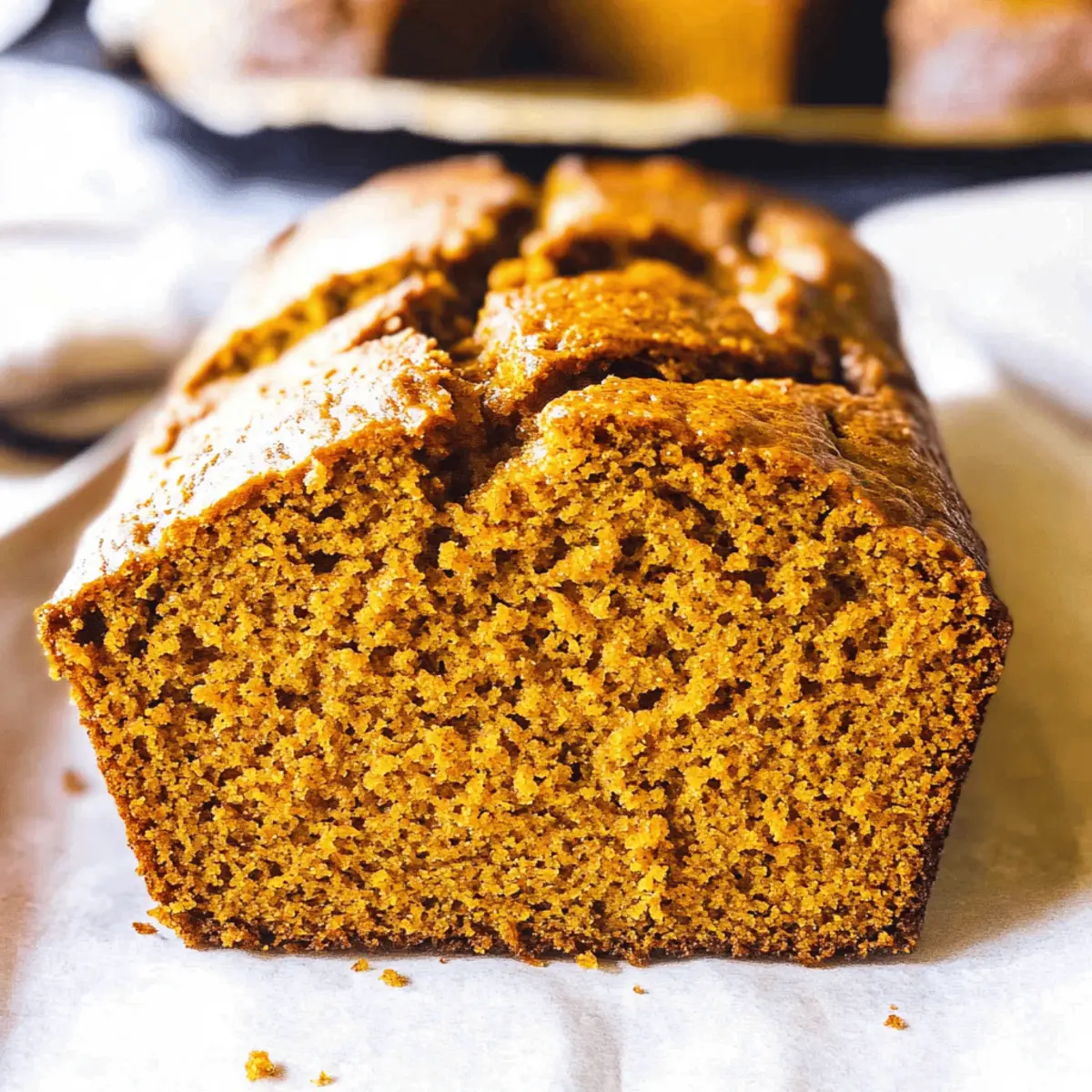 As the crisp air settles in and leaves begin to swirl, there’s something magical about baking a warm loaf of Vanilla Pudding Pumpkin Bread. With every stir, the fragrant aroma of pumpkin and spice wraps around me like a comforting hug, instantly transporting me to cozy fall afternoons. This delightful quick bread combines the sweet, creamy notes of vanilla pudding with rich pumpkin puree, creating a moist, cake-like texture that will have everyone coming back for seconds. Best of all, this recipe is not only easy to whip up in just an hour but also perfect for breakfast, snacks, or a satisfying dessert. Curious how to bring this seasonal treat to your kitchen? Let’s dive into the delicious details! Why is Vanilla Pudding Pumpkin Bread a Must-Try? Irresistible flavor combination: This recipe marries rich pumpkin puree with the sweet undertones of vanilla pudding, making every bite a delight. Quick and easy: With minimal prep and just one hour of baking time, it’s perfect for busy bakers. Versatile: Serve it for breakfast, as a snack, or a dessert, and it fits any occasion! Crowned with spices: The warmth of cinnamon and nutmeg ushers in the fall season beautifully. If you love cozy flavors, you might also enjoy Cheesy Garlic Bread or a slice of Vanilla Pound Cake. Moist texture: Thanks to the pudding mix, each slice is decadently soft and tender, enticing you for just one more piece! Vanilla Pudding Pumpkin Bread Ingredients • Dive into this delightful recipe with all the essentials you’ll need to create your scrumptious Vanilla Pudding Pumpkin Bread! For the Batter Vanilla Instant Pudding Dry Mix – Adds moisture and sweetness; essential for achieving that soft, tender texture. Pumpkin Puree – The star ingredient that provides rich flavor and moisture; be sure to use canned pumpkin puree, not pumpkin pie filling for the best results. All-Purpose Flour – Forms the backbone of your bread; feel free to substitute with gluten-free flour if needed. Baking Powder – Helps the bread rise, ensuring a fluffy texture; precise measurement is key to avoid bitterness. Pumpkin Spice – Infuses the batter with iconic fall flavors; a blend of cinnamon, nutmeg, and ginger will work wonders. Baking Soda – Fulfills its role as a leavening agent, helping the bread stay light and airy. Oil – Contributes moisture and richness; canola, sunflower, or vegetable oil are excellent choices. Eggs – Adds richness and binding; use large eggs for the best texture. Granulated Sugar – Sweetens the bread perfectly; consider using coconut sugar or any sweetener of your choice as a substitute. Optional Add-ins Chopped Nuts – Introduce a delightful crunch by folding in walnuts or pecans. Chocolate Chips – For those who crave a sweet twist, adding chocolate chips can elevate your bread even more! Step‑by‑Step Instructions for Vanilla Pudding Pumpkin Bread Step 1: Preheat the Oven Begin by preheating your oven to 350°F (175°C). This ensures a perfect baking environment for your Vanilla Pudding Pumpkin Bread. While the oven heats up, gather your ingredients and prepare your loaf pan by greasing it generously with oil or cooking spray, readying it for the thick batter that awaits! Step 2: Combine Wet Ingredients In a medium mixing bowl, whisk together the eggs, oil, and pumpkin puree until smooth and well-blended. This mixture forms the flavorful base of the bread, so make sure there are no lumps. The vibrant color of the pumpkin puree should be evenly distributed, creating a vibrant orange hue that’s a pleasure to behold. Step 3: Add Sugar Next, stir in the granulated sugar until thoroughly incorporated into the wet ingredients. This step adds sweetness and balances the flavors of the pumpkin puree. The mixture should feel slightly thicker and look glossy, providing a beautiful contrast to the rich, warm tones of the pumpkin. Step 4: Combine Dry Ingredients Now, layer the dry ingredients—flour, baking powder, baking soda, and pumpkin spice—carefully on top of the wet mixture. Gently stir everything together until just combined. Be careful not to over-mix, as this can lead to a dense loaf. You want a thick batter that shows some small lumps but is evenly moistened. Step 5: Add Optional Ingredients If you desire extra flavor or crunch, fold in optional ingredients like chopped nuts or chocolate chips at this stage. Gently incorporate them into the batter, ensuring they are evenly distributed without overworking the mixture. This step can elevate your Vanilla Pudding Pumpkin Bread by adding a delightful texture and taste. Step 6: Pour and Bake Transfer the thick batter into your prepared loaf pan, smoothing the top with a spatula for an even bake. Place it in the preheated oven and bake for about 60 minutes. You’ll know it’s ready when a toothpick inserted into the center comes out clean, and you can smell that irresistible pumpkin aroma filling your kitchen. Step 7: Cool Once baked, allow the Vanilla Pudding Pumpkin Bread to cool in the pan for 15 to 30 minutes. This resting period helps the loaf set, making it easier to remove. After cooling, gently release the bread from the pan and allow it to cool completely on a wire rack, ensuring that every slice retains its moist texture. What to Serve with Vanilla Pudding Pumpkin Bread As you savor the heartwarming slices of this delightful quick bread, complement your experience with thoughtful pairings that accentuate its fall flavors. Creamy Butter: Spread a generous layer of butter on warm slices to enhance the comforting taste, making each bite melt in your mouth. Maple Syrup Drizzle: A drizzle of sweet maple syrup adds depth, perfectly contrasting the moist pumpkin bread with a touch of indulgence. Spiced Whipped Cream: Top with homemade spiced whipped cream for a luxurious dessert, ideal for elevating your coffee break or afternoon snack. Hot Apple Cider: Enjoy a warm cup of spiced apple cider alongside, capturing the essence of autumn 
