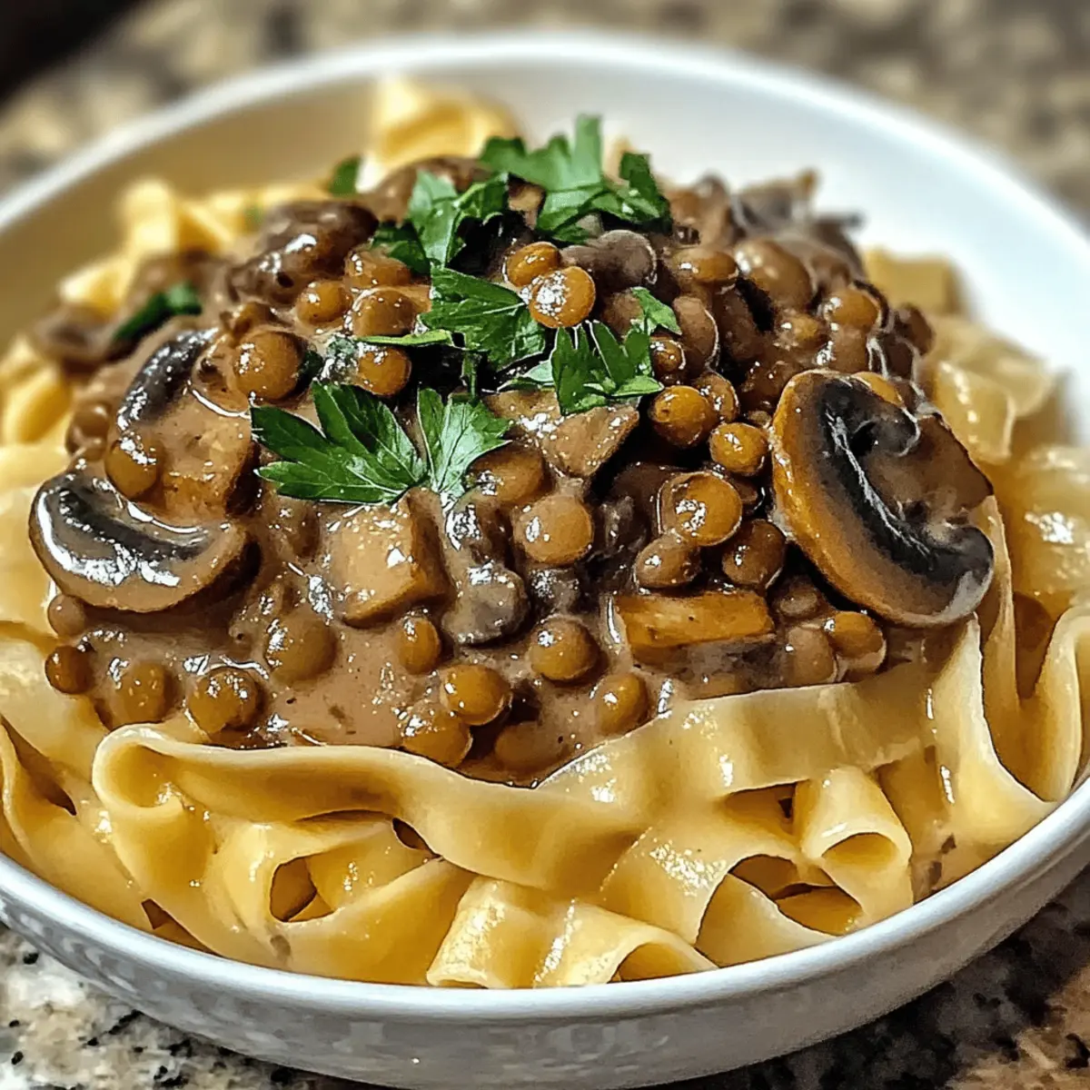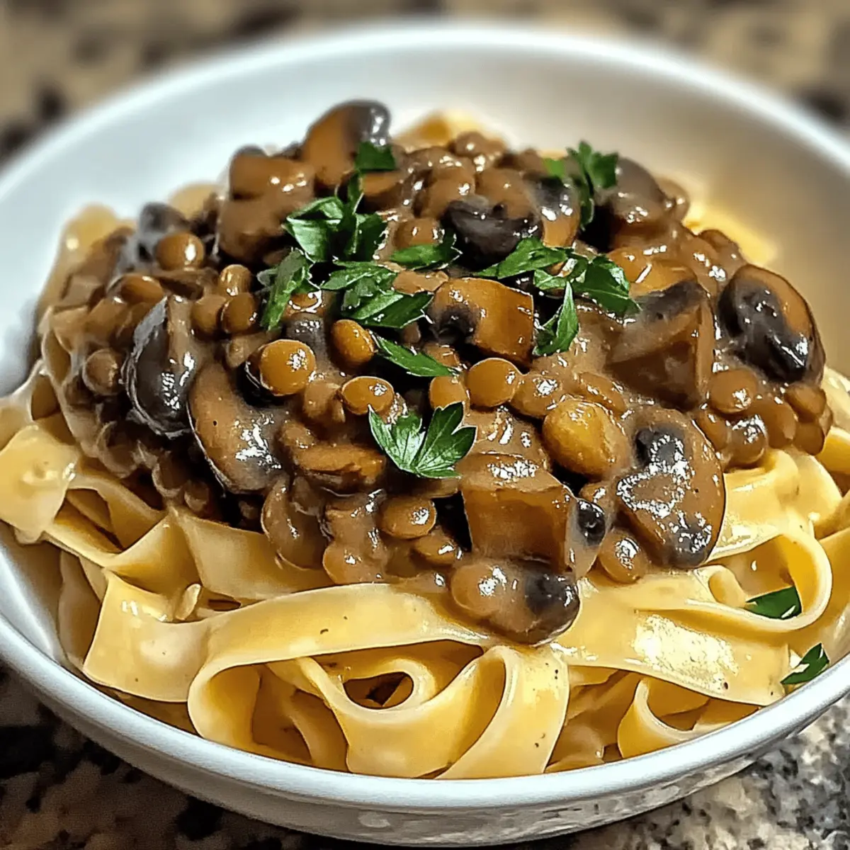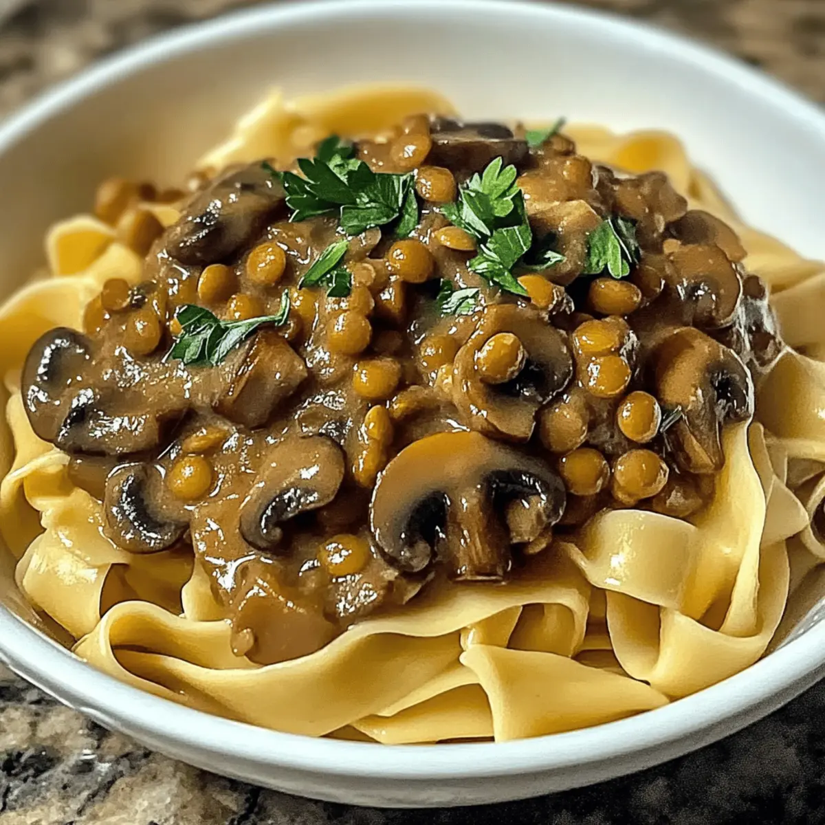 As I stood in my kitchen, the scent of sautéed mushrooms filled the air, instantly transporting me to cozy evenings spent with loved ones around the dinner table. This Creamy Vegan Lentil Mushroom Stroganoff is my go-to comfort food that captures the essence of home-cooked meals while embracing a plant-based lifestyle. Packed with hearty green lentils and rich, earthy flavors, it serves as a satisfying alternative to heavy traditional stroganoff. One of the best perks? It’s not only a crowd-pleaser but also comes together in under 30 minutes—perfect for those busy weeknights when you crave a wholesome meal without the fuss. So, are you ready to indulge in this creamy delight that will leave you feeling nourished and satisfied? Why is this stroganoff a must-try? Indulgent Creaminess: The silky texture of this Vegan Lentil Mushroom Stroganoff is sure to delight your taste buds, replicating the comforting essence of the traditional dish without the dairy. Quick and Easy: In just under 30 minutes, you can create a wholesome meal that fits perfectly into your busy schedule. Healthy Comfort Food: Packed with protein and fiber from green lentils, this recipe provides a nutritious yet satisfying option for any night of the week. Versatile Ingredients: Feel free to customize it with your favorite mushrooms or pasta types—gluten-free options included! Consider adding a splash of white wine for an extra depth of flavor. Crowd-Pleasing Flavor: Serve it to friends and family; this creamy creation is bound to impress even the pickiest eaters. Don’t forget to pair it with a light side salad for a complete meal! Vegan Lentil Mushroom Stroganoff Ingredients For the Pasta • Fettuccine Pasta – Serves as the base for the creamy sauce; gluten-free options work well too. For the Stroganoff • Green Lentils – A hearty protein source; cook until tender but not mushy for the best texture. • Olive Oil – Used for sautéing; you can substitute with avocado or vegetable oil as needed. • Onion – Builds the flavor foundation; shallots can be used for a milder taste. • Garlic – Adds an aromatic kick; fresh garlic is perfect, but garlic powder works in a pinch. • Cremini Mushrooms – Provides an earthy, umami flavor; consider shiitake or a mix of mushrooms for extra depth. • Soy Sauce – Enhances savoriness; try tamari for gluten-free or coconut aminos for soy-free options. • Smoked Paprika – Adds sophistication; regular paprika can be used for a milder taste. • Dried Thyme – Contributes herbal notes; fresh thyme offers a brighter flavor. • Vegetable Broth – Creates depth and consistency in the sauce; homemade broth provides richer flavor. • Unsweetened Plant-Based Yogurt – Acts as a creamy base for the sauce; ensure it’s unsweetened to avoid clashes. • Salt and Pepper – Essential for seasoning; adjust to taste for optimal flavor. Feel free to experiment with these ingredients to create your perfect Vegan Lentil Mushroom Stroganoff! Step‑by‑Step Instructions for Vegan Lentil Mushroom Stroganoff Step 1: Cook the Fettuccine Begin by bringing a large pot of salted water to a boil. Add the fettuccine pasta and cook according to the package directions until al dente, usually around 8-10 minutes. Once done, reserve a cup of the pasta water, then drain the pasta and set it aside in a large serving bowl, ready to be topped with the rich Vegan Lentil Mushroom Stroganoff. Step 2: Prepare the Lentils While the pasta cooks, rinse and drain the green lentils, then place them in a medium saucepan. Cover them with water and simmer for about 20-25 minutes over medium heat until they are tender but not mushy. Once cooked, drain any excess water and set the lentils aside to fold into the stroganoff later. Step 3: Sauté the Onions In a large skillet, heat 2 tablespoons of olive oil over medium heat. Add the chopped onion and sauté for about 5 minutes until it becomes translucent and fragrant. Stir occasionally to ensure even cooking and avoid browning, as this forms the flavorful base of your Vegan Lentil Mushroom Stroganoff. Step 4: Cook the Mushrooms and Garlic Add the minced garlic and sliced cremini mushrooms to the skillet. Cook for another 8-10 minutes, stirring frequently until the mushrooms turn golden brown and release their moisture. The aroma will be irresistible—this step is crucial for developing the rich flavor characteristic of a good stroganoff. Step 5: Add Seasonings Once the mushrooms are perfectly sautéed, stir in 2 tablespoons of soy sauce, 1 teaspoon of smoked paprika, and 1 teaspoon of dried thyme. Mix well and let the flavors meld for about 2 minutes. This seasoning blend will elevate your Vegan Lentil Mushroom Stroganoff and deepen the overall flavor profile, creating that beloved umami taste. Step 6: Create the Sauce Pour in 1 cup of vegetable broth and bring the mixture to a gentle simmer. Let it cook for about 5 minutes, allowing the broth to reduce slightly and the flavors to concentrate. Stir occasionally, ensuring nothing sticks to the bottom of the pan, and prepare for the final creamy addition to your stroganoff. Step 7: Combine Ingredients Reduce the heat to low and gently fold in the cooked lentils, along with ½ cup of unsweetened plant-based yogurt. Stir until everything is well combined and heated through, about 3-5 minutes. This combination yields a creamy sauce that envelops the lentils and mushrooms, making this Vegan Lentil Mushroom Stroganoff truly comforting. Step 8: Adjust Seasoning and Serve Taste and adjust the seasoning with salt and pepper according to your preference. If the sauce is too thick, stir in a bit of the reserved pasta water until you reach your desired consistency. Spoon the creamy stroganoff over the fettuccine and toss gently to combine before serving to create a delightful meal. Step 9: Garnish and Enjoy To finish this comforting dish, garnish the Vegan Lentil Mushroom Stroganoff with fresh parsley if desired. T