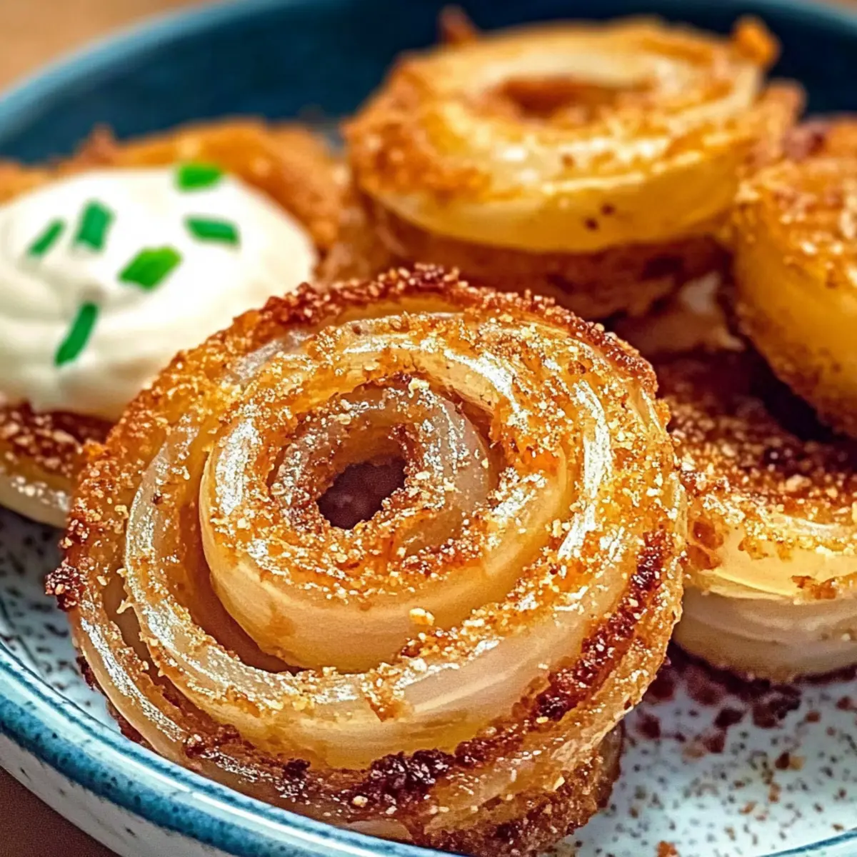 Facebook Twitter Pinterest LinkedInAs I sift through my favorite TikTok cooking hacks, I stumbled upon a game-changer: Viral Parmesan Onion Rings. When I first tried these Baked Keto Onion Rings and experienced that ultra-crispy, cheesy coating, I knew I had to share the magic. Not only do they offer the satisfying crunch of traditional onion rings without the carbs or deep frying, but they also require minimal prep time, making them a perfect last-minute snack! Plus, they’re utterly customizable, allowing you to experiment with different cheeses and spices to suit your taste. So, are you ready to satisfy your cravings while keeping it keto-friendly in the most delicious way? Let’s dive into making these irresistible rings together! Why Are These Onion Rings So Irresistible? Crispy Texture: Baked to perfection, these rings deliver an epic crunch that rivals any deep-fried option, all while staying keto-friendly! Cheesy Goodness: The Parmesan cheese not only acts as a breading substitute but elevates the flavor, making each bite savory and satisfying. Quick and Easy: With minimal prep time, you’ll have a snack ready in under 30 minutes, perfect for spontaneous cravings or busy weekdays. Endlessly Customizable: Feel free to swap in different cheeses or spices; try a hit of chili flakes for extra heat or use Italian Seasoning for herby notes. Crowd-Pleaser: Serve these as a fun appetizer at parties, or enjoy them solo as a tasty snack; everyone will be begging for seconds! Viral Parmesan Onion Rings Ingredients For the Onion Rings • White Onions – Use 2 medium-sized onions sliced into ¼-inch thick rings for the best texture and flavor. • Shredded Parmesan Cheese – This acts as the perfect breading substitute, ensuring a crispy crust when baked. • Salt – Essential for enhancing flavor; adjust to taste for a balanced experience. • Garlic Powder – Adds a wonderful aromatic depth; skip it if you prefer no garlic. • Paprika – Gives a mild smokiness and vibrant color; swap with cayenne for a spicy kick. • Italian Seasoning – An optional addition for an herby flavor boost that complements the dish beautifully. For Serving (Optional) • Ranch Dressing – A classic dip that pairs wonderfully with the savory flavors of the onion rings. • Guacamole – Adds a creamy contrast and keeps the dish keto-friendly while enhancing the flavor profile. Step‑by‑Step Instructions for Viral Parmesan Onion Rings Step 1: Preheat the Oven Start by preheating your oven to 400°F (200°C). While the oven warms up, line a large baking sheet with parchment paper. This not only prevents sticking but also ensures your Viral Parmesan Onion Rings get that delightful crispy texture. Step 2: Slice the Onions Peel and slice the two white onions into ¼-inch thick rings for the best results. It’s helpful to use a mandoline slicer if you have one; this ensures uniformity and even cooking. Arrange them on a cutting board, making sure to keep them separate for easy dipping later. Step 3: Create Cheese Molds On the parchment-lined baking sheet, scoop about 1 tablespoon of finely shredded Parmesan cheese and form it into small circles, leaving adequate space between each mold. Each Parmesan circle will serve as a delicious base for your onion rings, contributing to that crispy exterior once baked. Step 4: Assemble the Rings Take one onion ring and gently place it atop each Parmesan circle. Then, top each onion ring with another tablespoon of shredded Parmesan, pressing down lightly to ensure it adheres well. This layering technique helps create a beautiful, crunchy crust on your Viral Parmesan Onion Rings. Step 5: Seasoning Time Sprinkle your assembled rings generously with salt, garlic powder, paprika, and Italian seasoning if desired. This step adds incredible flavor, and you should visually check that the cheese is evenly coated. Feel free to adjust the spices based on your taste preferences for the ultimate flavor bomb! Step 6: Bake to Perfection Slide your baking sheet into the preheated oven and bake for 15-20 minutes. Keep an eye on your Viral Parmesan Onion Rings as they cook; you’re looking for a deep golden brown color around the edges. This is where they’ll get perfectly crunchy! Step 7: Cool for Crunch After baking, remove the onion rings from the oven and let them cool on the baking sheet for about 10-15 minutes. This cooling time is crucial, as it helps the rings firm up even more, ensuring that ultra-crispy bite you’re craving. Step 8: Serve and Enjoy Once cooled, your Viral Parmesan Onion Rings are ready to serve! Pair them with keto-friendly dips like ranch or guacamole for an added touch of flavor. Enjoy them fresh for the best taste, and watch them disappear quickly from the plate! What to Serve with Ultra-Crispy Baked Keto Onion Rings Elevate your snack game and create a complete meal that perfectly complements these crispy delights! Creamy Guacamole: Smooth and rich, guacamole offers a luscious contrast to the crunchy texture of the onion rings, creating a delicious dip that enhances every bite. Keto Ranch Dip: A classic pairing! This tangy, herby ranch dip brings a zesty flavor that balances well with the savory onion rings, making them even more irresistible at parties. Spicy Jalapeño Poppers: Bold and cheesy, these poppers add a spicy kick that pairs beautifully with the mildness of the onion rings, creating a mini appetizer feast. Zucchini Fries: With a light crunch and subtle flavor, zucchini fries provide a fresh and healthy option that complements the cheesiness of the onion rings wonderfully. Cauliflower Buffalo Wings: Spicy, tangy, and oh-so-satisfying, these wings add a bold flavor profile that contrasts perfectly with the savory onion rings. An ideal combo for heat lovers! Coleslaw Salad: A refreshing, crunchy slaw brings brightness to the table, cutting through the richness of the crispy onion rings while adding a crunch of its own. Lemonade or Iced Tea: