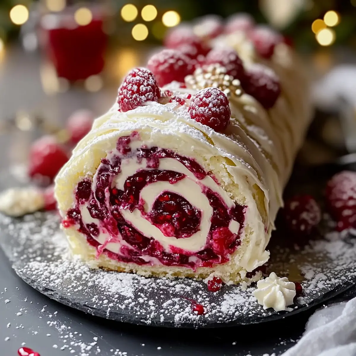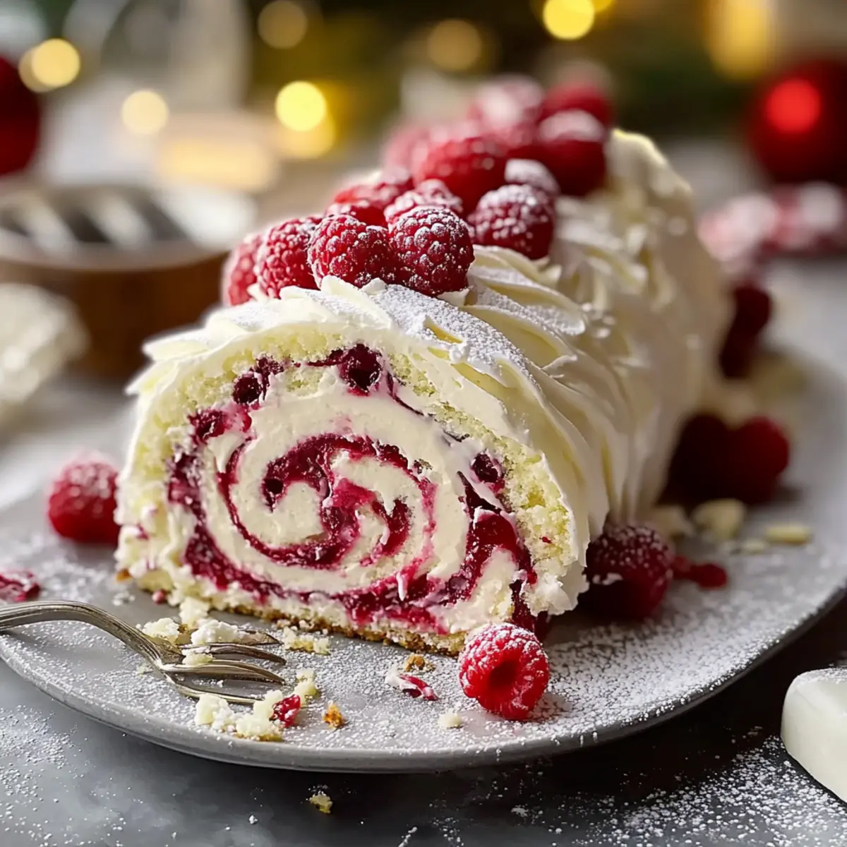Facebook Twitter Pinterest LinkedInAs I hovered over the gleaming countertop, my heart raced at the thought of creating a stunning centerpiece for our holiday gathering. The recipe for a White Chocolate Raspberry Yule Log danced in my mind, practically calling my name. This delightful dessert combines the creamy indulgence of white chocolate with the tangy sweetness of fresh raspberries, making it the ideal festive treat for any occasion. Not only is it surprisingly simple to whip up, but it also transforms any gathering into a special celebration while being vegetarian-friendly. Imagine serving each guest a slice, revealing that beautiful swirl of raspberry sauce against the light sponge, instantly making you the star of the evening. Ready to add a touch of elegance to your holiday table? Let’s dive in! Why choose a Yule log dessert? Indulgent Flavor: The combination of creamy white chocolate and tart fresh raspberries creates a delightful contrast that will tantalize your taste buds. Eye-Catching Presentation: Each slice reveals a gorgeous spiral of vibrant raspberry sauce, making it a stunning centerpiece for your holiday table. Effortlessly Elegant: Surprisingly simple to prepare, this recipe elevates your festivities without demanding extensive baking skills. Vegetarian-Friendly: Perfect for everyone at your gathering, this dessert is a guilt-free option that deliciously caters to a variety of dietary preferences. Make Ahead: Prepare it in advance for stress-free entertaining; it actually tastes better after a day in the fridge! Crowd-Pleasing Appeal: Impress your guests with this showstopper that’s sure to be the highlight of any dessert spread—especially with a side of extra raspberry sauce or fresh berries! You can also explore other options like our delightful Red White Blue Finger Jello or No-Bake Cookies for more festive ideas. White Chocolate Raspberry Yule Log Ingredients For the Sponge • Eggs – Provide structure and moisture; fresher eggs yield better volume. • Granulated Sugar – Adds sweetness and stability; can substitute with coconut sugar for a less refined option. • All-Purpose Flour – Creates the sponge’s structure; gluten-free flour can substitute for a gluten-free version. • Baking Powder – Helps the sponge rise; ensure freshness for best results. • Vanilla Extract – Adds flavor depth; you can use almond extract for a distinct profile. • Salt – Enhances sweetness and balances flavors. For the Filling • White Chocolate – Primary flavor and decadence; substitute with dark chocolate for a richer taste. • Mascarpone Cheese – Creates the creamy filling texture; regular cream cheese can be used as an alternative. • Heavy Cream – Whipped to lighten the filling; coconut cream can be used for a dairy-free option. For the Raspberry Sauce & Decoration • Fresh Raspberries – Provide tartness and make for a beautiful decoration; frozen raspberries can be used if fresh are unavailable. • Powdered Sugar – For dusting decoration and adding a sweet finish. This delicious White Chocolate Raspberry Yule Log is sure to be the highlight of your festive gatherings! Step‑by‑Step Instructions for White Chocolate Raspberry Yule Log Step 1: Prepare the Sponge Begin by preheating your oven to 350°F (175°C). In a large mixing bowl, use an electric mixer to beat 4 eggs and ¾ cup of granulated sugar until the mixture becomes pale and fluffy, about 5–7 minutes. Gently fold in 1 cup of all-purpose flour, 1 teaspoon of baking powder, and a pinch of salt until just combined, being careful not to deflate the batter. Step 2: Bake Line a jelly roll pan (15×10 inches) with parchment paper, ensuring to leave some paper overhanging for easy removal. Pour the sponge batter evenly into the prepared pan and smooth it out gently. Bake in the preheated oven for approximately 12–15 minutes or until the top is lightly golden and springs back when touched. Step 3: Cool and Roll Once baked, remove the sponge from the oven and let it cool in the pan for about 5 minutes. Carefully invert the sponge onto a clean kitchen towel dusted with powdered sugar. Start rolling the sponge from one short side of the towel, rolling it up tightly while it is still warm to prevent cracking. Let it cool completely in this rolled shape. Step 4: Make the Filling In a mixing bowl, melt 6 ounces of white chocolate in the microwave in 30-second intervals, stirring until smooth. In another bowl, beat 8 ounces of mascarpone cheese until smooth; add the melted white chocolate and mix well. Gently fold in 1 cup of whipped heavy cream until combined, creating a light and fluffy filling for your White Chocolate Raspberry Yule Log. Step 5: Prepare Raspberry Sauce For the raspberry sauce, blend 1 cup of fresh raspberries in a food processor until smooth. Strain the blended raspberries through a fine-mesh sieve to separate the seeds, collecting the vibrant raspberry sauce in a bowl. This sauce will add both flavor and a beautiful swirl to your festive log. Step 6: Assemble Once the sponge has cooled, carefully unroll it from the towel. Spread the white chocolate filling evenly over the sponge, leaving a small border around the edges. Drizzle the raspberry sauce across the filling, then carefully roll the sponge back up, starting from the same edge, creating a beautiful log shape. Step 7: Chill Wrap the assembled White Chocolate Raspberry Yule Log tightly in plastic wrap and refrigerate for at least 1 hour. This chilling time allows the flavors to meld beautifully and helps set the filling, making it easier to slice when ready to serve. Step 8: Serve and Enjoy Once chilled, remove the log from the refrigerator, unwrap it, and dust with more powdered sugar for a festive finish. Slice the yule log into portions, revealing the lovely spiral of white chocolate and raspberry filling. Serve chilled with extra raspberry sauce on the side for a delightful experience. What to Serve with White C