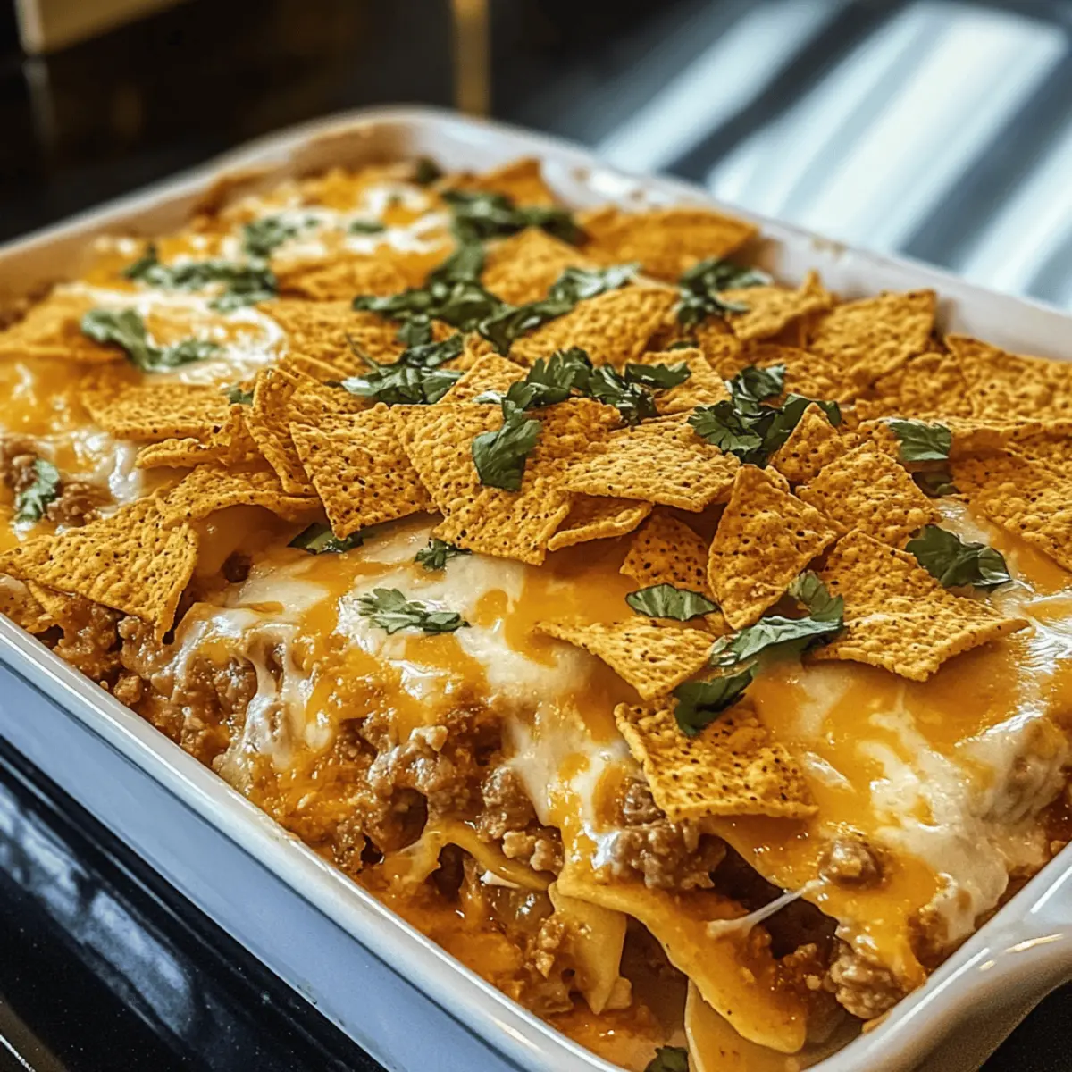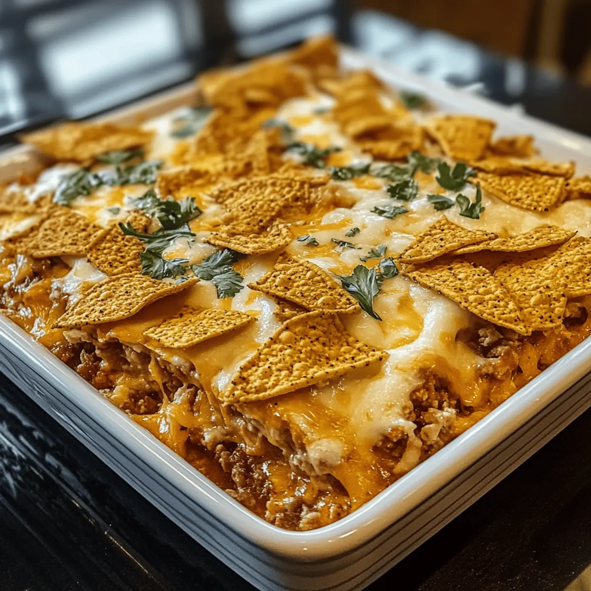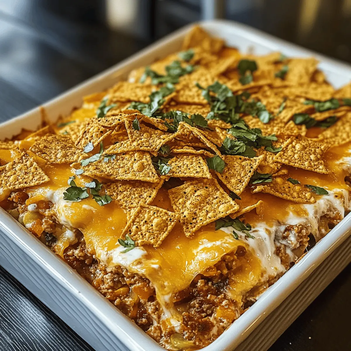 As I rummaged through my pantry one busy weeknight, I discovered a treasure trove of ingredients just waiting to come together. With a bag of Doritos on hand, inspiration struck: it was the perfect moment to whip up my crowd-favorite, Easy White Trash Casserole with Doritos. This quick fix dinner combines crunchy chips, savory ground beef, and gooey cheese — a dish that feels like a warm hug on a plate. Not only is it extremely simple to prepare in just 40 minutes, but it’s also highly adaptable to your personal taste. Looking for a vegetarian twist? Swap out the beef for some hearty mushrooms! So, are you ready to turn your pantry staples into a comforting meal that everyone will love? Let’s dive into this delicious recipe! What makes this casserole so special? Convenience: Ready in just 40 minutes, this casserole is the ultimate quick fix for busy weeknights. Flavor-packed: The irresistible combination of crunchy Doritos, beef, and gooey cheese delivers a hearty, comforting taste. Customizable: Easily adapt this recipe to suit your preferences—try using turkey or mushrooms for a lighter or vegetarian option! Crowd-pleaser: With its layered textures and bold flavors, it’s a dish that keeps everyone coming back for more. Easy Prep: Minimal prep work means you can spend more time enjoying your meal and less time in the kitchen. Pair it with a side salad or some cornbread for a complete, satisfying dinner experience! White Trash Casserole Ingredients For the Casserole Ground Beef – Provides essential protein and rich flavor; substitute with turkey for a leaner option or plant-based ground meat for a vegetarian twist. Doritos – Offers a distinct crunch and flavor; feel free to experiment with spicy varieties or other chips like Fritos for a fun twist. Cream of Mushroom Soup – Adds creaminess and binds the casserole together; consider using cream of chicken or a homemade béchamel if desired. Sour Cream – Contributes tanginess and enhances creaminess; Greek yogurt works well as a healthier substitute. Taco Seasoning – Infuses the dish with zesty flavors; try using homemade seasoning or adjust the spices to suit your taste. Diced Tomatoes with Green Chilies – Adds moisture and a kick of flavor; you can use plain diced tomatoes or fresh tomatoes if you prefer. Black Beans – Provides fiber and protein; pinto beans or kidney beans are great alternatives for added variety. Optional Garnishes Shredded Cheese – Adds creaminess and a cheesy finish; use your favorite type such as cheddar or Monterey Jack. Fresh Cilantro – Refreshing and colorful, it elevates the dish; substitute with green onions for a milder taste. Sliced Avocado – Bring in creaminess and a fresh touch; diced tomatoes can also add a bright flavor burst. This delicious White Trash Casserole with Doritos is a sure way to delight your family and friends at the dinner table! Step‑by‑Step Instructions for White Trash Casserole with Doritos Step 1: Preheat Oven and Prepare Baking Dish Begin by preheating your oven to 350°F (175°C). While it’s heating, lightly grease a 9×13 inch baking dish with oil or non-stick spray to prevent sticking. This ensures your White Trash Casserole with Doritos comes out easily and maintains its shape once baked. Step 2: Cook the Beef Mixture In a large skillet over medium-high heat, add the ground beef and break it apart with a spatula. Cook for about 5-7 minutes, stirring occasionally, until the beef is browned and no longer pink. Add diced onion and minced garlic, cooking until the onions are translucent and fragrant, roughly another 3 minutes. Step 3: Combine Ingredients in Skillet Once the beef is cooked, stir in the taco seasoning, black beans, corn, and diced tomatoes. Allow this mixture to simmer on low heat for about 2-3 minutes, letting the flavors meld together. You’ll know it’s ready when the mixture is heated through and bubbling slightly. Step 4: Mix Creamy Sauce In a large mixing bowl, combine the cream of mushroom soup and sour cream. Stir vigorously until the mixture is smooth and well blended. This creamy sauce will add a delightful richness to your White Trash Casserole with Doritos, ensuring every bite is comforting and flavorful. Step 5: Layer the Casserole In the prepared baking dish, layer half of the beef mixture evenly on the bottom. Next, spread half of the creamy sauce over the beef, followed by 1 cup of shredded cheese, and half a bag of lightly crushed Doritos. This layers the flavors beautifully, creating a hearty base for your casserole. Step 6: Repeat Layers Now, repeat the layering process with the remaining ingredients: add the rest of the beef mixture, the second half of the creamy sauce, an additional cup of shredded cheese, and top with the remaining Doritos. Ensure everything is evenly distributed for perfect baking results. Step 7: Bake the Casserole Cover the baking dish with foil and place it in the preheated oven. Bake for 15 minutes to allow the casserole to heat through. After that, remove the foil and bake for an additional 10 minutes, checking for a golden brown topping; broil for a minute if you desire extra crispiness. Step 8: Cool and Serve Once baked, take the casserole out of the oven and let it rest for about 5-10 minutes to set. This cooling time allows the layers to stabilize, making it easier to serve. Garnish with fresh toppings like cilantro or avocado for a burst of color and flavor before digging in. How to Store and Freeze White Trash Casserole Fridge: Store leftovers in an airtight container for up to 3-4 days. This helps maintain freshness and texture, making it easy to reheat for quick meals anytime. Freezer: For longer storage, freeze the casserole for up to 3 months. Make sure it’s tightly wrapped to prevent freezer burn. Reheating from frozen is possible—just add extra moisture if needed. Reheating: When ready to enjoy, reheat in the oven at 350°F (175°C) for about 20-30 minutes until heated evenl